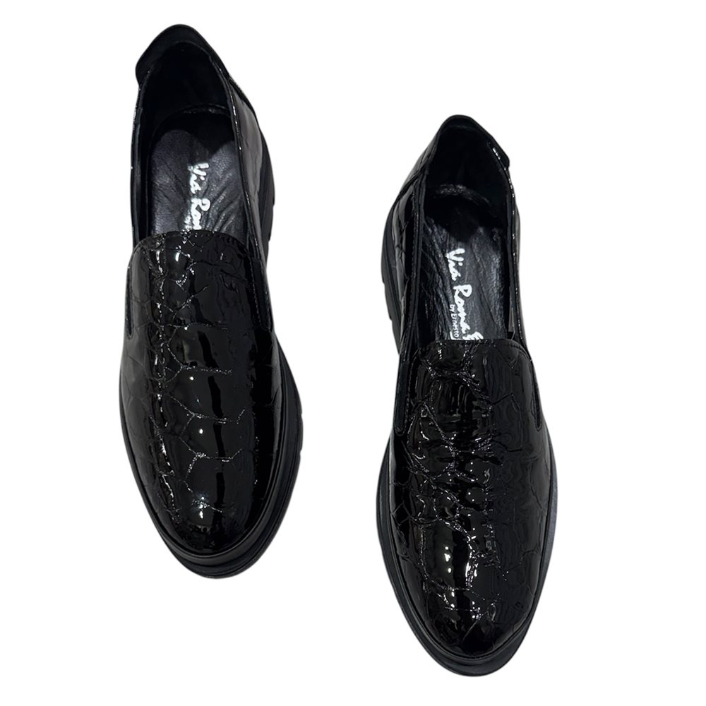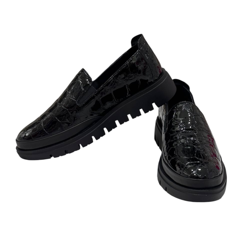 Divatos slip on. Anyaga: eredeti bőr Származási hely: Lengyelország Szín: fekete-kroko-lakk Talp vastagság: 2 cm Sarok magasság: 3,5 cm Méret: 36- 23 cm 37- 23,5 cm 38- 24,5 cm 39- 25 cm 40-25,5 cm