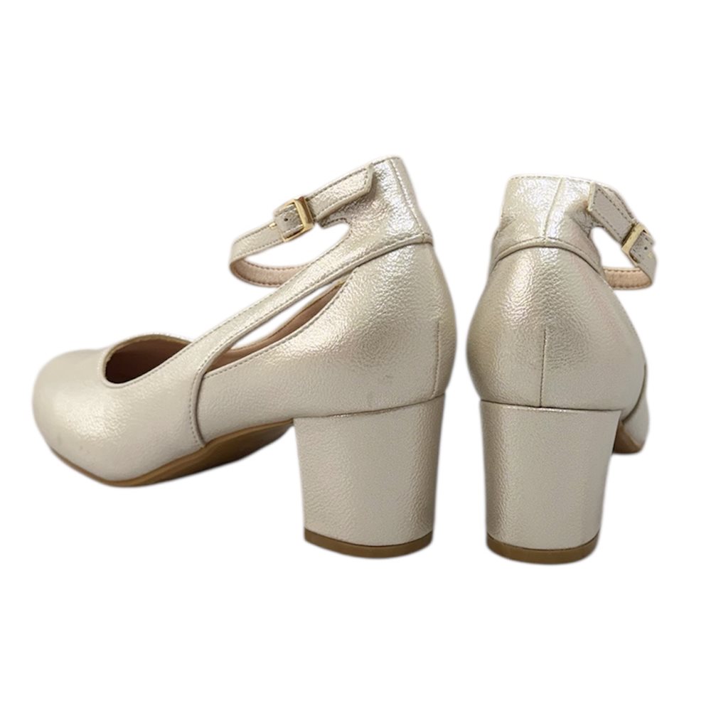 Elegáns magassarkú bokapánttal. Anyaga: bőr Származási hely: EU Szín: ekrü-arany Sarok magasság: 6 cm Méret: 36- 23 cm 37- 24 cm 38- 24,5 cm 39- 25,5 cm 40- 26 cm