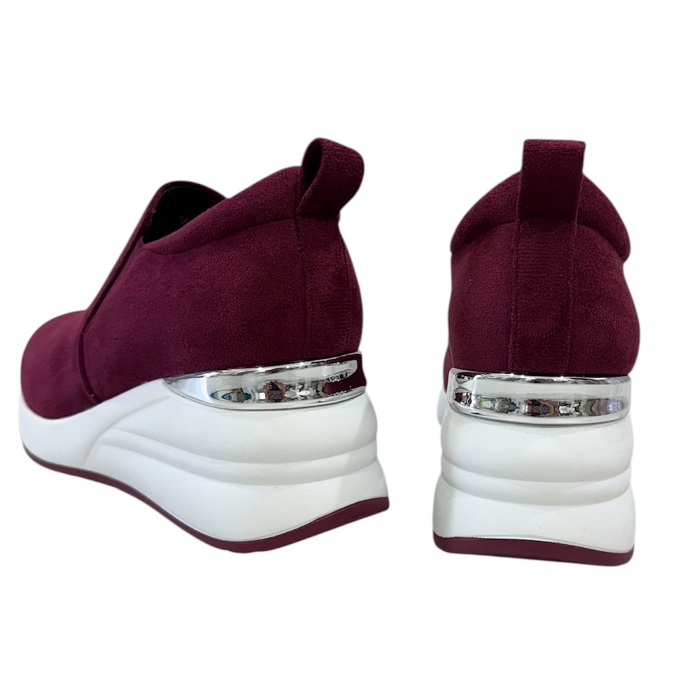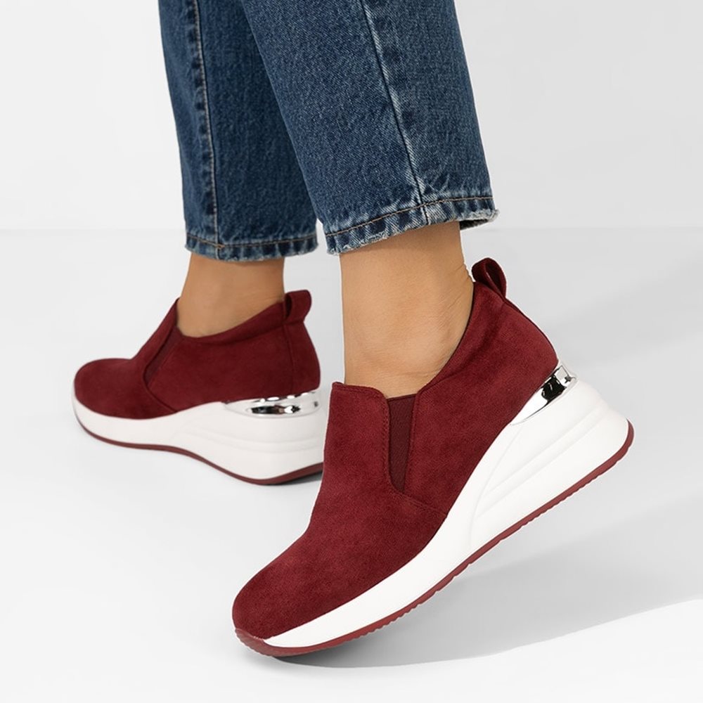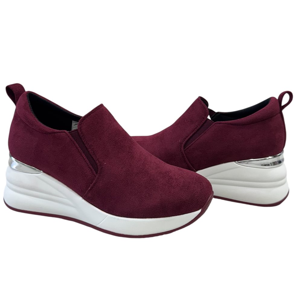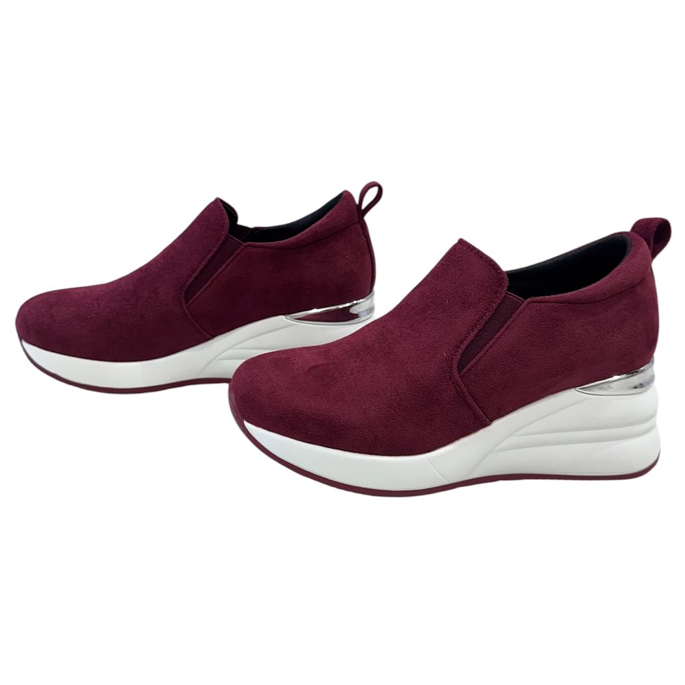 Divatos emelt talpú slip on. Anyaga: műbő- nubuk Származási hely: EU Szín: bordó,bézs. Talp magasság: 2 cm Sarok magasság: 6,5 cm Méret: 36- 23 cm 37- 23.5 cm 38- 24 cm 39- 24.5 cm 40- 25 cm 41-25.5 cm
