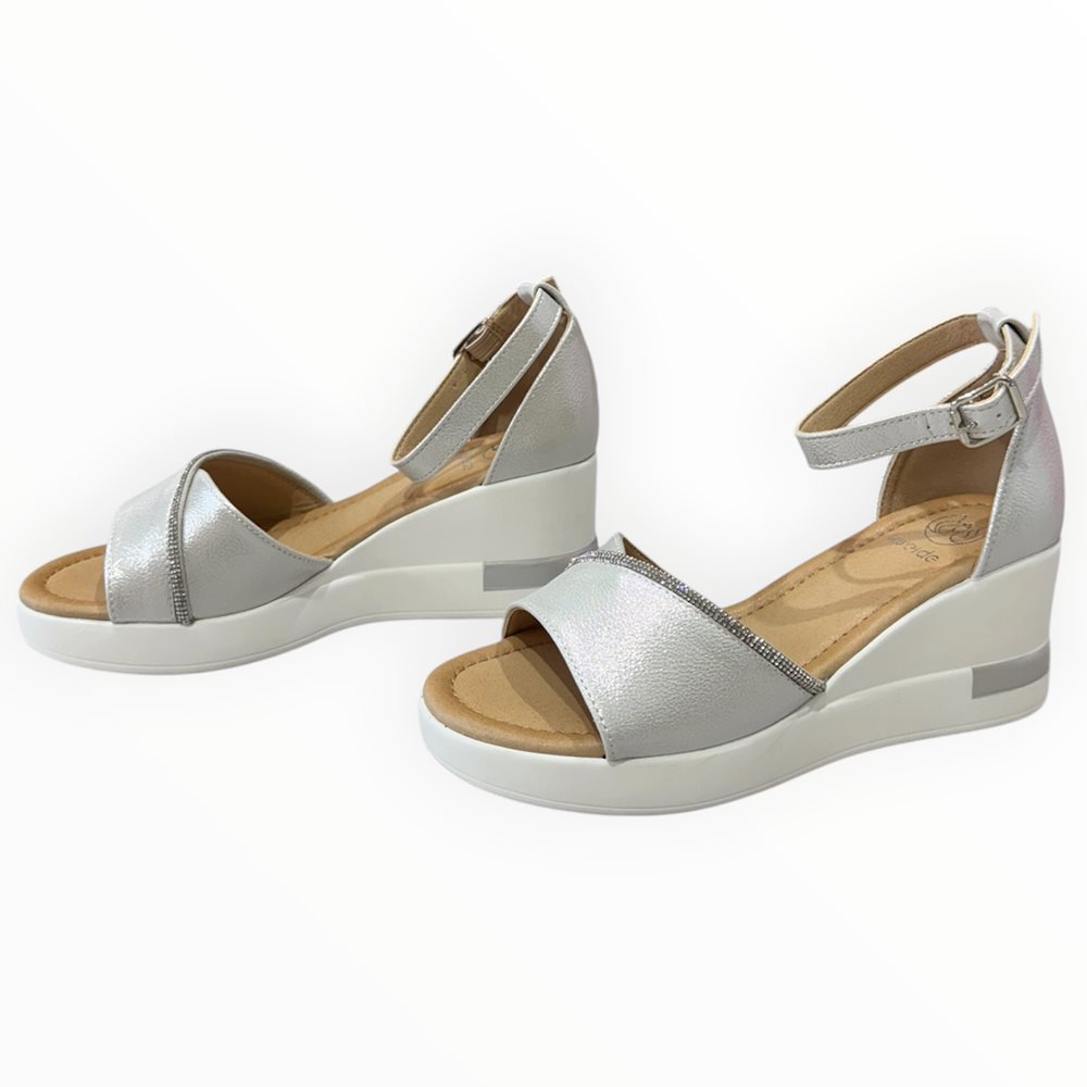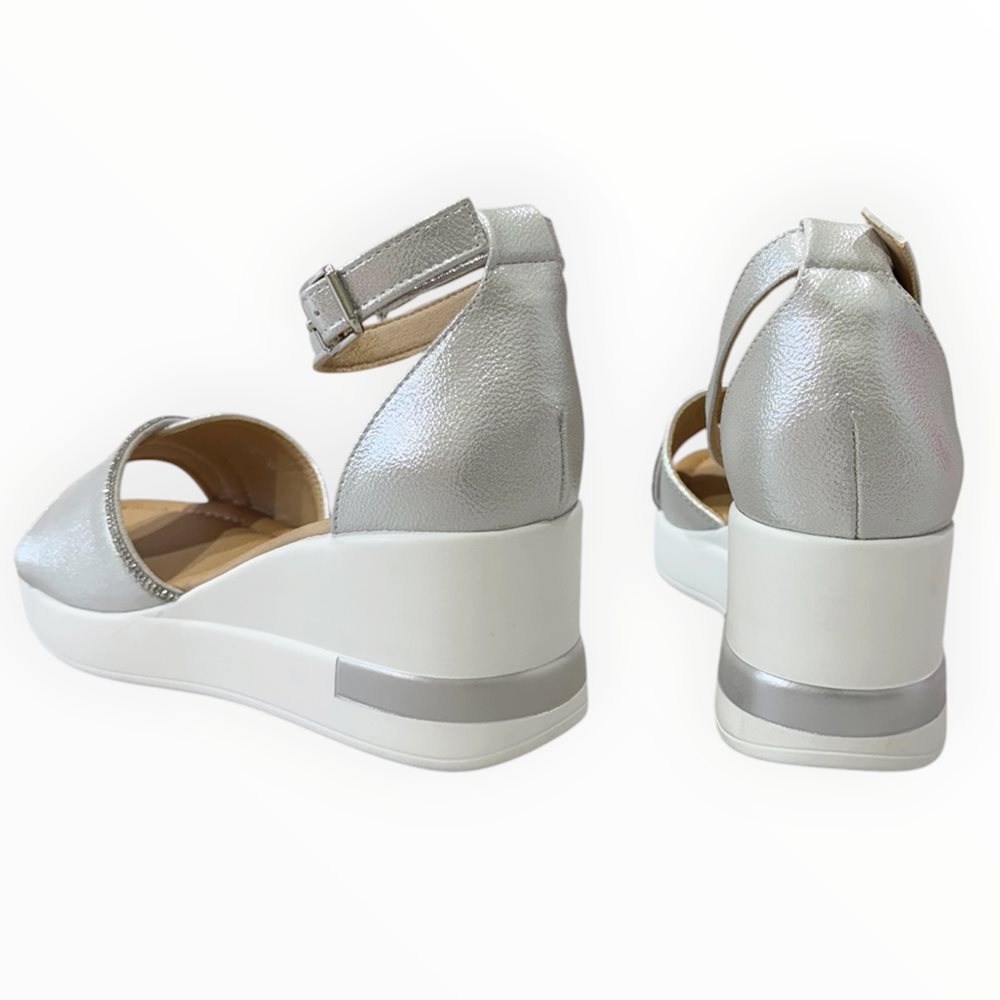 Könnyű telitalpú szandál . Származási hely: EU Anyaga: szintetikus Szín: ezüst Talprész: 2,5 cm Sarok rész : 6 cm Méretek: 36- 23 cm 37- 23,5 cm 38- 24 cm 39- 24,5 cm 40- 25 cm 41- 26 cm