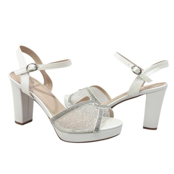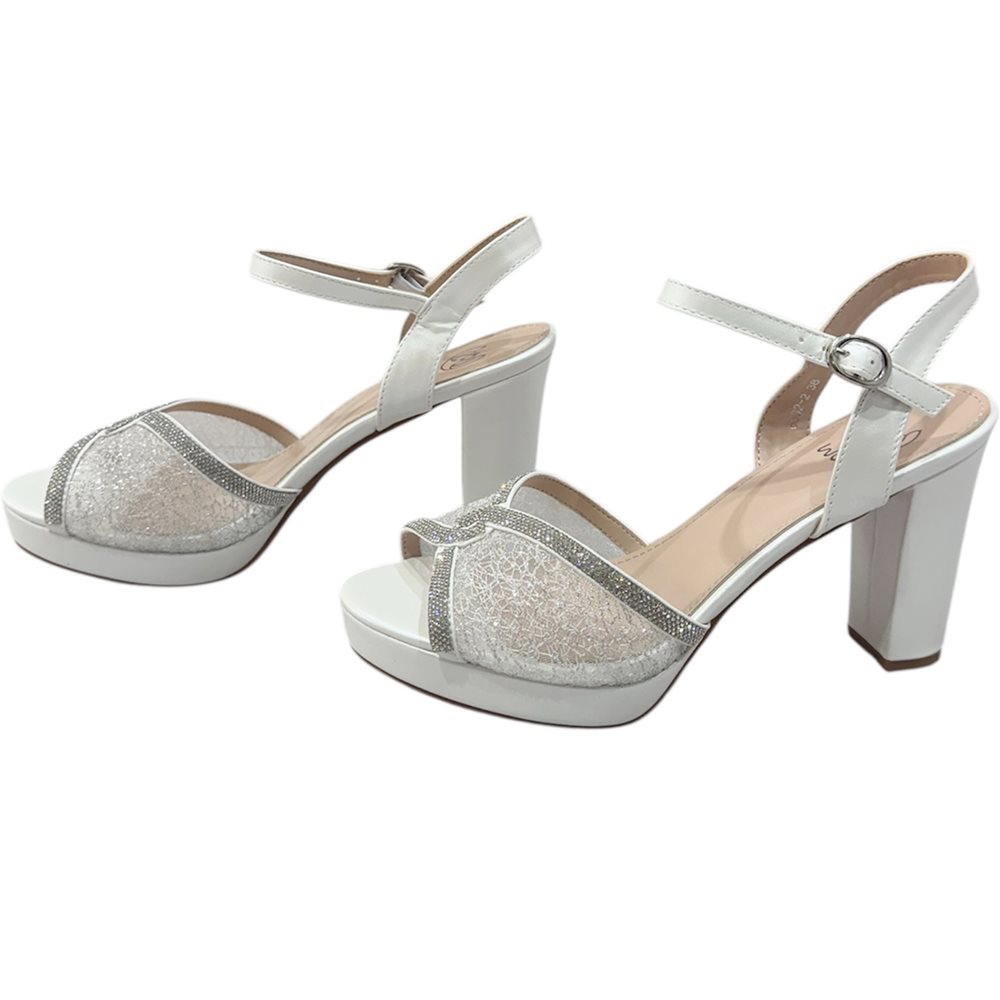 Elegáns magassarkú szandál,kövekkel díszítve. Anyaga: szintetikus Származási hely: EU Szín: fehér Sarok magasság: 9,5 cm Platform: 2 cm Méret: 36- 22,5 cm 37- 23 cm 38- 24 cm 39- 25 cm 40- 25,5 cm
