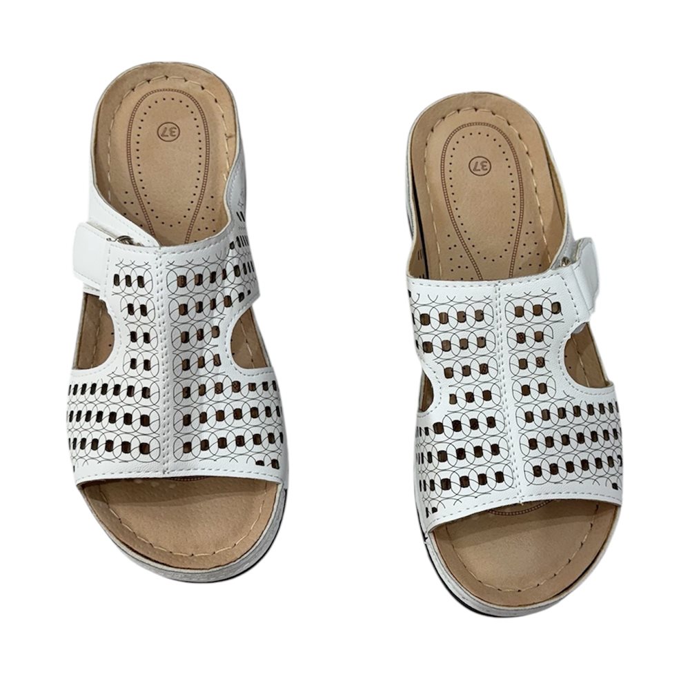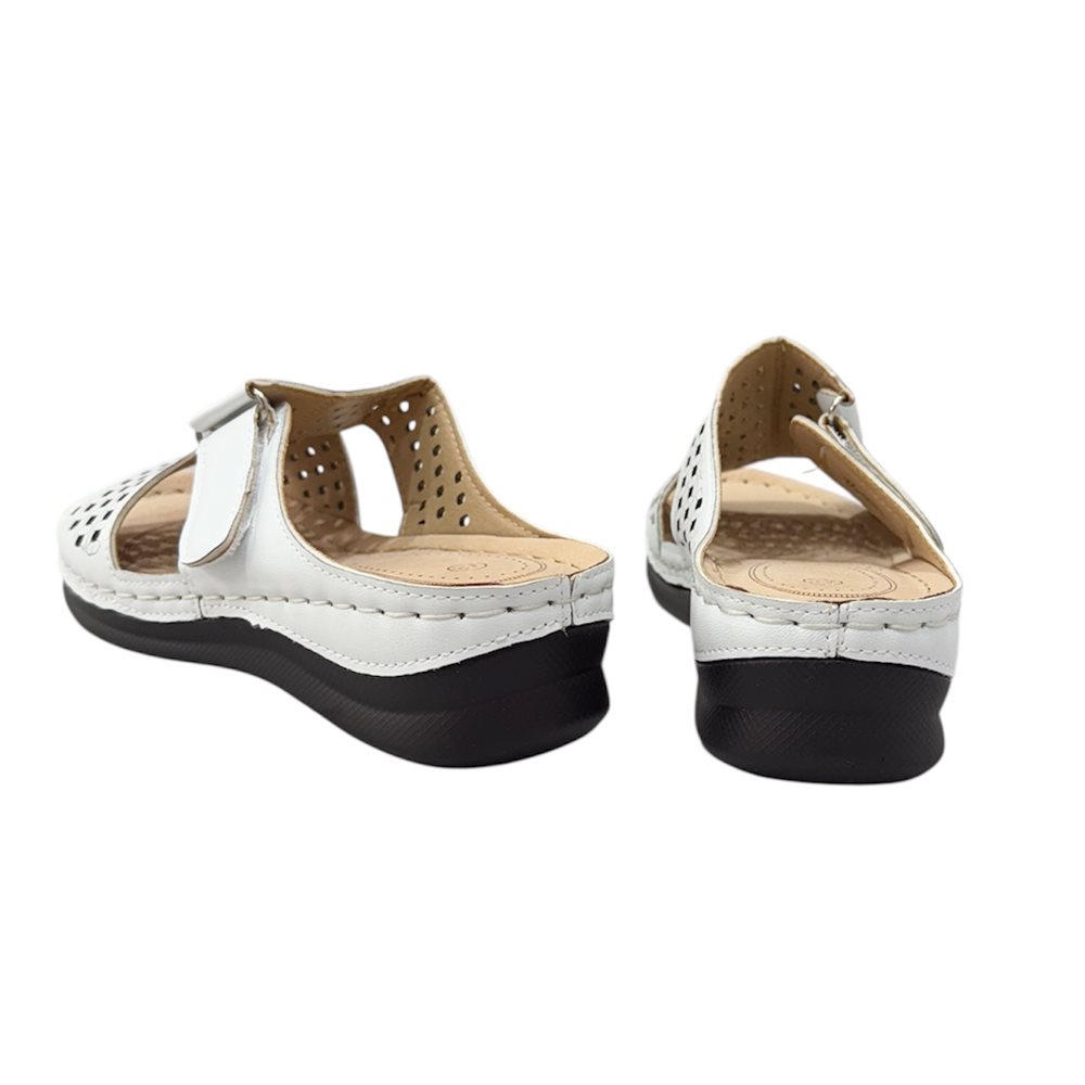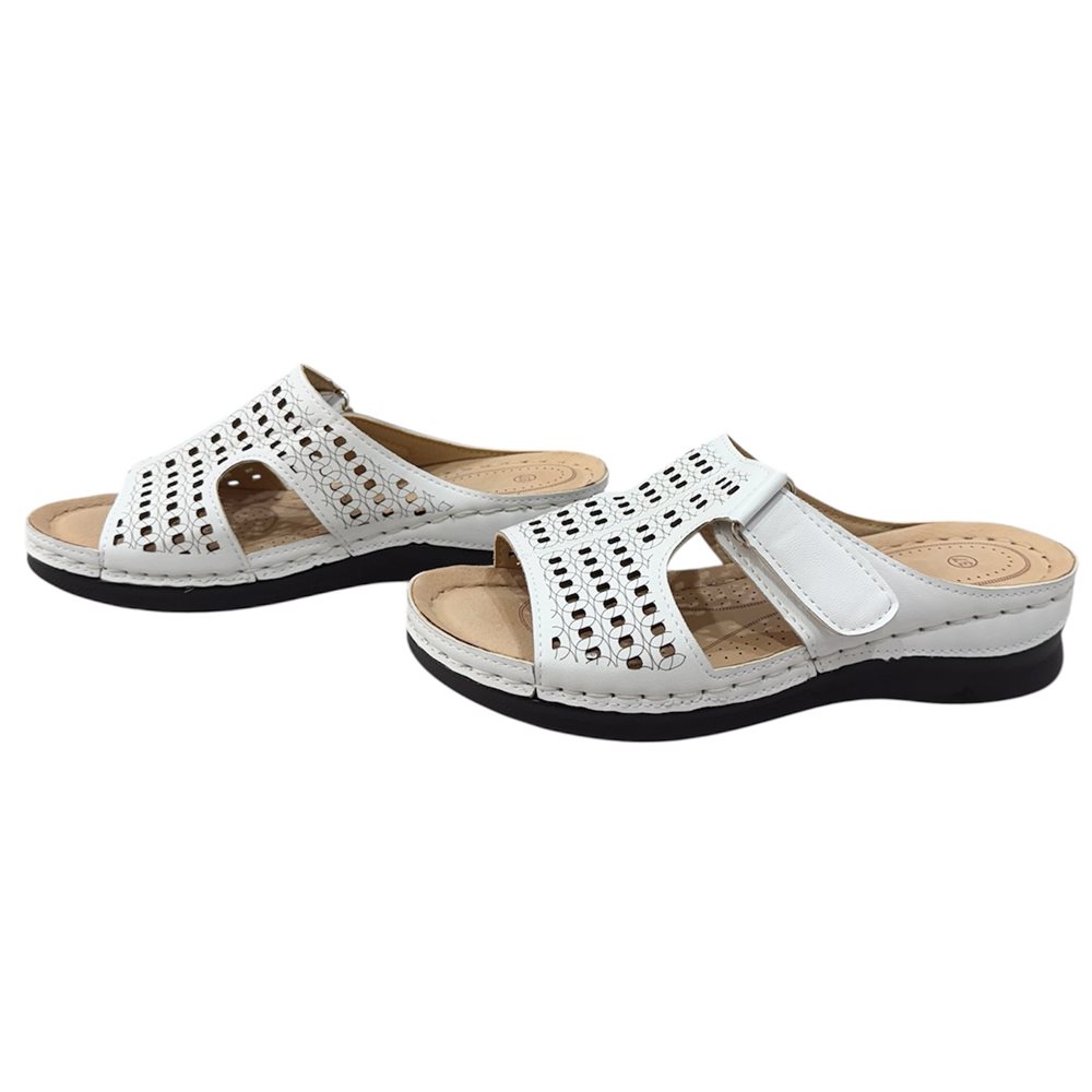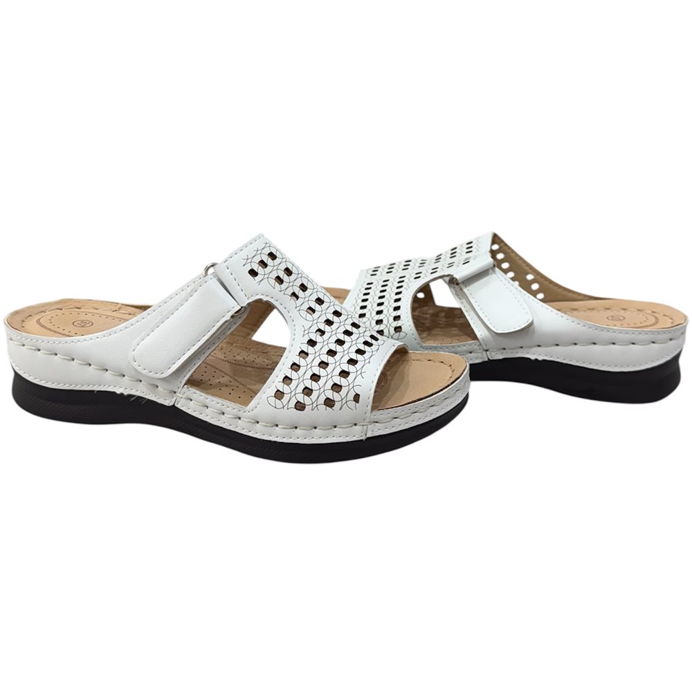 Könnyű,kényelmes papucs,puha belső talppal és tépőzárral.  Származási hely: EU Anyaga: szintetikus Szín: fehér Talprész: 2  cm Sarok rész : 5 cm Méretek:  36- 23 cm 37- 23,5 cm 38- 24 cm 39- 24,5 cm 40- 25 cm 41- 26 cm