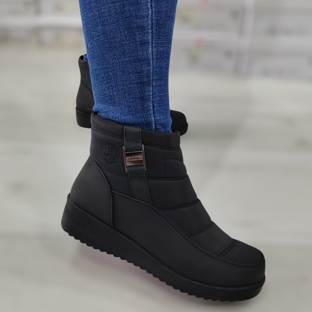 Divatos bokacsizma.Bélés: szőrmés Anyaga: műbőr Származási hely: EU Szín: fekete Sarok: 4 cm Talpvastagság: 1,5 cm Szárhossz saroktól mérve: 10,5 cm Méret: 36- 23 cm 37- 23,5 cm 38- 24 cm 39 24,5 cm 40- 25 cm 41- 25,5 cm