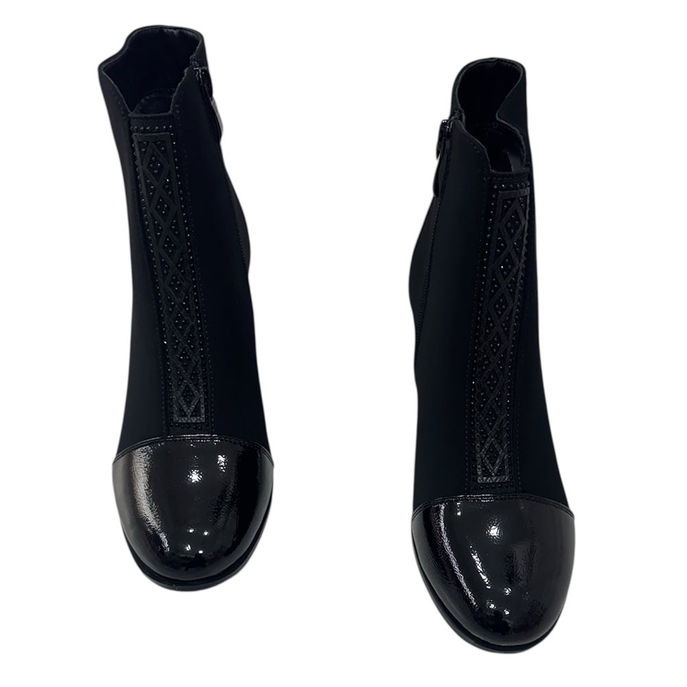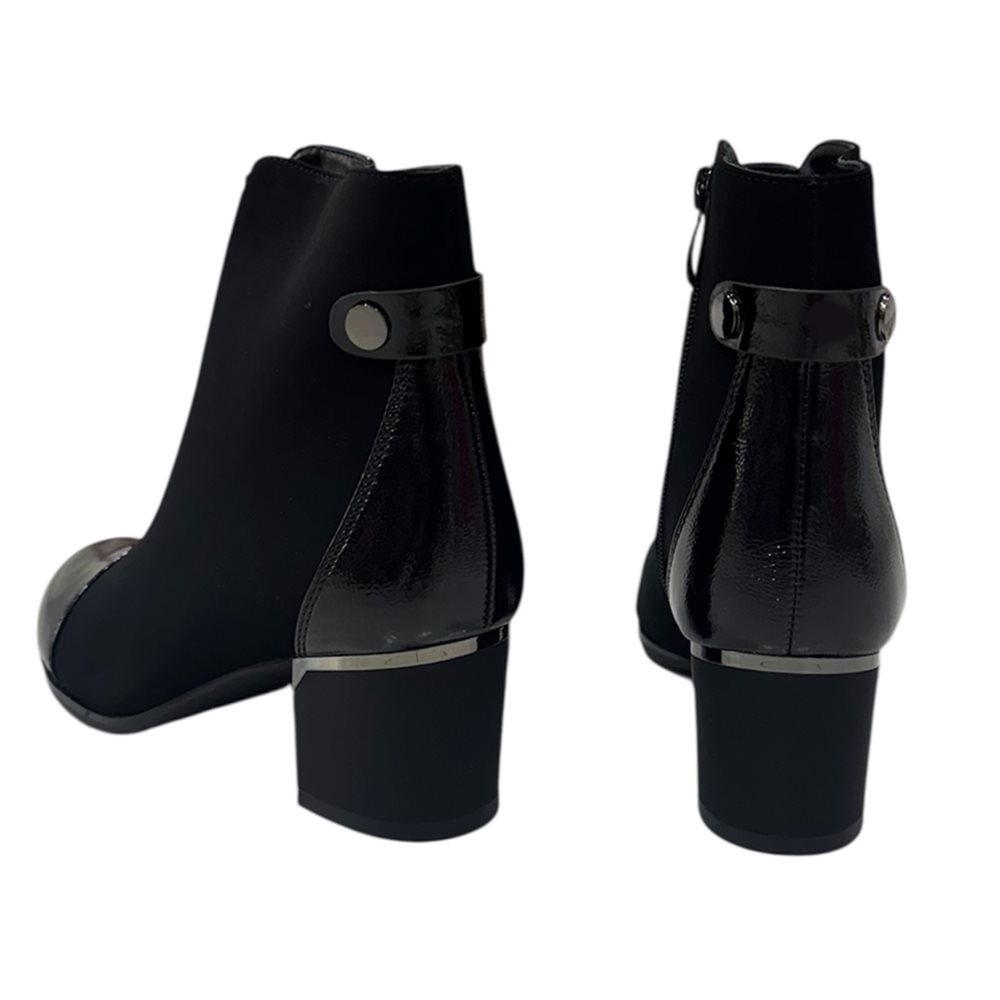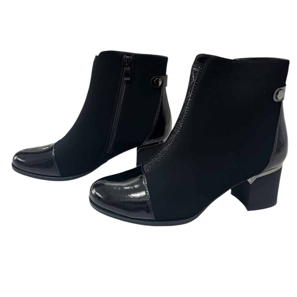 Divatos bokacsizma,oldalán cipzárral. Bélés: szőrmés Anyaga: műbőr Származási hely: EU Szín: fekete Sarok: 5,5 cm Talpvastagság: 0,5 cm Szárhossz saroktól mérve: 12 cm Méret: 36- 23 cm 37- 23,5 cm 38- 24 cm 39- 24,5 cm 40- 25 cm 41- 25,5 cm