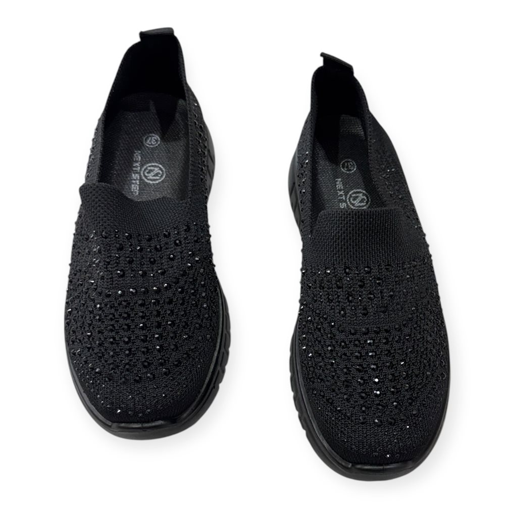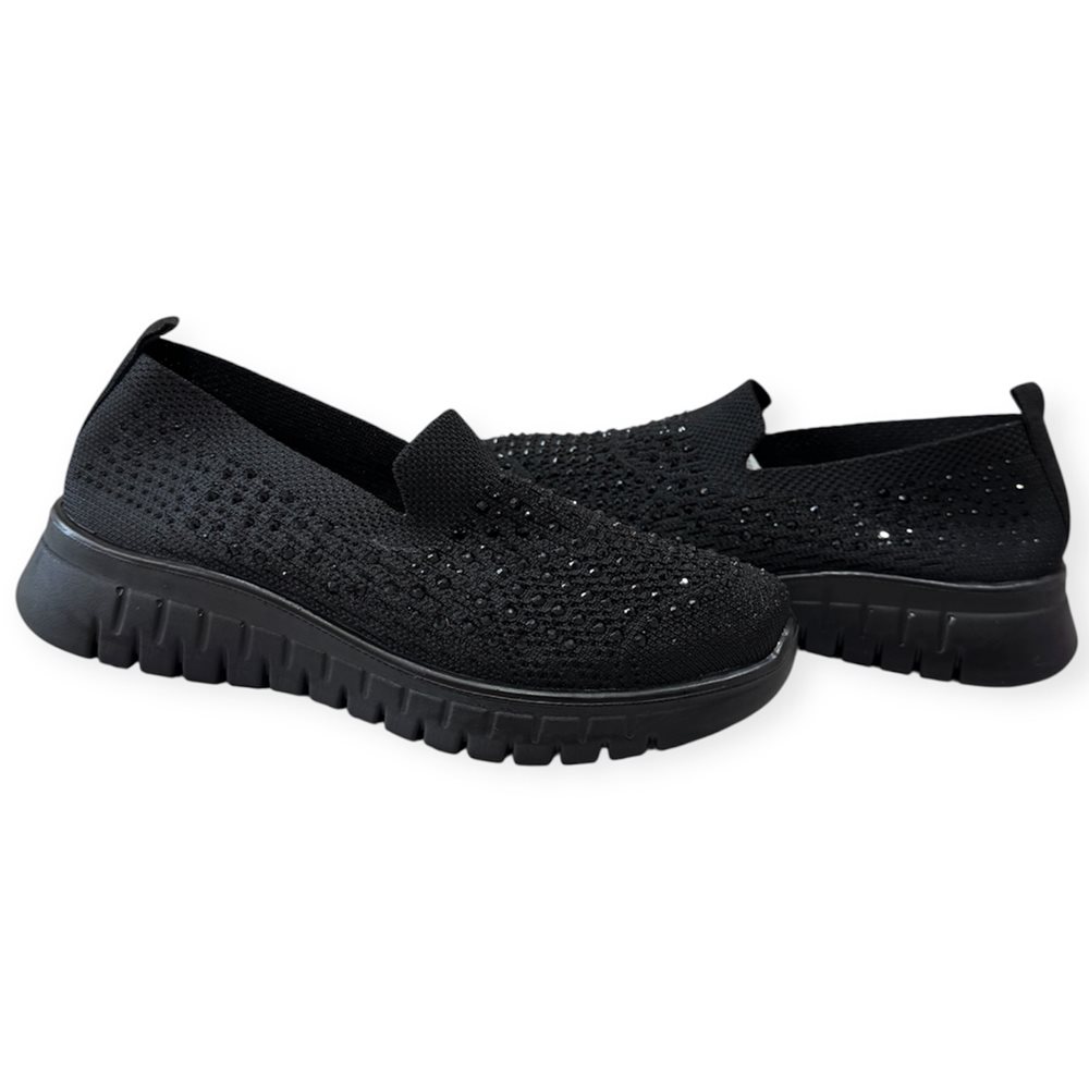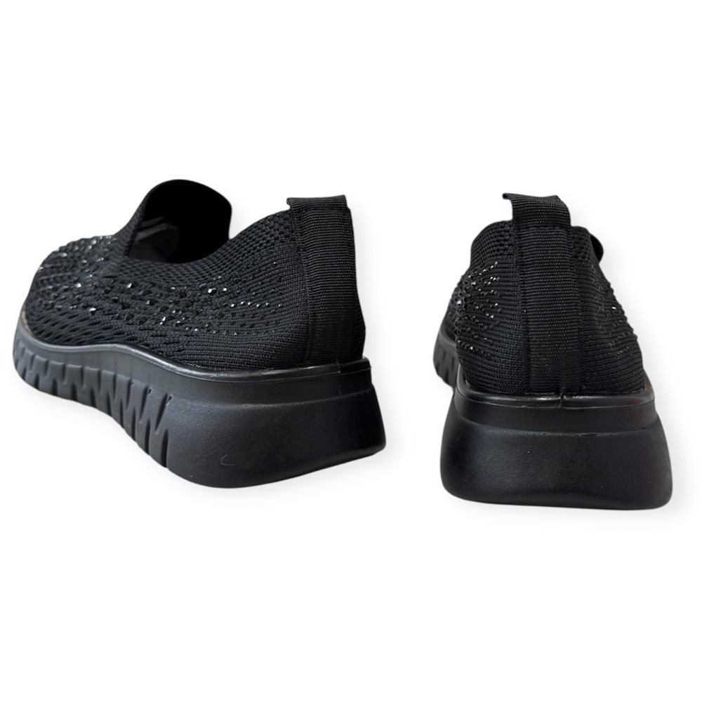 Divatos slip on,kövekkel díszítve. (zokni cipő) Anyaga: textil Származási hely: EU Szín: fekete Talp magasság: 2 cm Sarok magasság: 3,5 cm Méret: 36- 23 cm 37- 23,5 cm 38- 24 cm 39- 25 cm 40- 25,5 cm 41- 26 cm