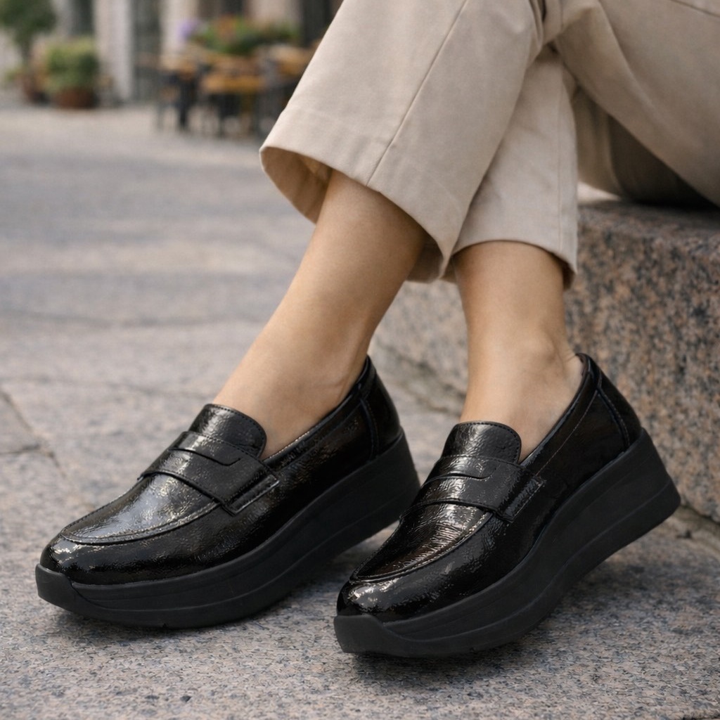 Divatos mokaszin. Anyaga: szintetikus Származási hely: EU Szín: fekete. Talp magasság: 2 cm Sarok magasság: 3,5 cm Méret: 36- 24 cm 37- 24.5 cm 38- 25 cm 39- 25.5 cm 40- 26 cm 41-26.5 cm