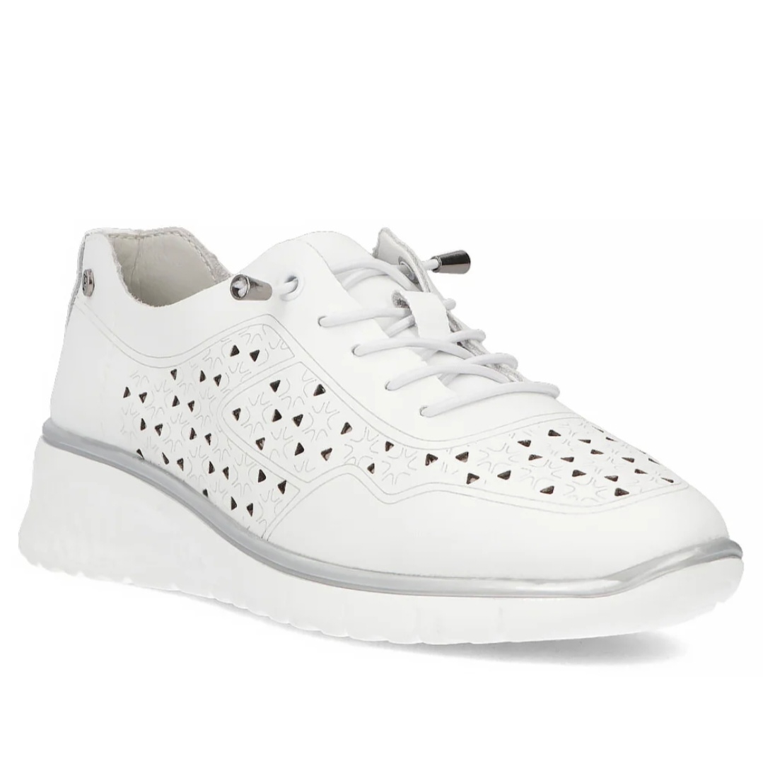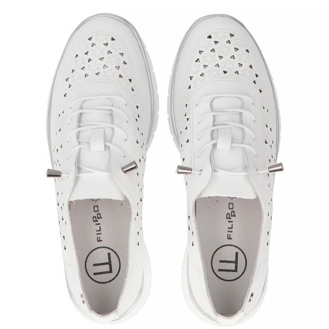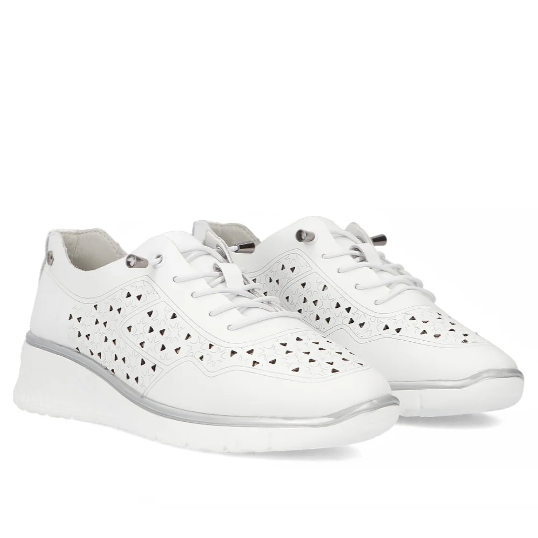 Divatos bőr lyukacsos sneaker/sportcipő a mindennapokra,puha,kényelmi cipő,gumis fűzővel. Anyaga: eredeti bőr Származási hely: EU Szín: fehér Talp vastagság: 2 cm Sarok magasság: 4 cm Méret: 36- 23 cm 37- 24 cm 38- 24,5 cm 39- 25,5 cm 40- 26 41 - 26,5 cm