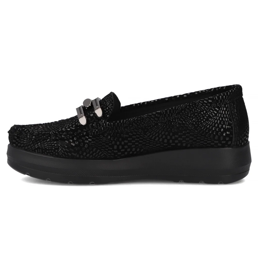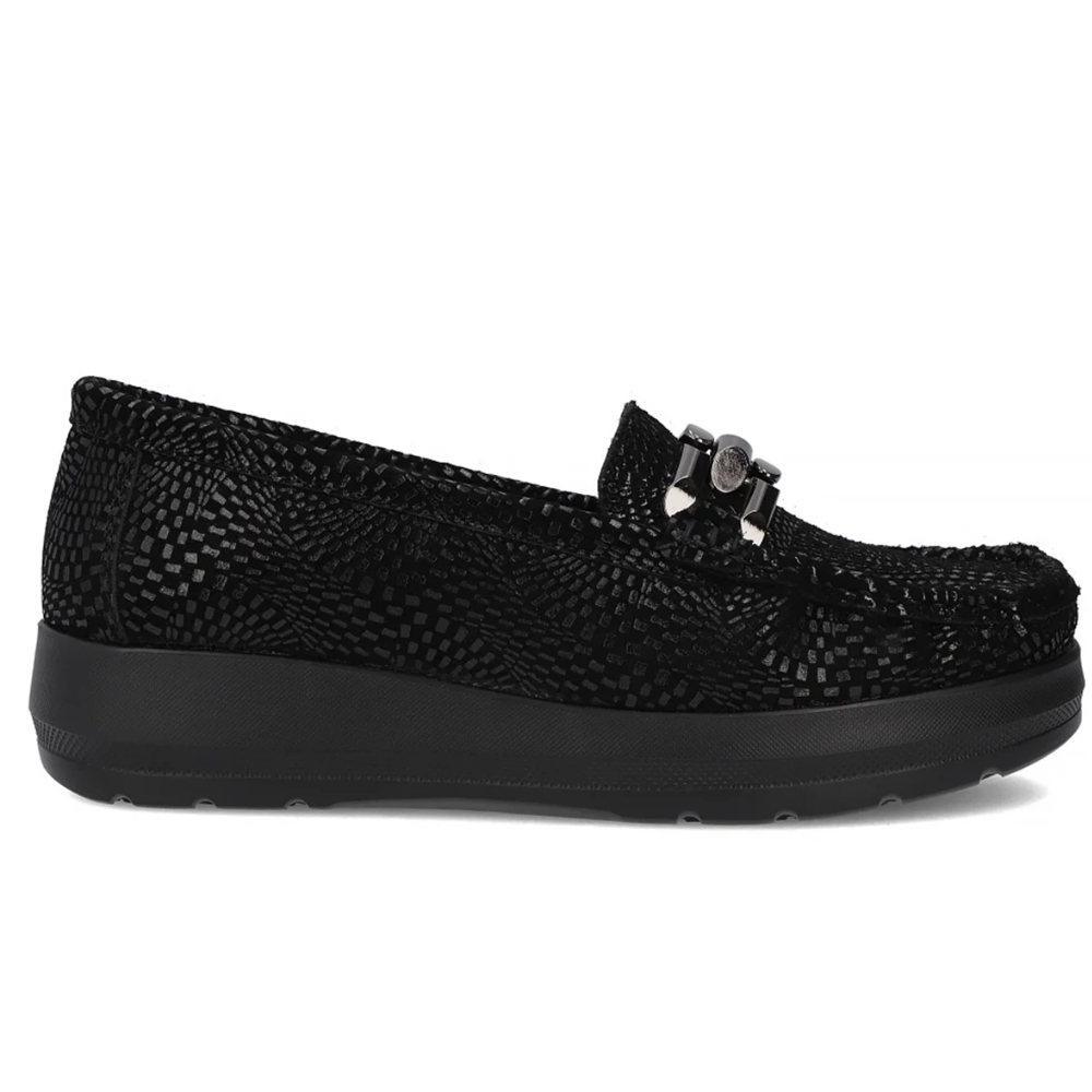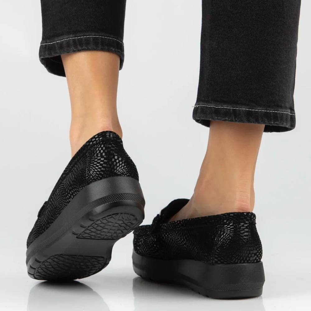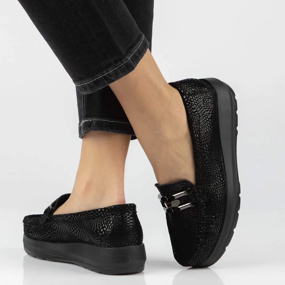 Divatos bőr mokaszin. Anyaga: eredeti bőr Származási hely: EU Szín: fekete Talp vastagság: 2,5 cm Sarok magasság: 4 cm Méret: 36- 23 cm 37- 24 cm 38- 24,5 cm 39- 25,5 cm 40- 26 cm 41- 26,5 cm