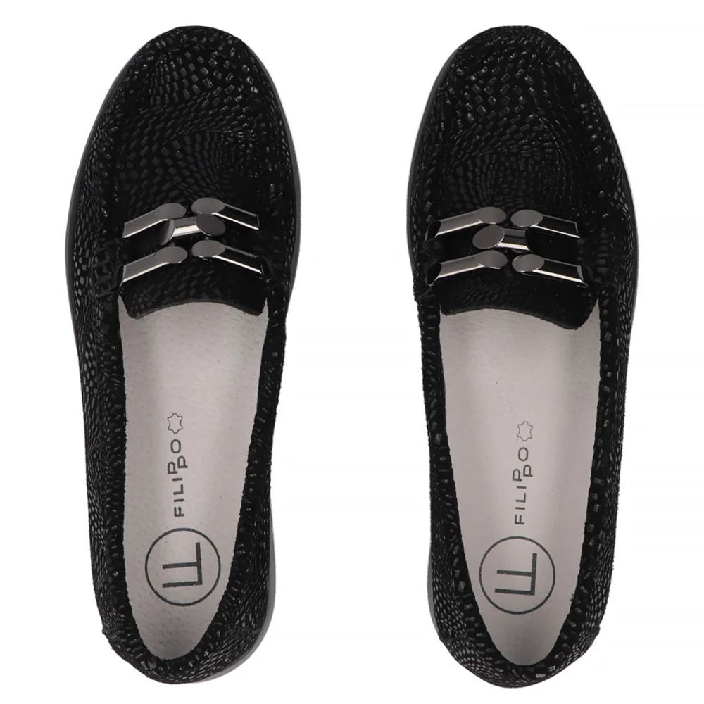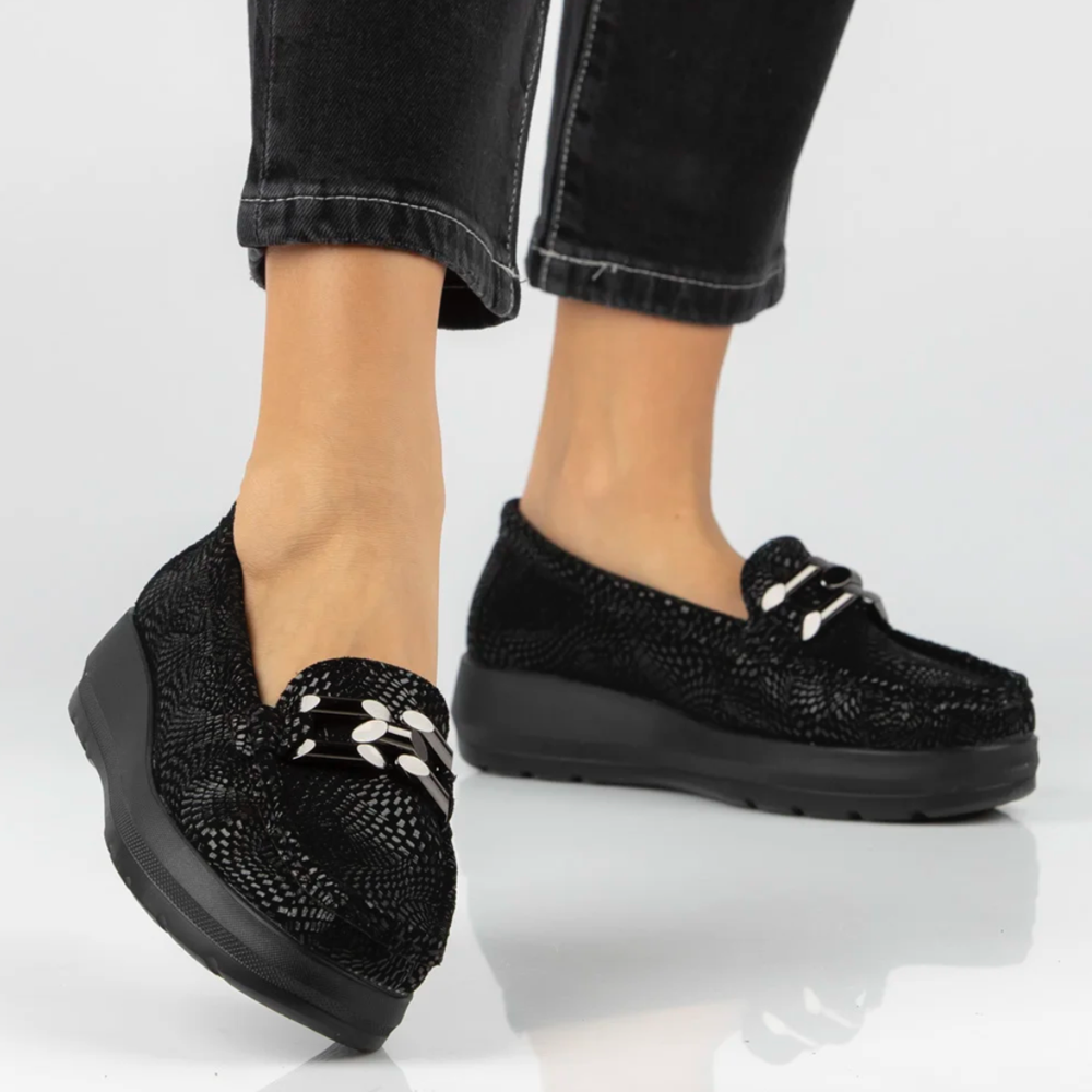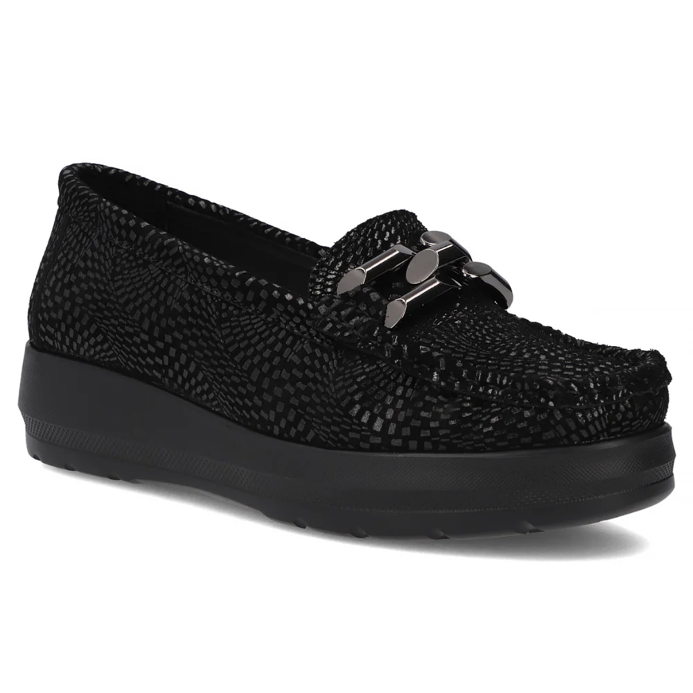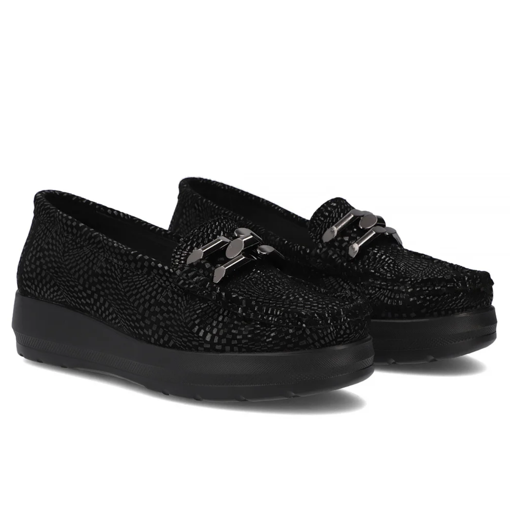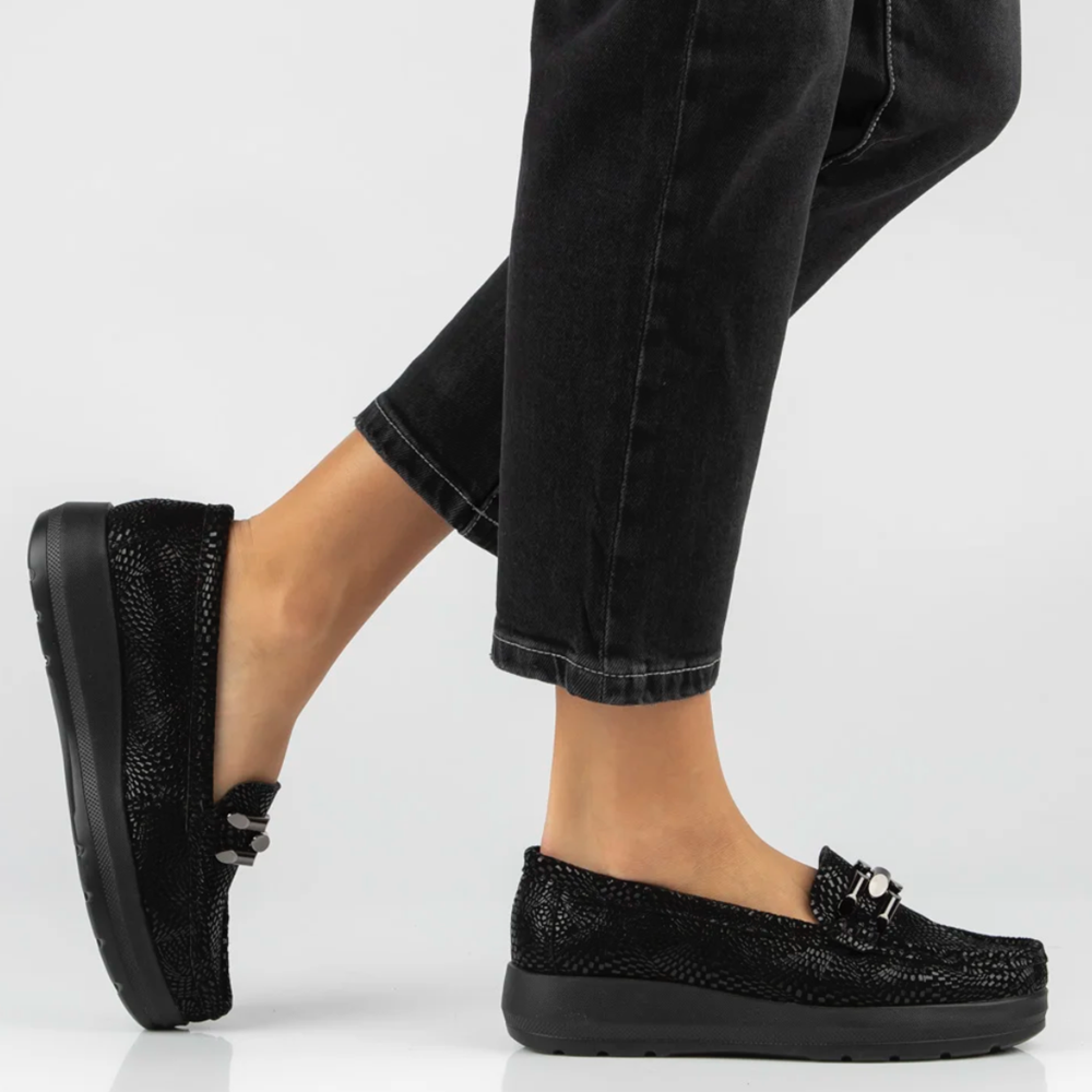 Divatos bőr mokaszin. Anyaga: eredeti bőr Származási hely: EU Szín: fekete Talp vastagság: 2,5 cm Sarok magasság: 4 cm Méret: 36- 23 cm 37- 24 cm 38- 24,5 cm 39- 25,5 cm 40- 26 cm 41- 26,5 cm