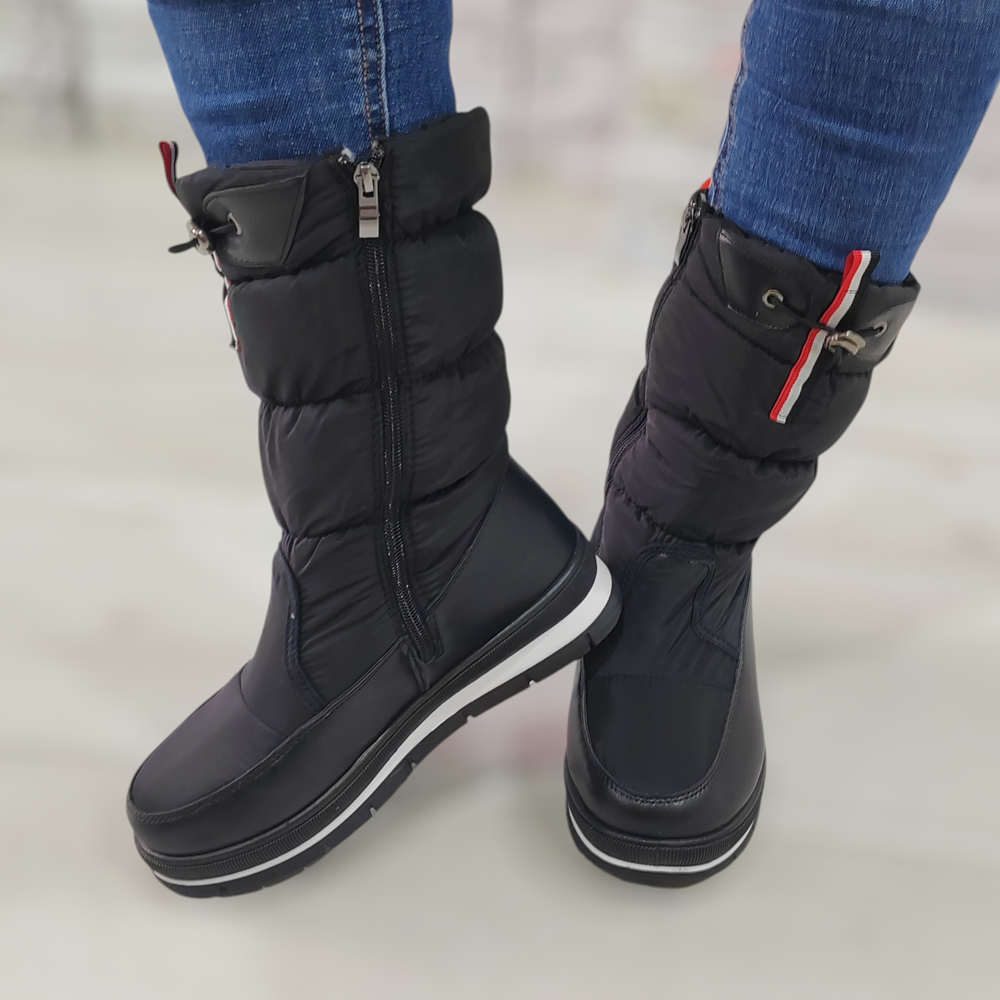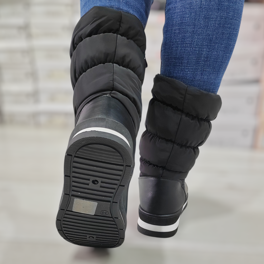 Divatos hótaposó,vastagon bélelt. Oldalt cipzáros, Bélés: szőrmés Anyaga: műbőr  Származási hely: EU Szín: fekete Sarok: 4,5 cm Talp vastagság: 2,5 cm Szárhossz saroktól mérve: 25 cm Méret: 36- 22,5 cm 37- 23 cm 38- 24 cm 39- 25 cm 40- 25,5 cm