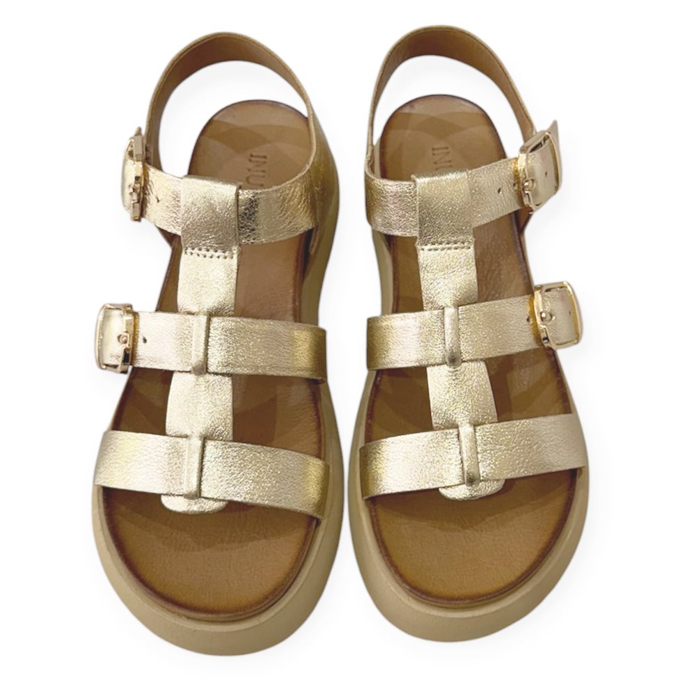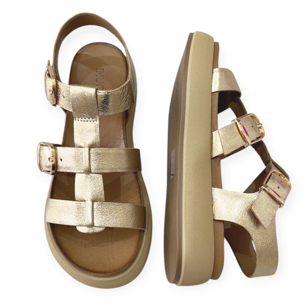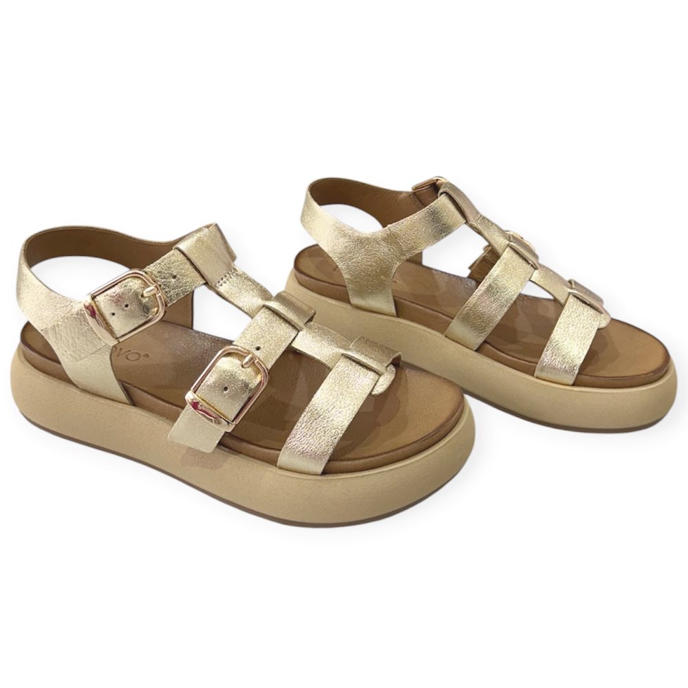 Divatos bőr szandál. Származási hely: EU Anyaga: bőr Szín: arany Talp vastagság: 3 cm Sarok magasság: 4 cm Méretek: 36- 23 cm 37- 23,5 cm 38- 24 cm 39- 24,5 cm 40- 25,5 cm 41- 26,5 cm