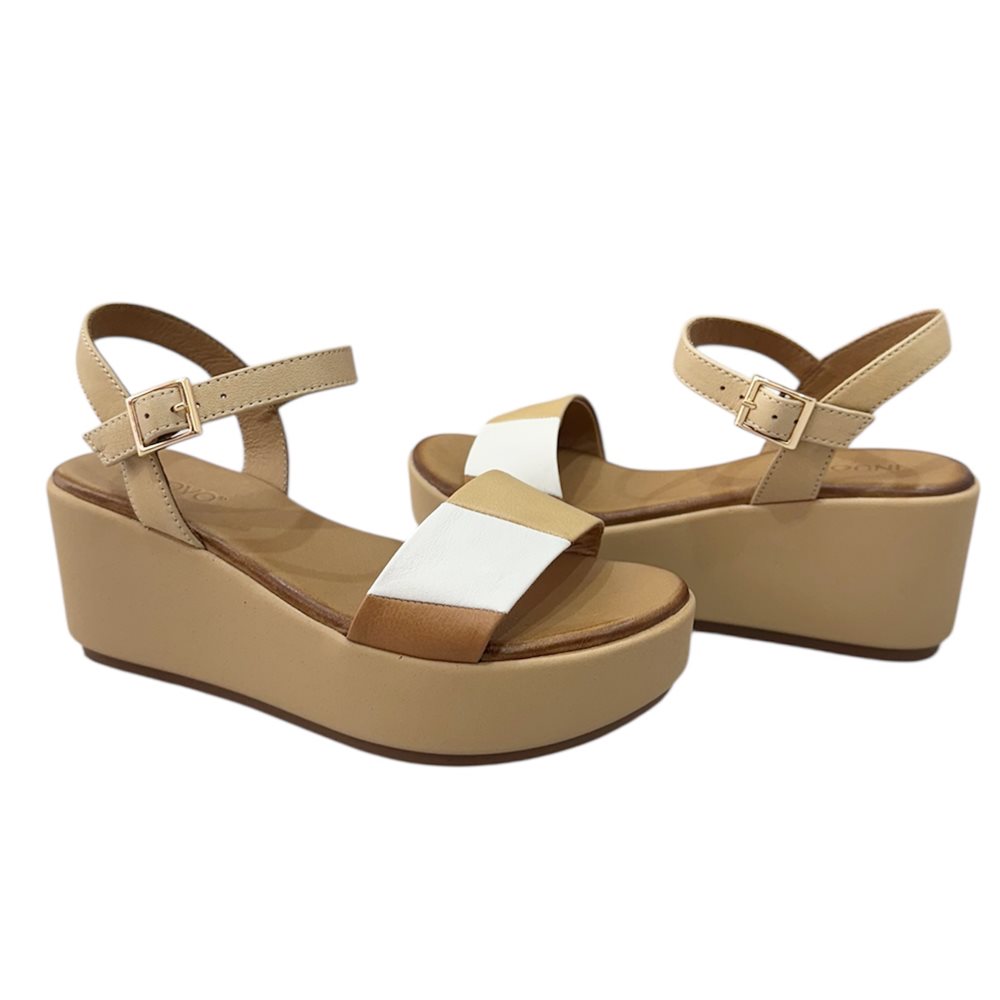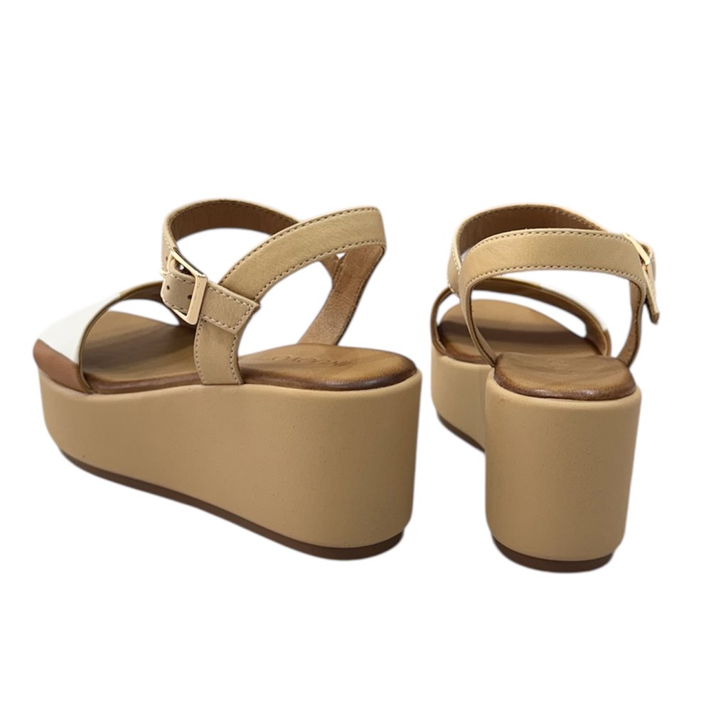 Divatos bőr emelt talpú szandál. Származási hely: EU Anyaga: bőr Szín: bézs-barna-krém Talp vastagság: 4 cm Sarok magasság: 7 cm Méretek: 36- 23 cm 37- 23,5 cm 38- 24 cm 39- 24,5 cm 40- 25,5 cm 41- 26,5