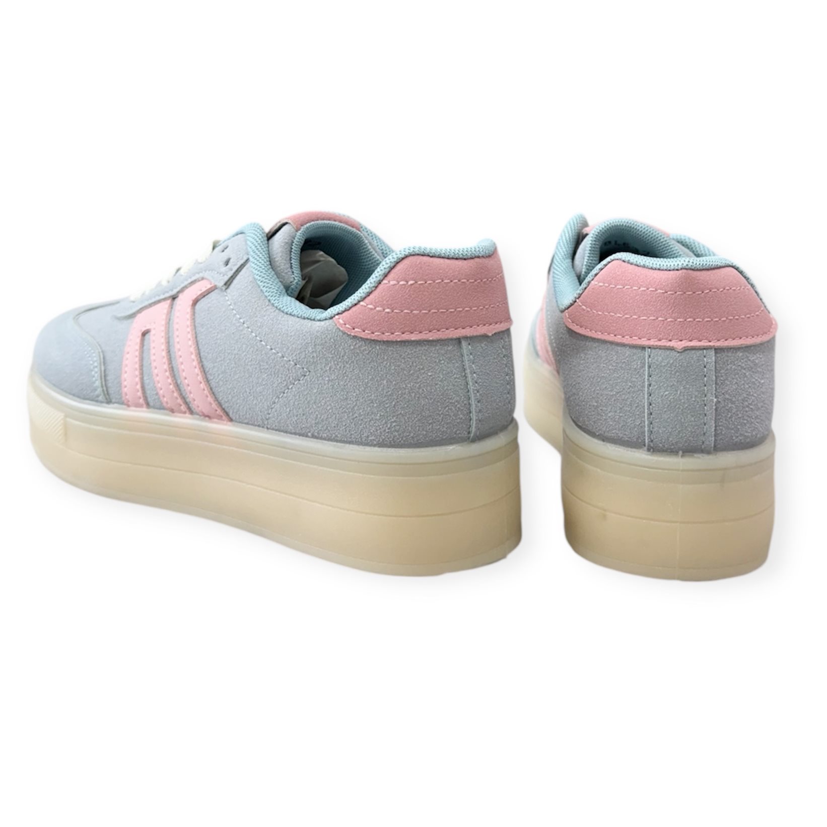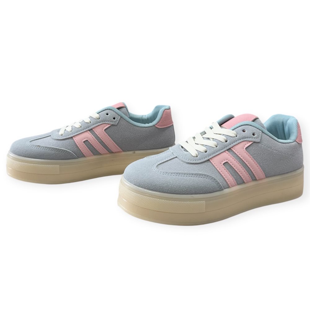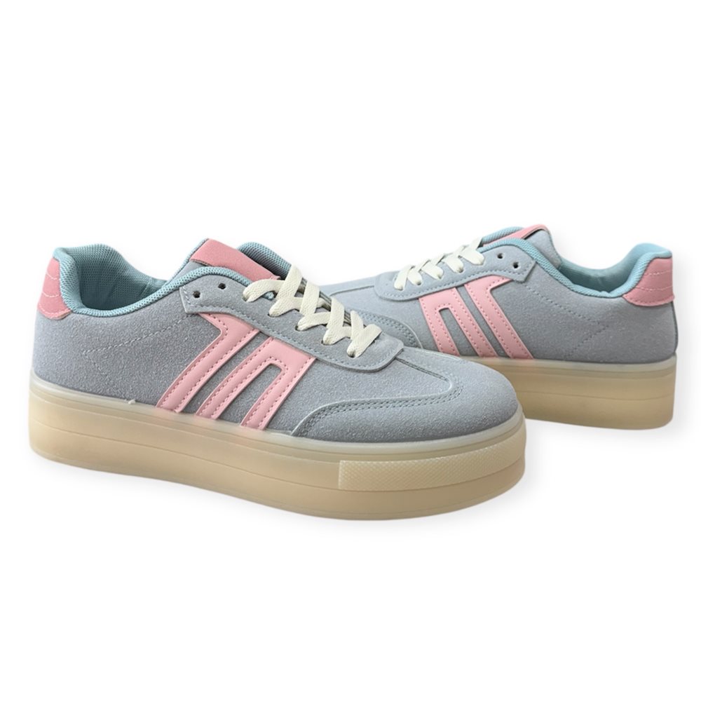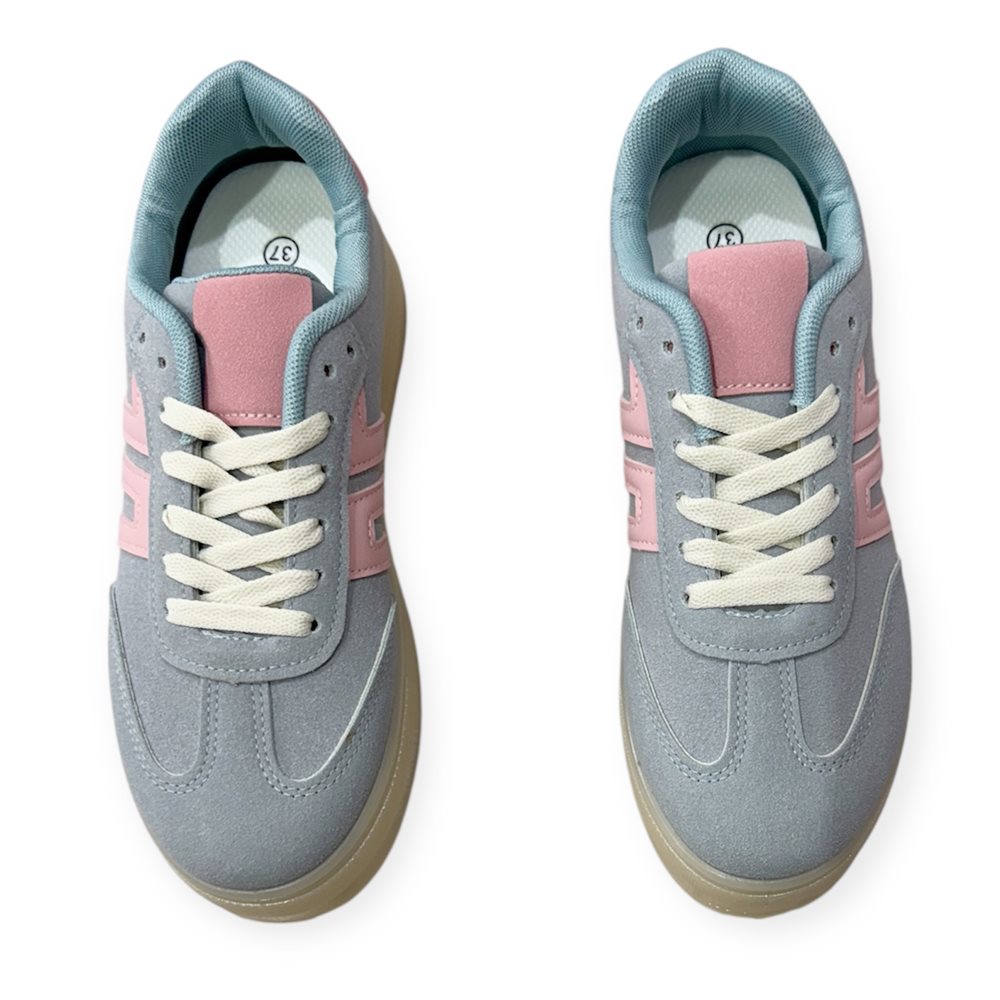 Vagány divatos sneaker/sportcipő. Anyaga: szintetikus Származási hely: EU Szín: kék-púderrózsaszín. Talp magasság: 3,5 cm Sarok magasság: 4 cm Méret: 36- 23 cm 37- 23.5 cm 38- 24 cm 39- 24.5 cm 40- 25 cm 41-25.5 cm
