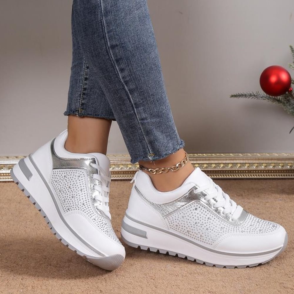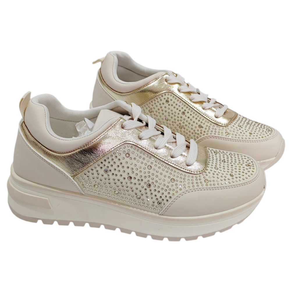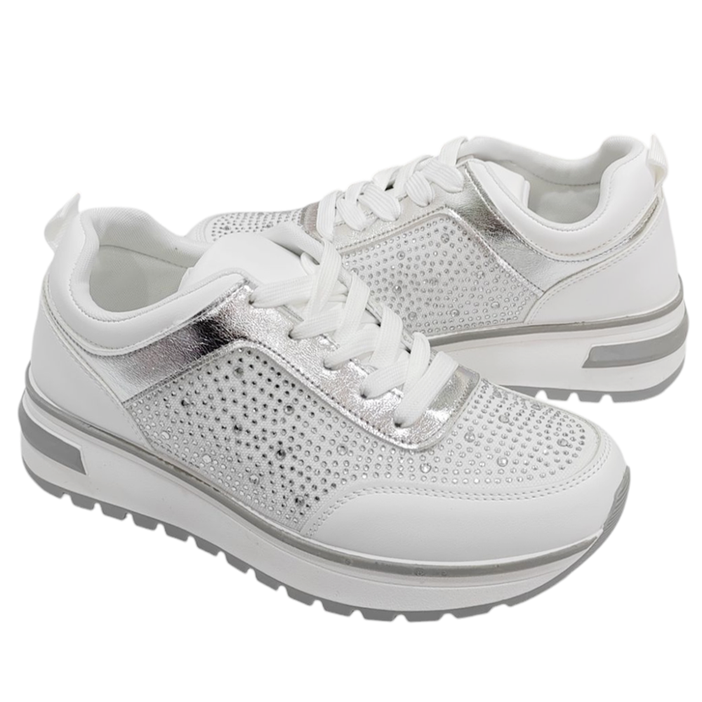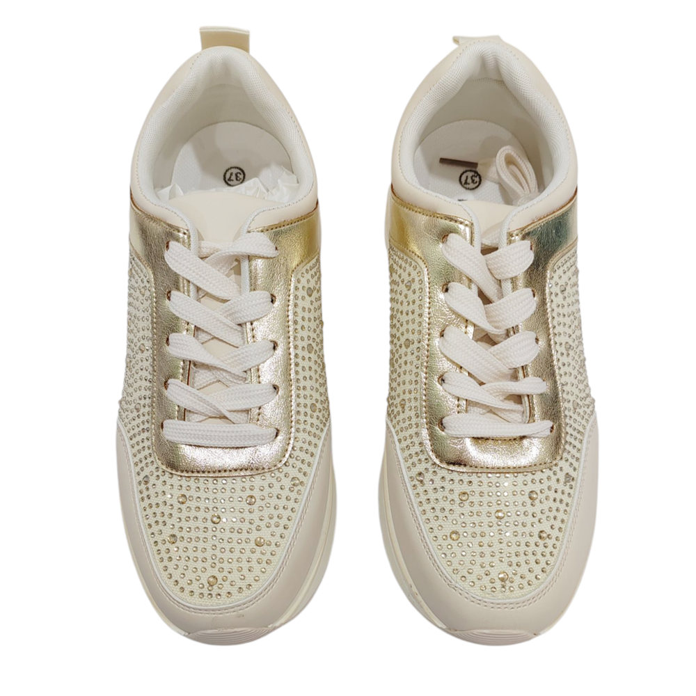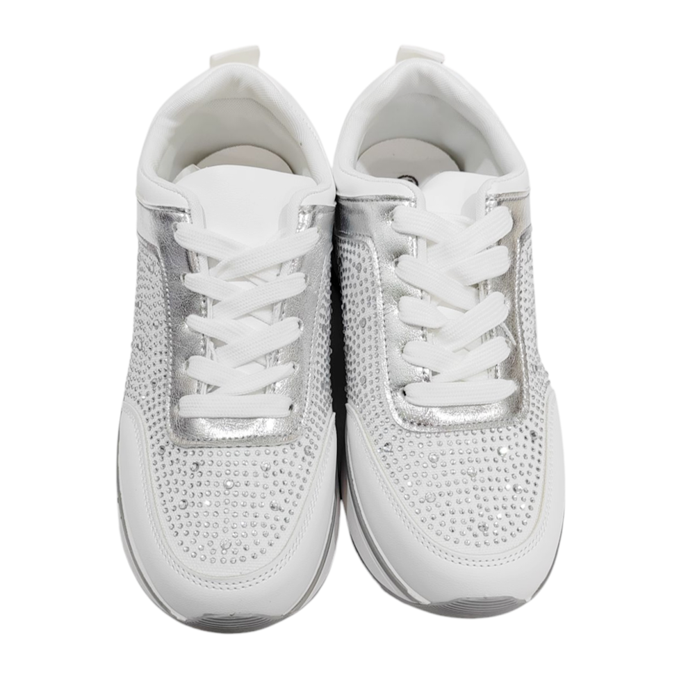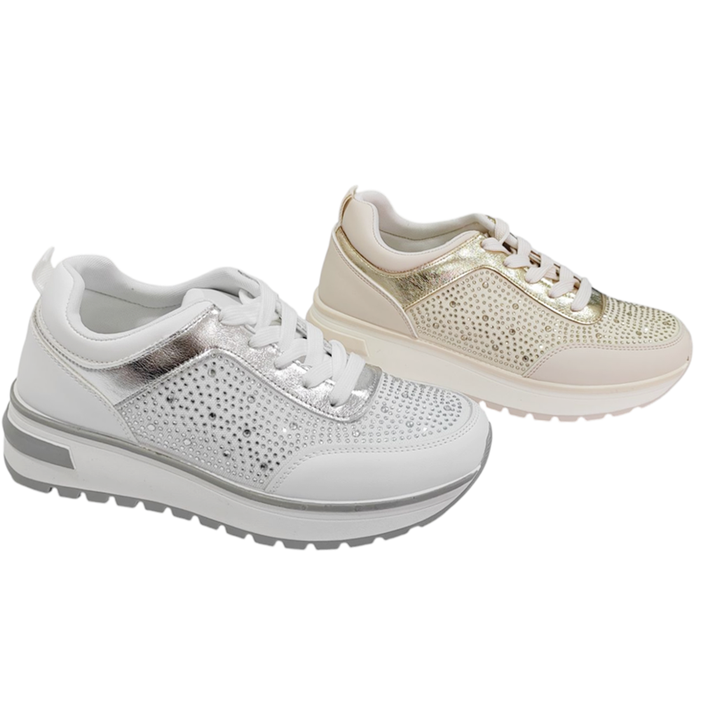 Divatos sneaker/sportcipő kövel díszítve. Anyaga: szintetikus Származási hely: EU Szín: fehér-ezüst,krém-arany. Talp magasság: 2,5 cm Sarok magasság: 4 cm Méret: 36- 23 cm 37- 23.5 cm 38- 24 cm 39- 24.5 cm 40- 25 cm 41-25.5 cm