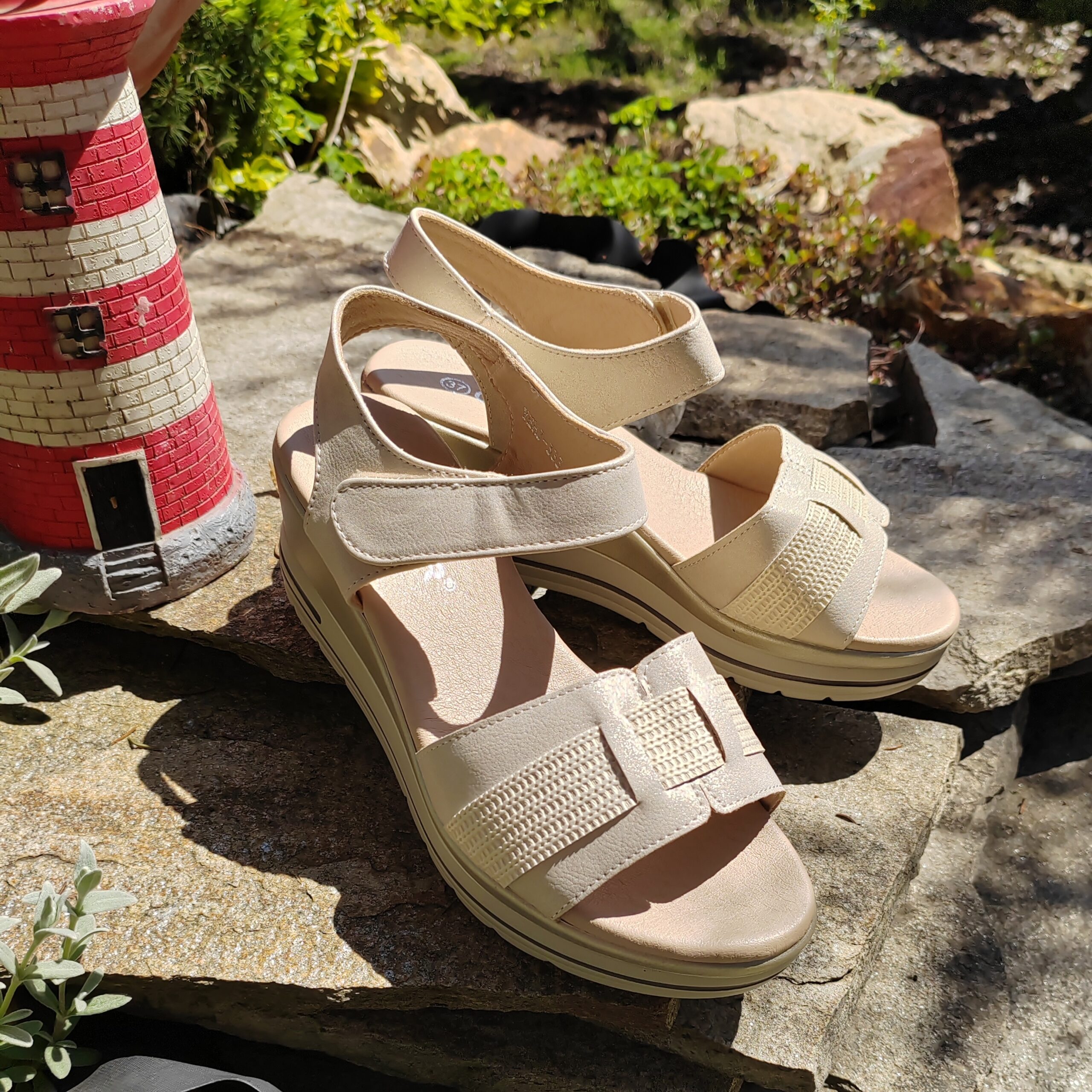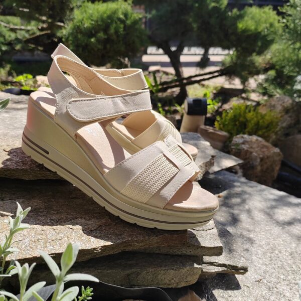 Divatos telitalpú szandál,tépőzáras Származási hely: EU Anyaga: szintetikus Szín: krém Talp: 3 cm Sarok: 6,5 cm Méretek: 36- 23 cm 37- 23,5 cm 38- 24 cm 39- 24,5 cm 40- 25 cm 41- 25,5 cm