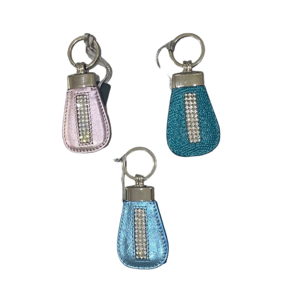 Elegáns,trendi bőr kulcstartó swarovszky kristályokkal díszítve. Méret: 8 x 4,5 cm Szín: arany,ezüst.