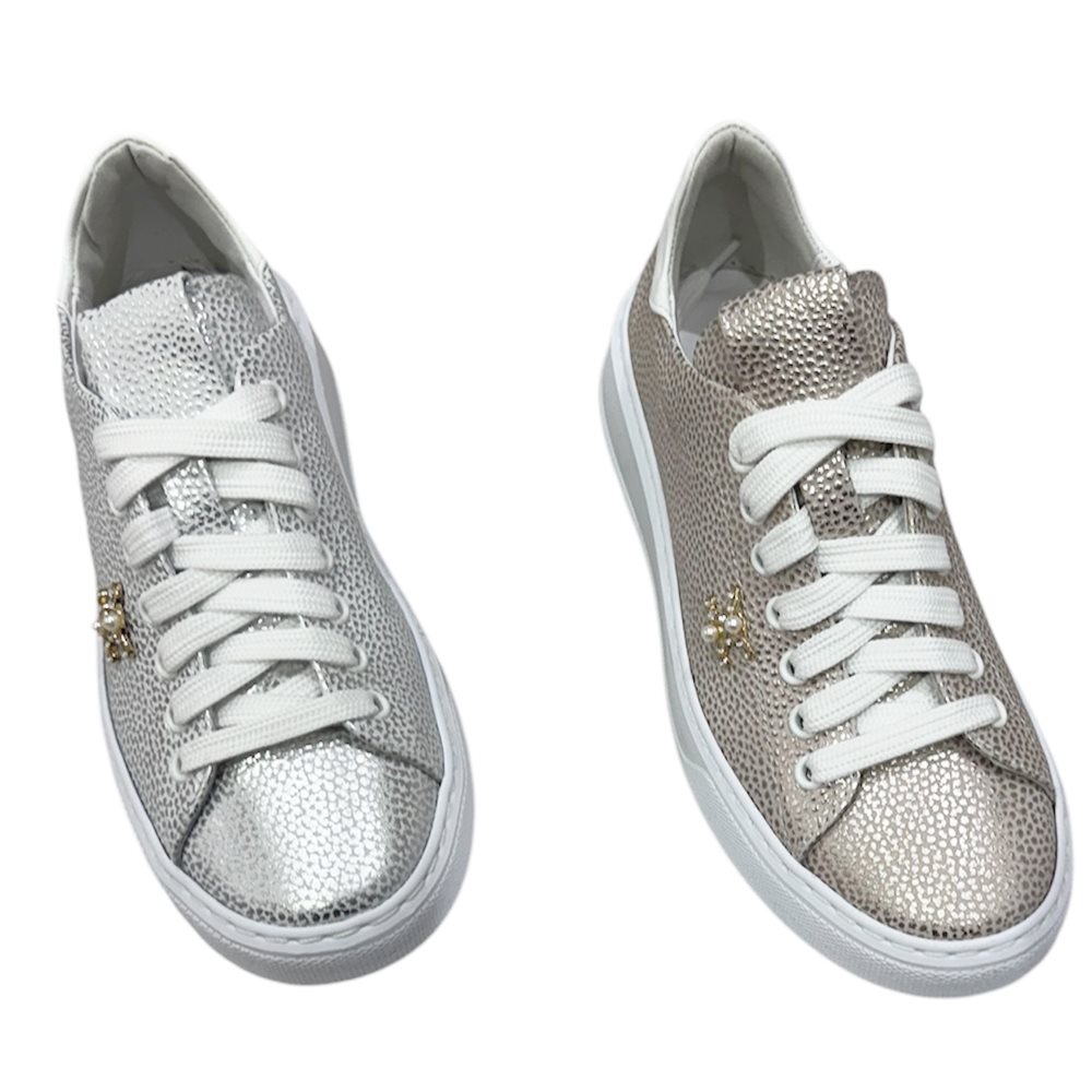 Divatos, bőr sneaker sportcipő Anyaga: eredeti bőr Származási hely: Lengyelország Szín: ezüst,arany Sarok magasság: 4 cm Talp vastagság: 3 cm Méret: 36- 23 cm 37- 24 cm 38- 24,5 cm 39- 25 cm 40- 25,5 cm