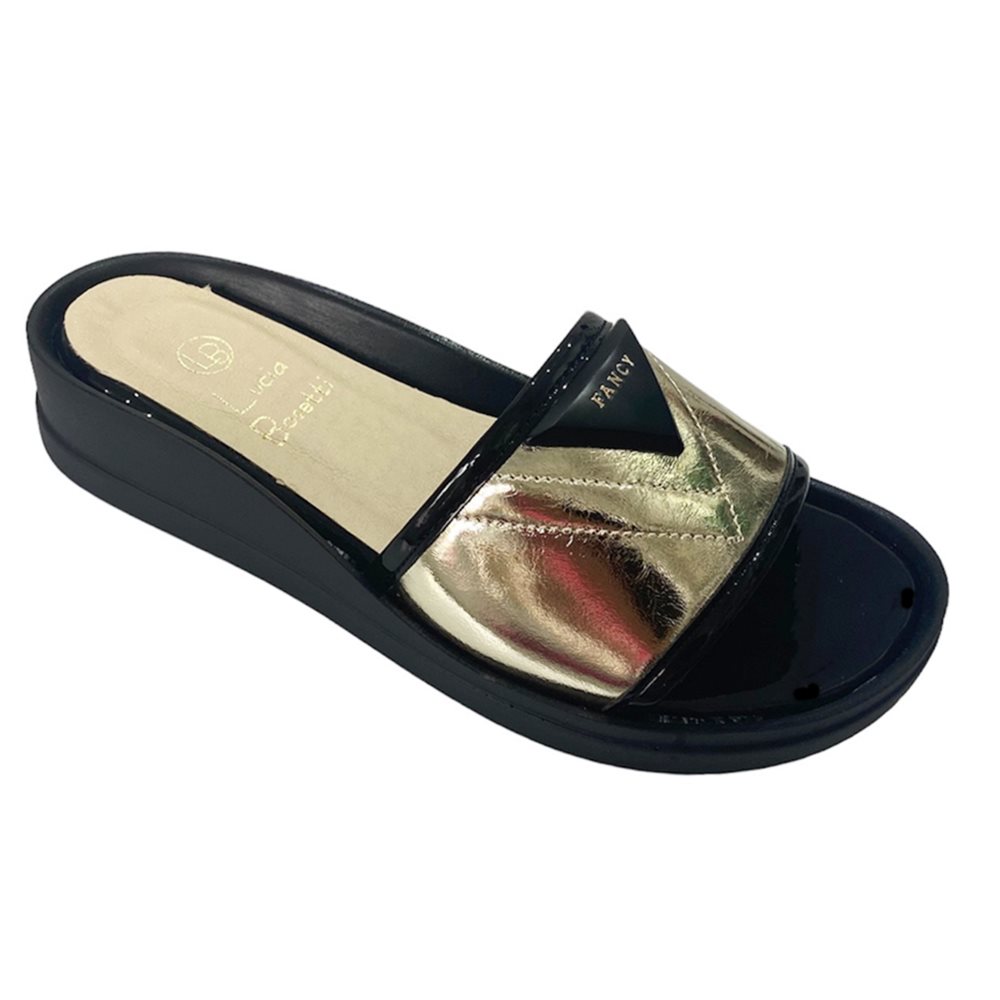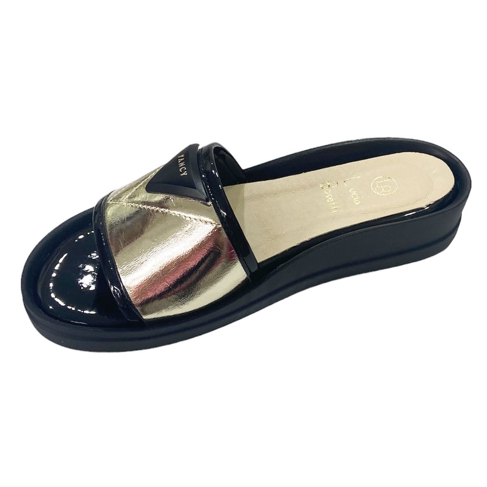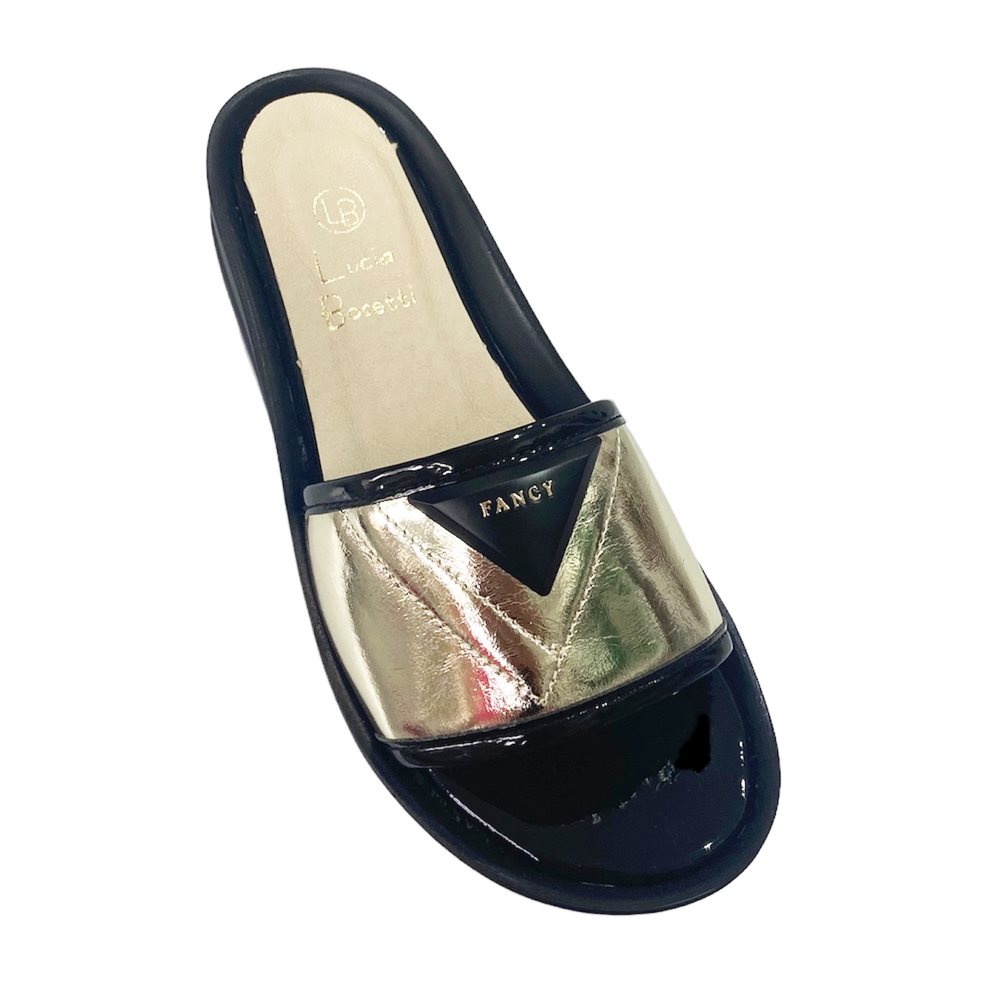 Lucia Bosetti fekete-arany bőr papucs