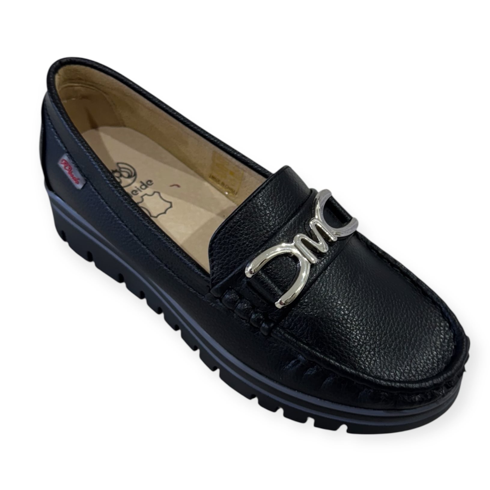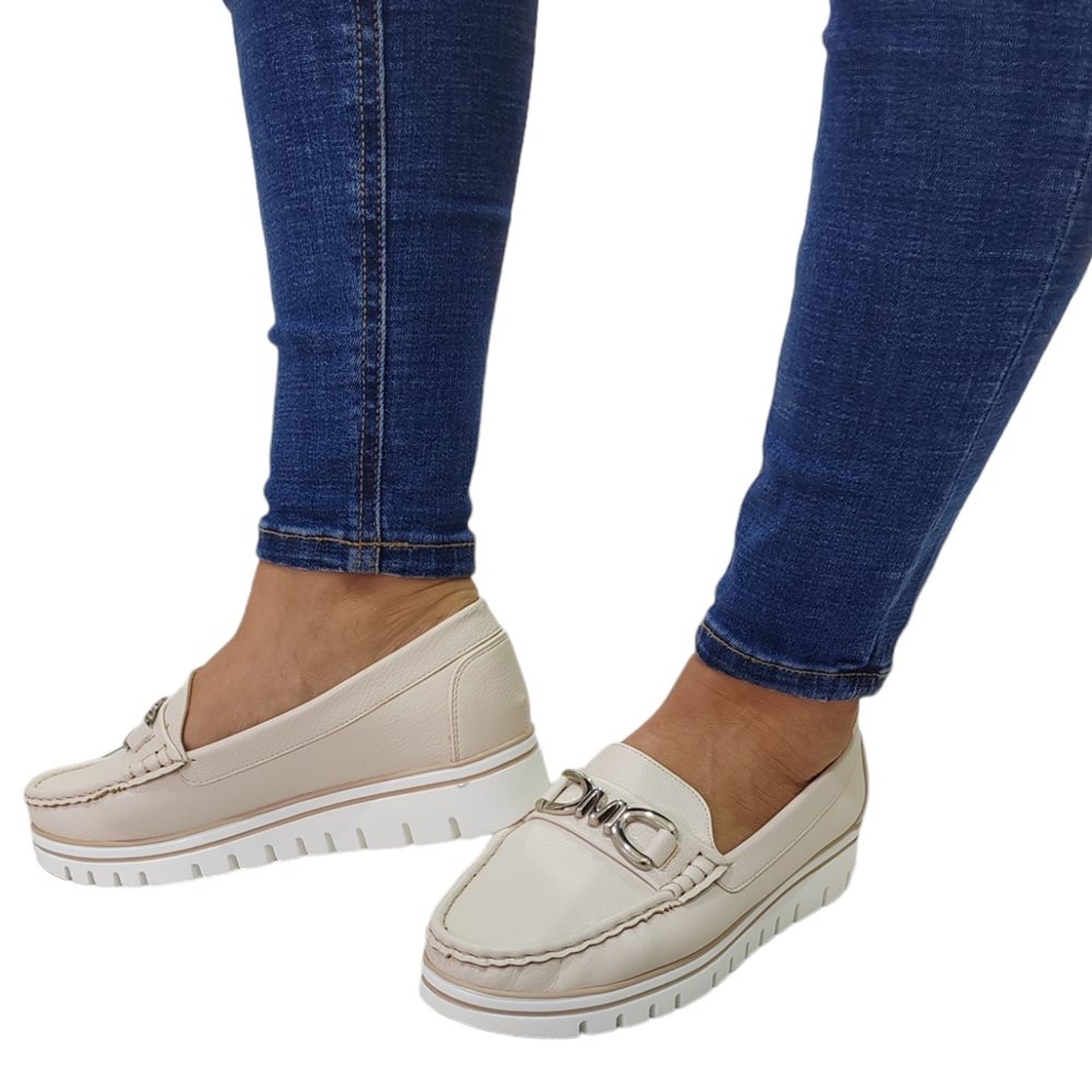Divatos mokaszin. Anyaga: szintetikus Származási hely: EU Szín: bézs,fekete. Talp magasság: 2 cm Sarok magasság: 3,5 cm Méret: 36- 23 cm 37- 23.5 cm 38- 24 cm 39- 24.5 cm 40- 25 cm 41-25.5 cm