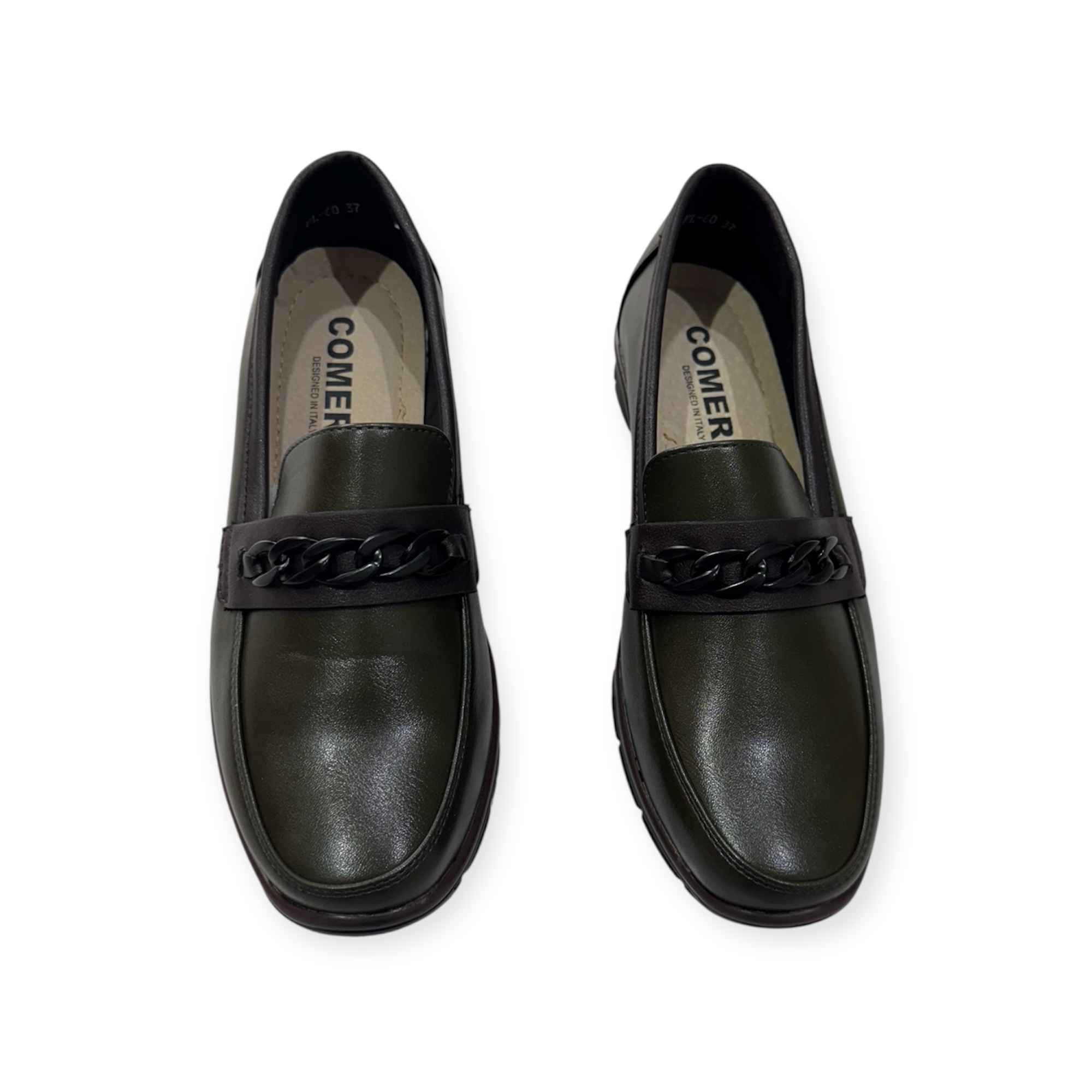 Divatos emelt talpú slip on . Anyaga: szintetikus Származási hely: EU Szín: fekete,olajzöld. Talp magasság: 1,5 cm Sarok magasság: 3,5 cm Méret: 36- 23 cm 37- 23,5 cm 38- 24,5 cm 39- 25 cm 40- 26 cm 41-27 cm