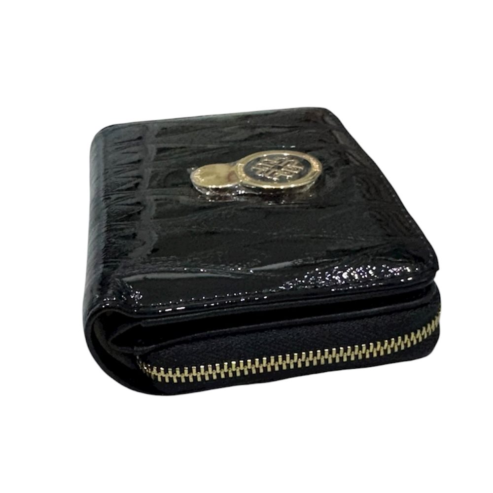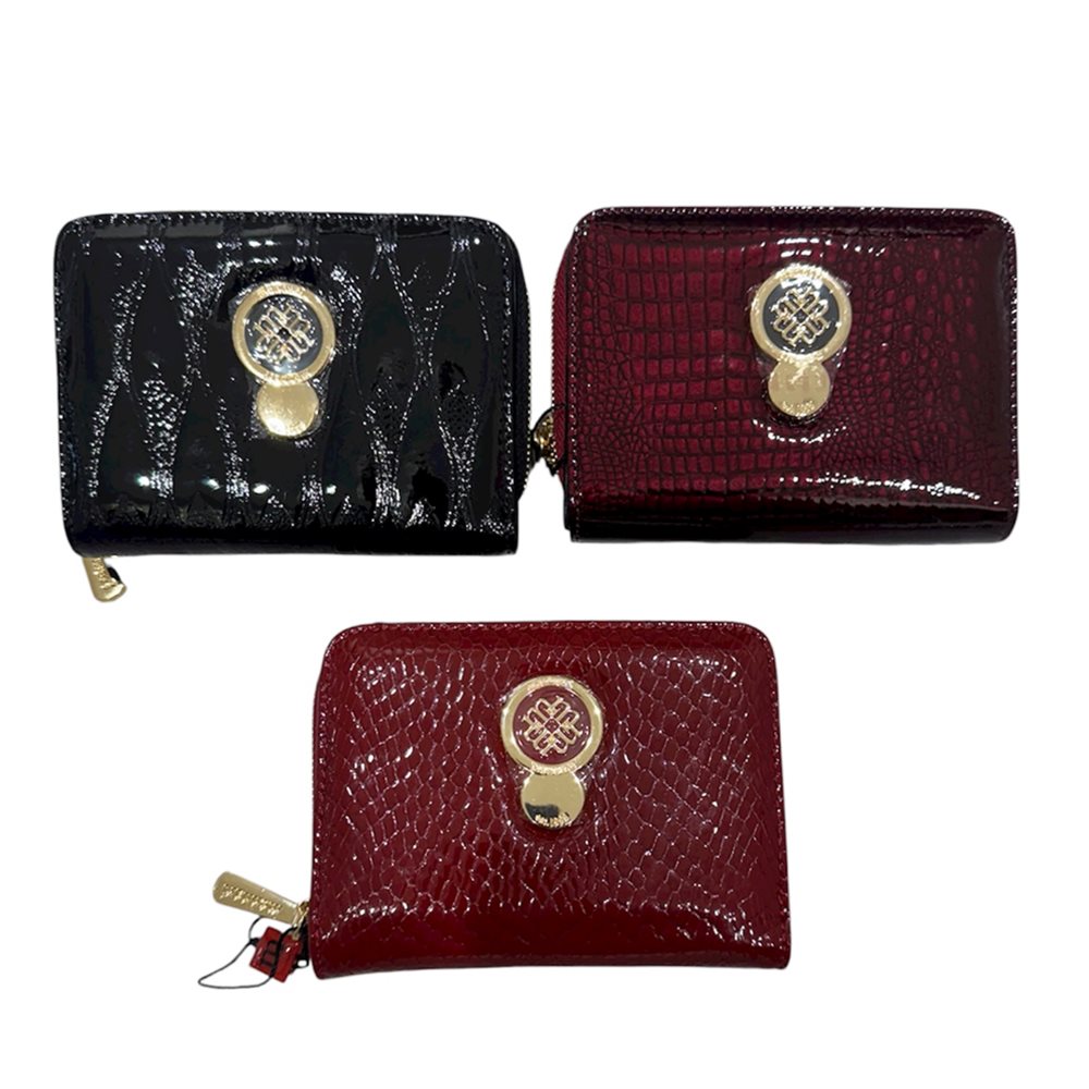 Divatos kisméretű bőr pénztárca. Anyaga: bőr Származási hely: EU Szín: fekete,piros-lakk,fekete-kroko,piros-kroko,ezüst-hüllő. Méret: Szé 13 x Ma 10 x Mé 3 cm  Aprópénzes tartója cipzárral záródik. A papírpénz  1 külön rekeszben fér el. Kártyáknak külön rekeszei vannak,legalább 6 db.