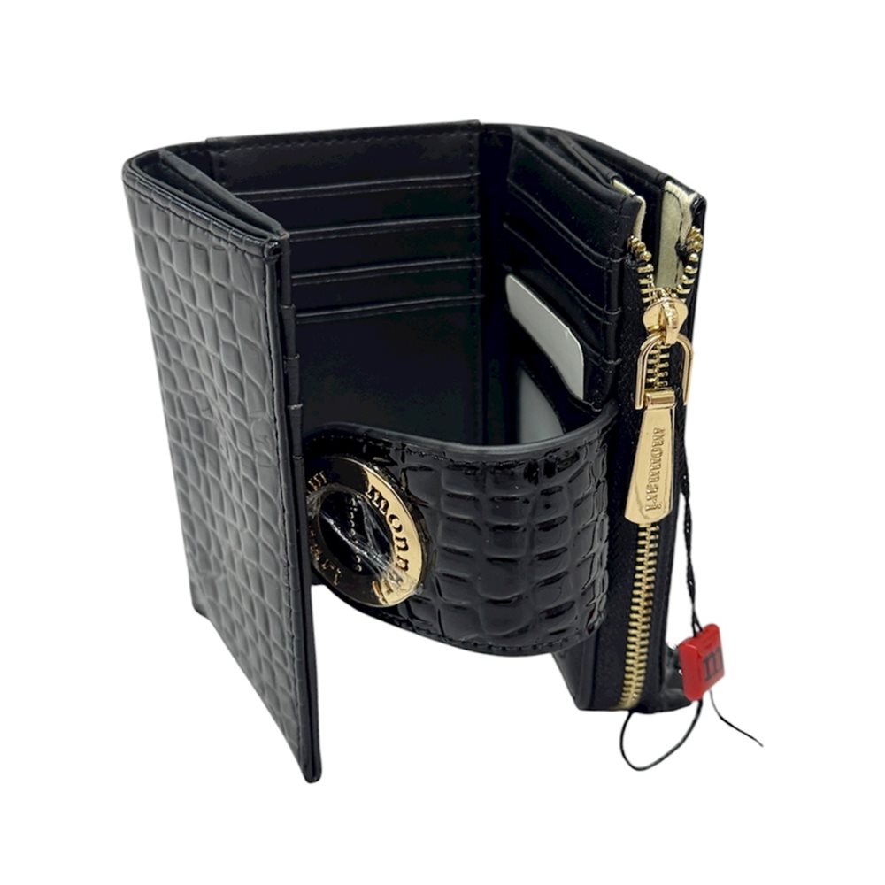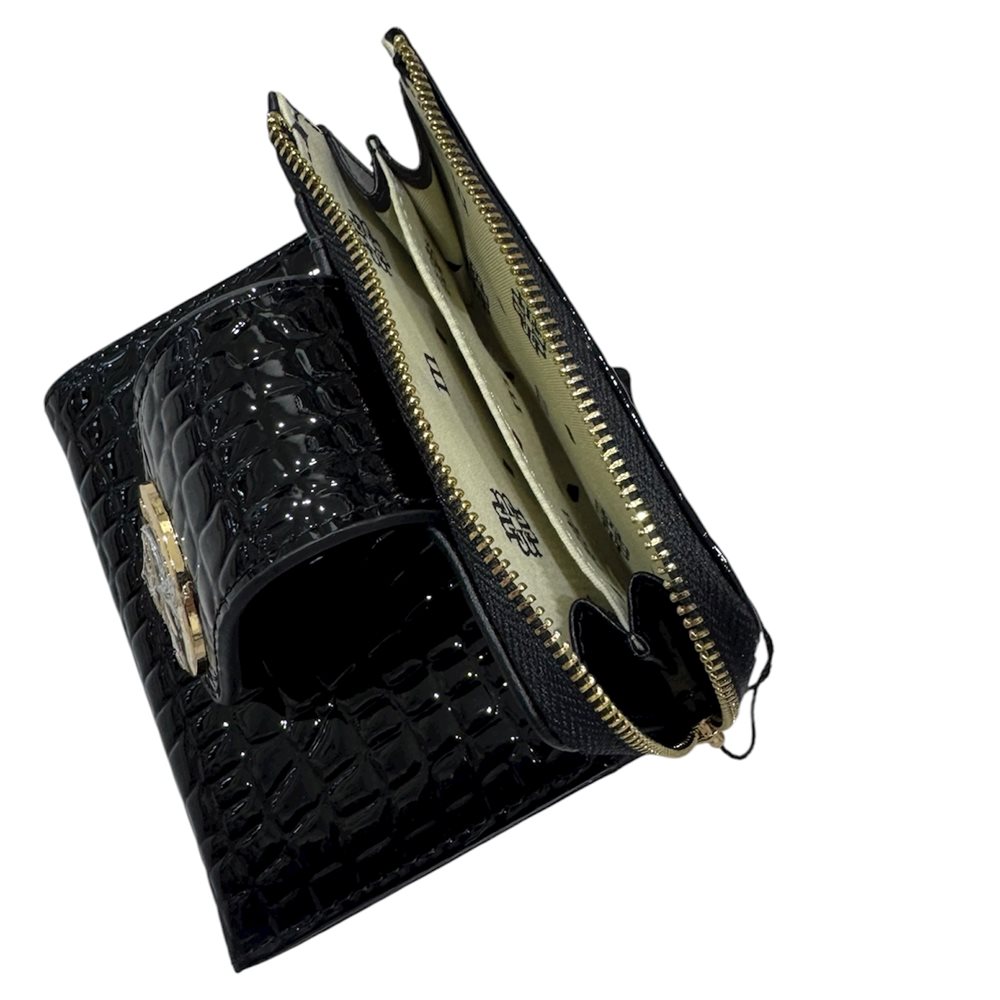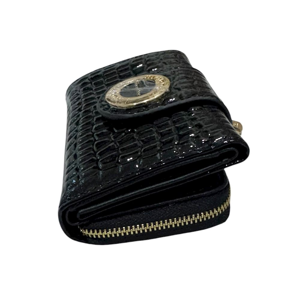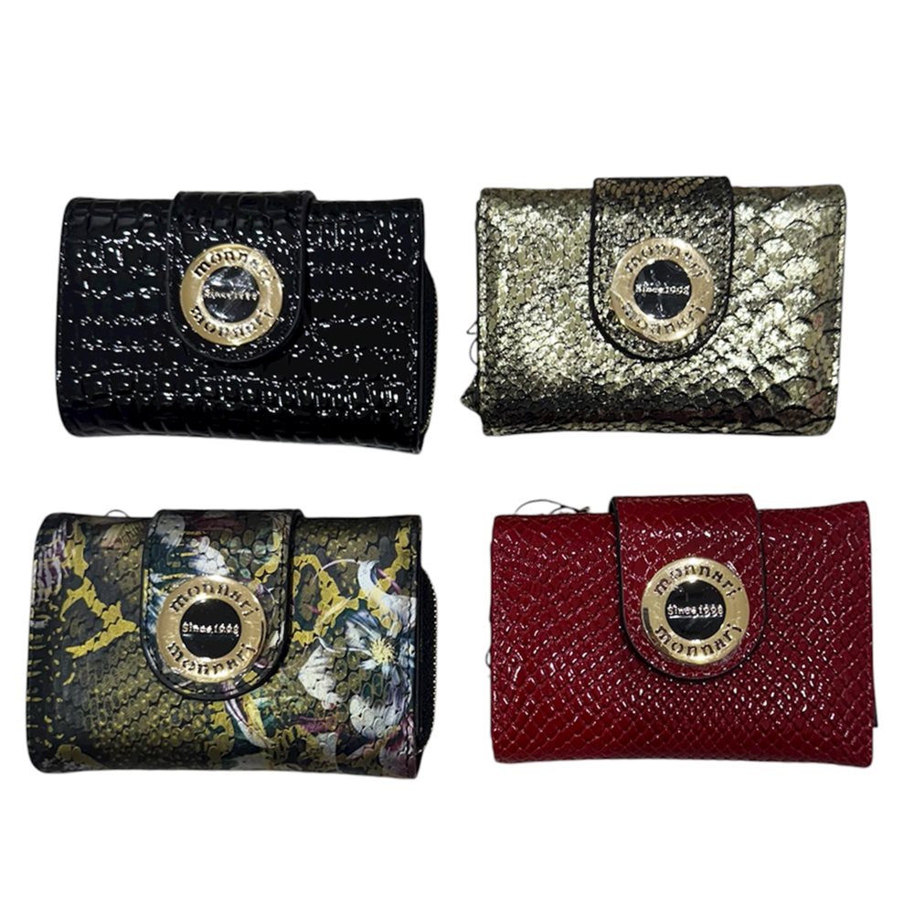 Divatos kisméretű bőr pénztárca. Anyaga: bőr Származási hely: EU Szín: fekete-kroko,piros-kroko,arany,virágos. Méret: Szé 12,5 x Ma 9 x Mé 3 cm  Aprópénzes tartója cipzárral záródik. A papírpénz 1 külön rekeszben fér el. Kártyáknak külön rekeszei vannak,legalább 15 db.