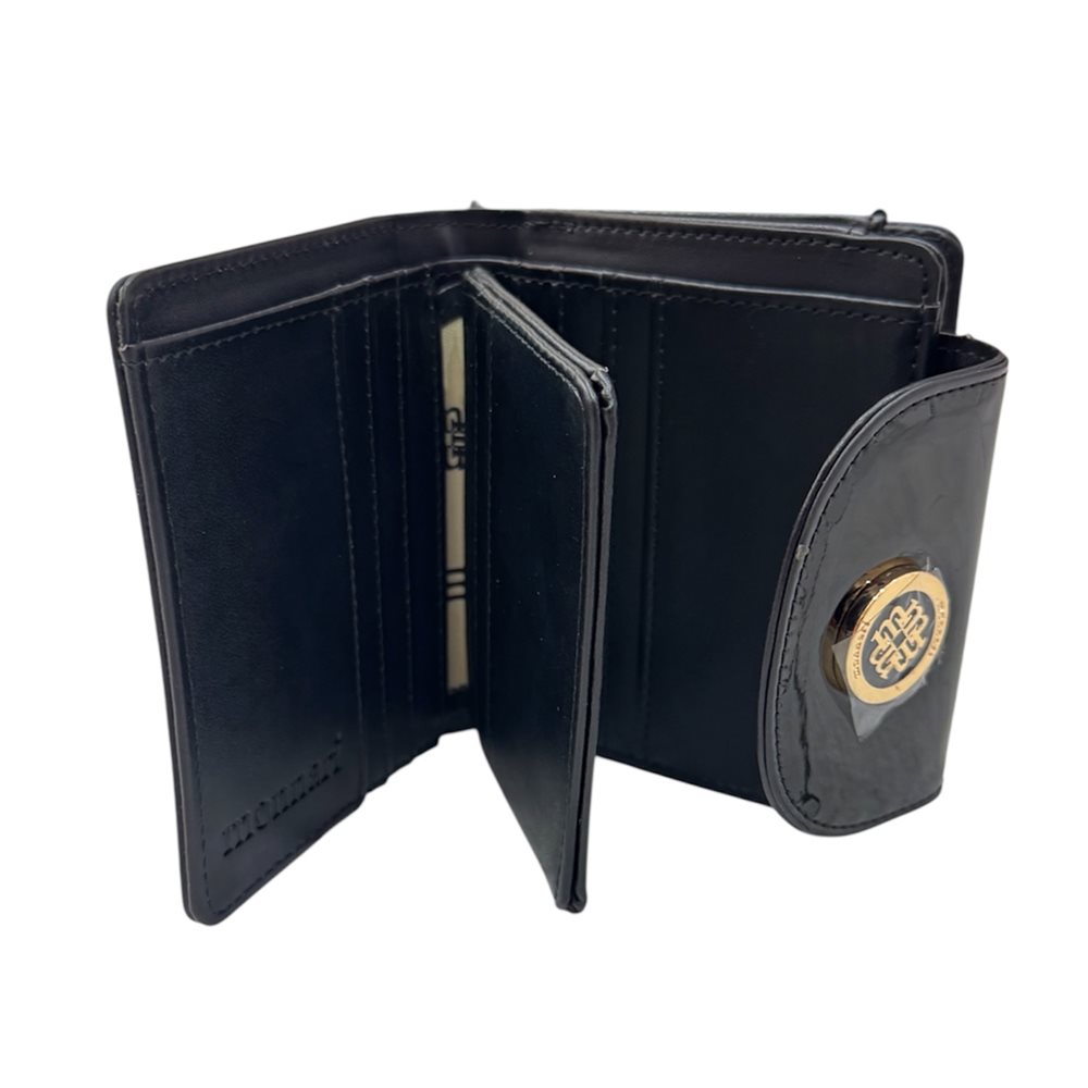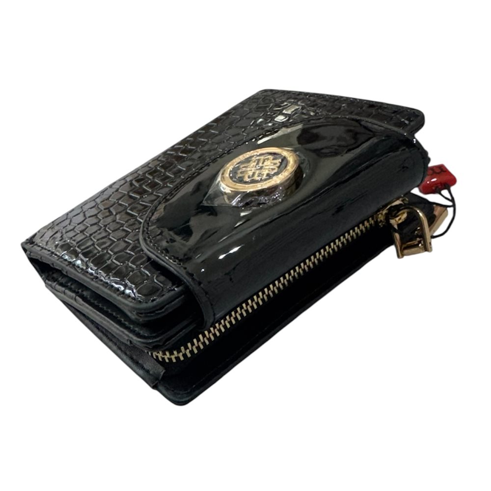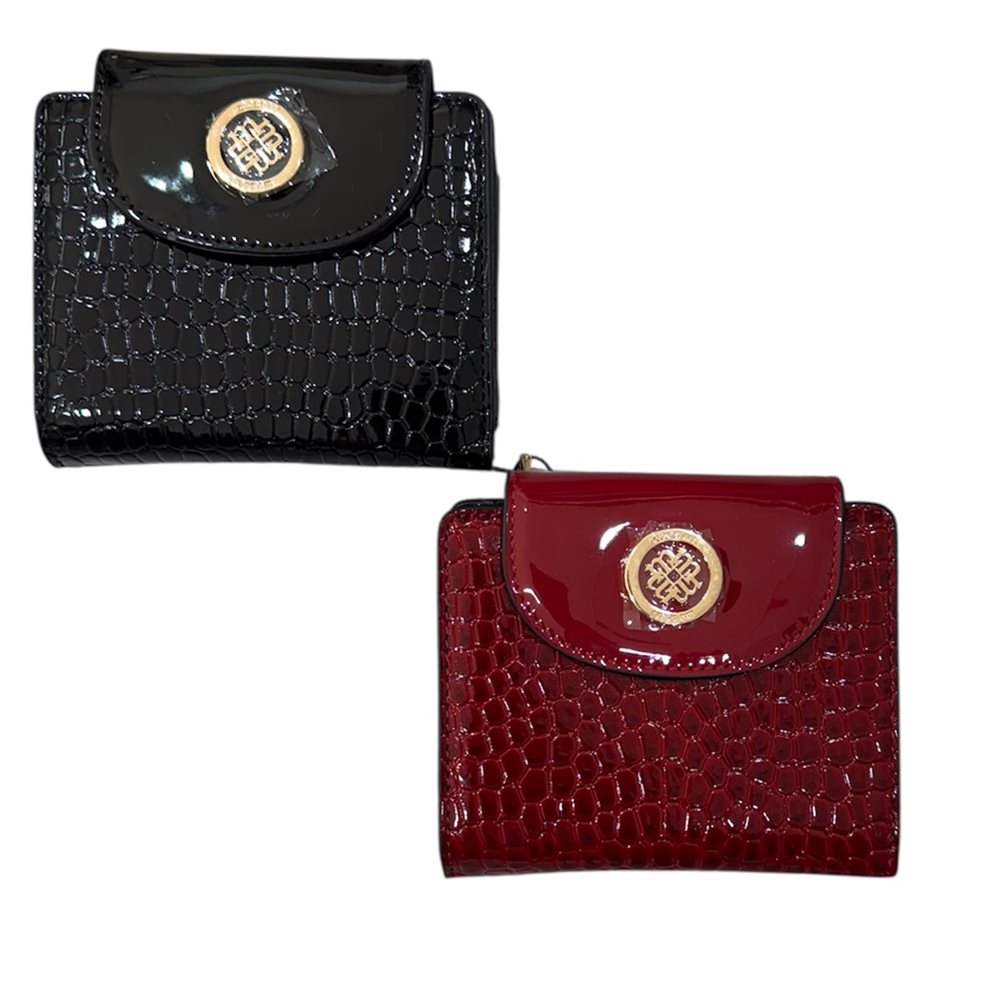 Divatos kisméretű pénztárca. Anyaga: szintetikus Származási hely: EU Szín: fekete,piros Méret: Szé 11 x Ma 9 x Mé 3 cm  Aprópénzes tartója cipzárral záródik. A papírpénz  1 külön rekeszben fér el. Kártyáknak külön rekeszei vannak,legalább 13 db.