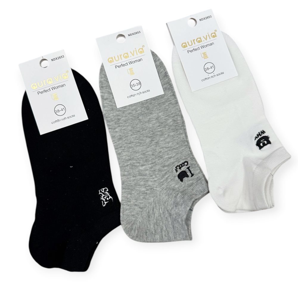 Pamut cicás bokazokni. Anyaga: 85%pamut, 10% poliészter, 5 % elastan Ápolás: Gépben mosható. Szín: Fekete,fehér,szürke.  Származási hely: EU