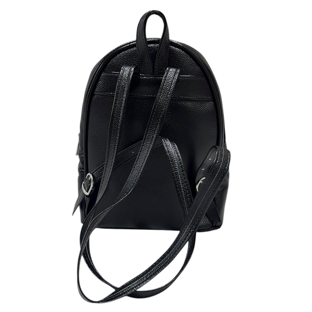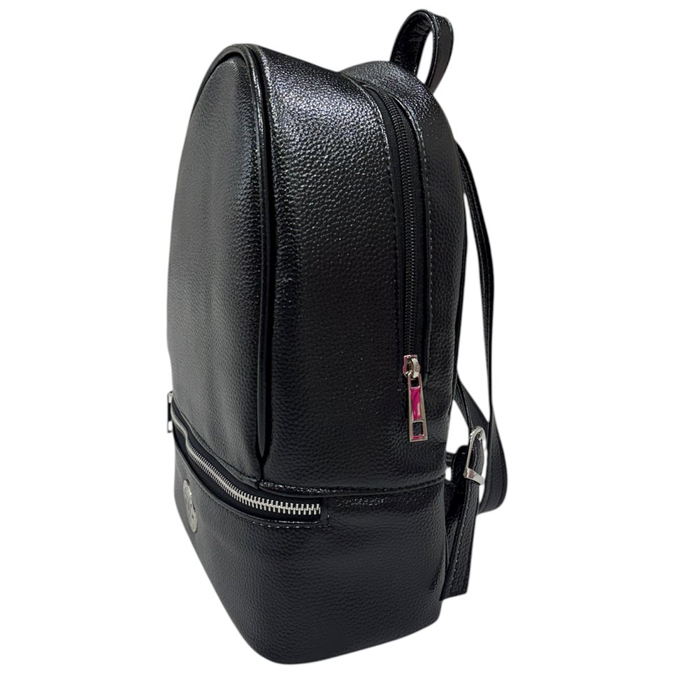 Elegáns ,divatos hátitáska. Egy rekeszes,elöl cipzáras zseb. Szín: fekete Származási hely: Lengyelország Anyaga: rostbőr Méret: szé 26 x ma 31 x mé 11 cm