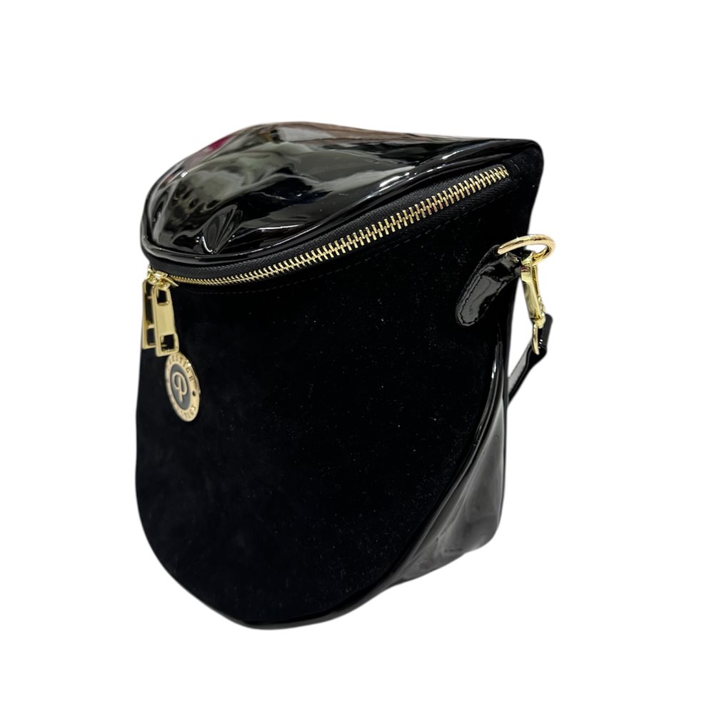 Divatos prestige kézi-oldaltáska.. Egy rekeszes,hátul cipzáras rekesz,plusz hosszú pánt Anyaga:  rostbőr Származási hely: EU Szín: fekete /arany logo/, fehér /ezüst logo/,fekete-nubuk. Méret: Szé 23 x Ma 21 x Mé 12 cm