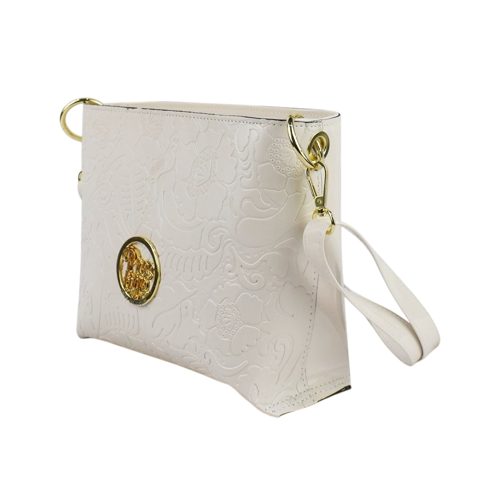 Divatos oldaltáska,állítható pánttal. Egy rekeszes. Anyaga: rostbőr Származási hely: EU Szín: krém-virágos, Méret: Szé 24,5 x Ma 20 x Mé 9 cm