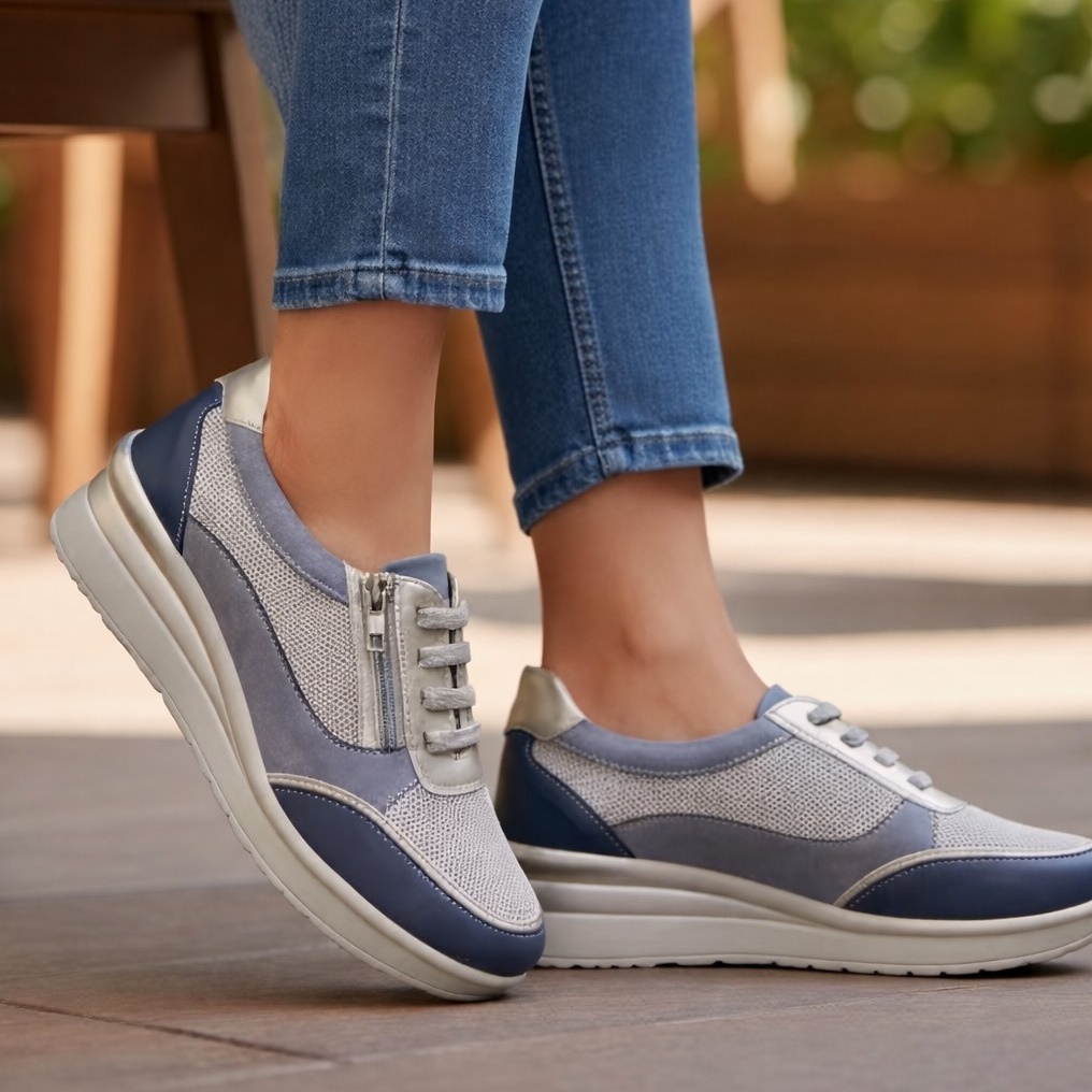 Kényelmi sportcipő több színben,emelt talppal,gumis cipőfűző,oldal cipzárral. Anyaga: szintetikus Származási hely: EU Szín: kék,krém. Talp magasság: 2 cm Sarok magasság: 4,5 cm Méret: 36- 23 cm 37- 24 cm 38- 24,5 cm 39- 25 cm 40- 26 cm 41-27 cm Szűkebb fazon , szélesebb lábra nem ajánljuk . Csinos nőis fazon .
