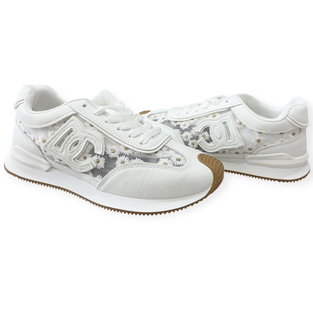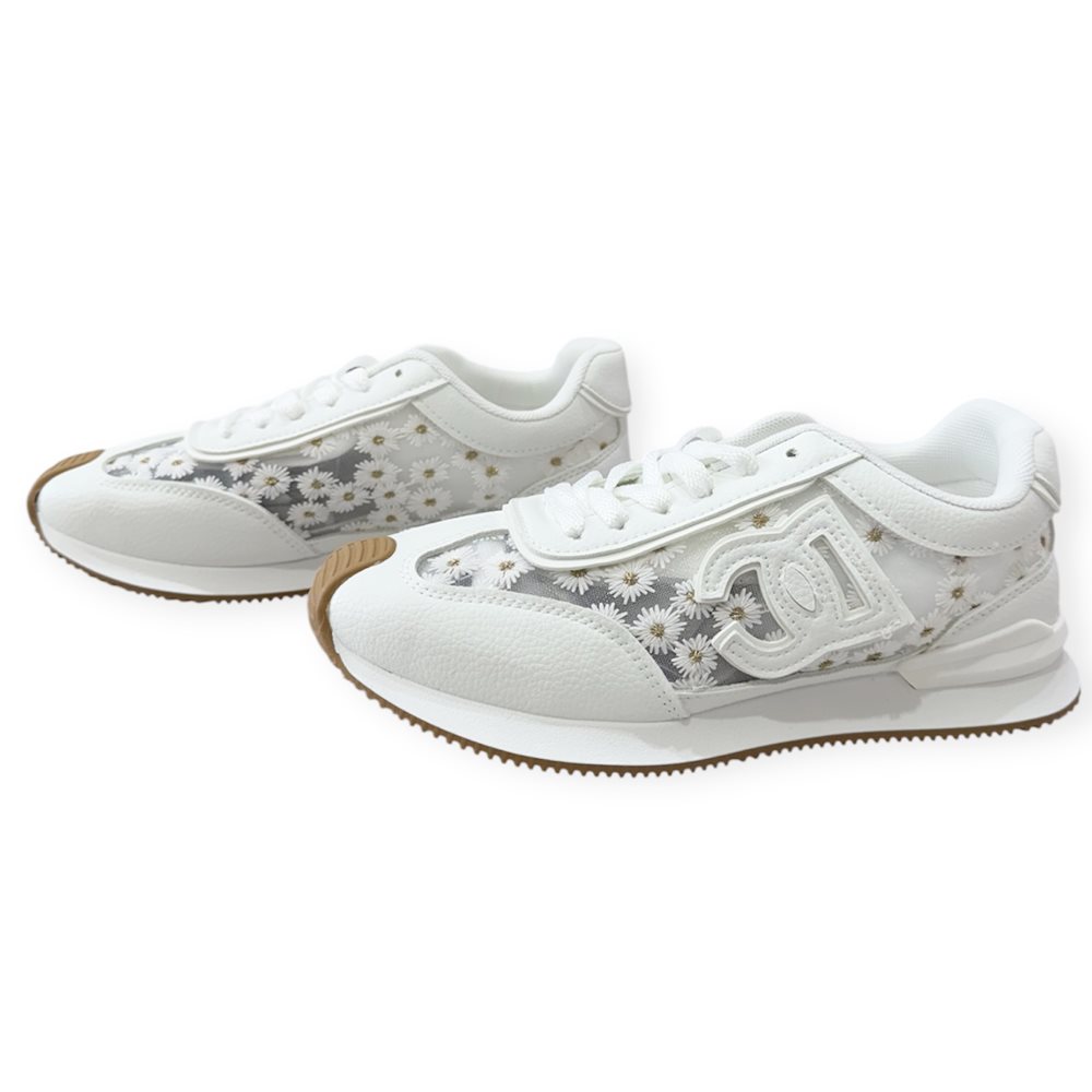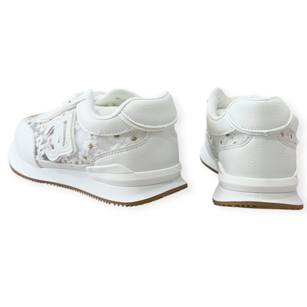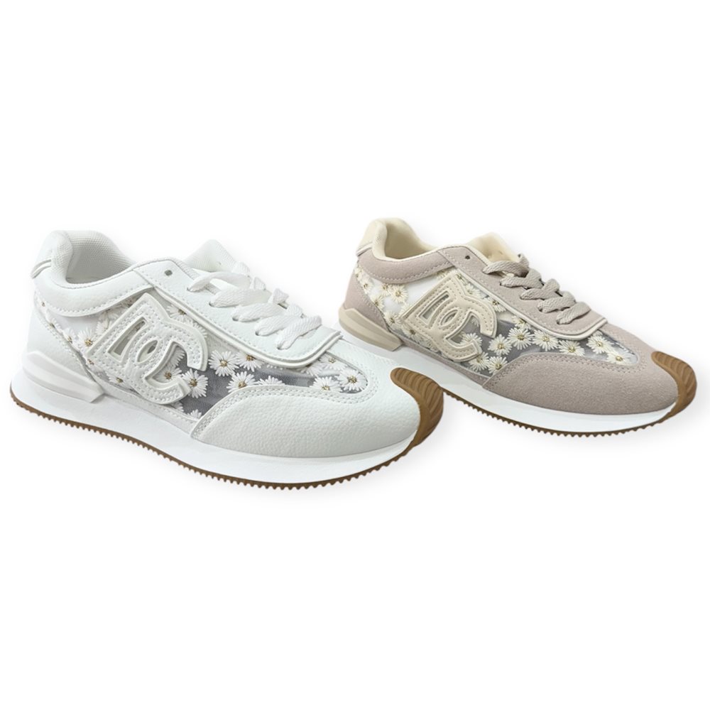 Divatos  sneaker/sportcipő virágos mintával,oldalán necc anyagból. Anyaga: szintetikus Származási hely: EU Szín: fehér,bézs . Talp magasság: 1,5 cm Sarok magasság: 2,5 cm Méret:  36- 23 cm 37- 23.5 cm 38- 24 cm 39- 24.5 cm 40- 25 cm 41-25.5 cm