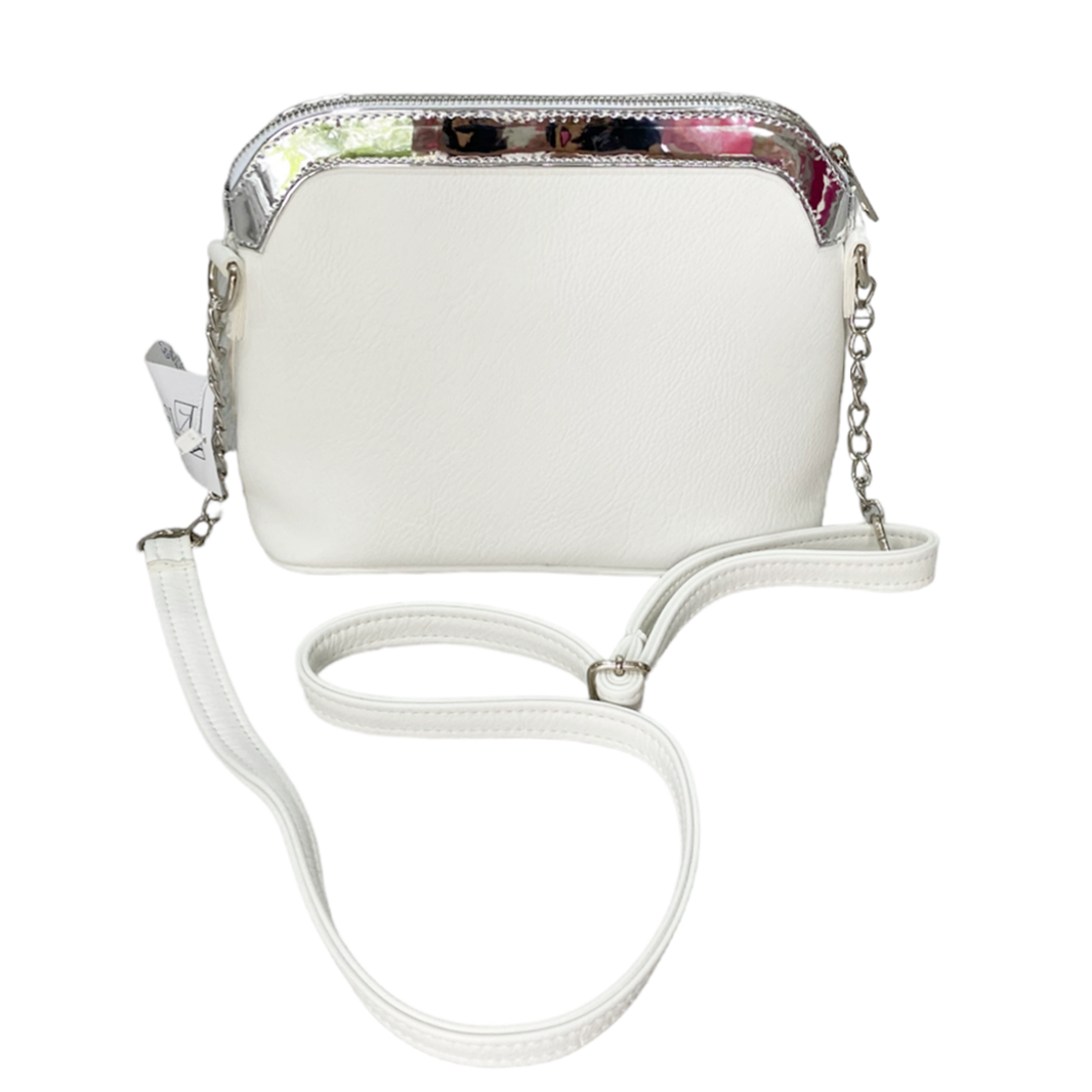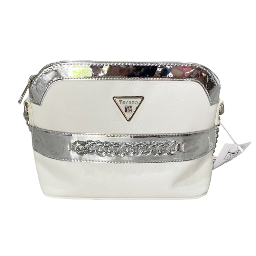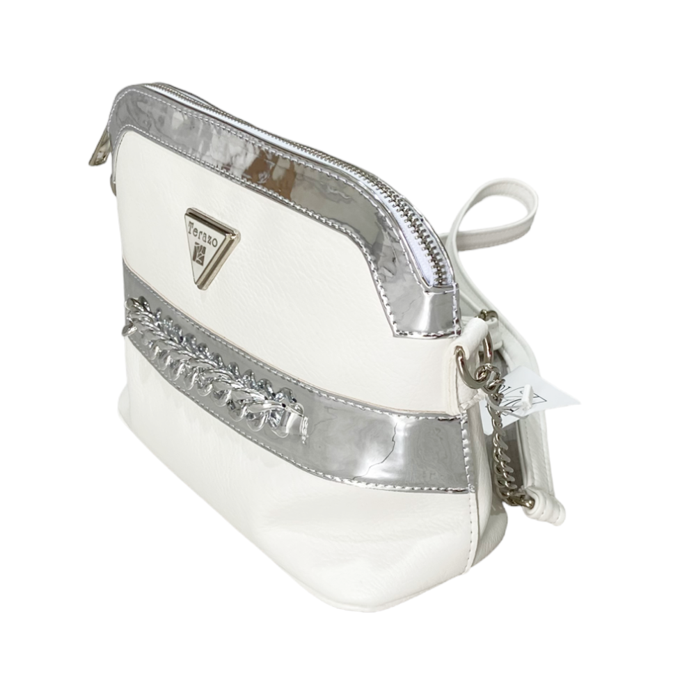 Divatos oldaltáska,három rekeszes,hátul cipzáras zseb. Anyaga: rostbőr Származási hely: Lengyelország Szín: krém-arany,arany-gyöngyház Méret: Szé 26 x Ma 23 Mé 4  cm