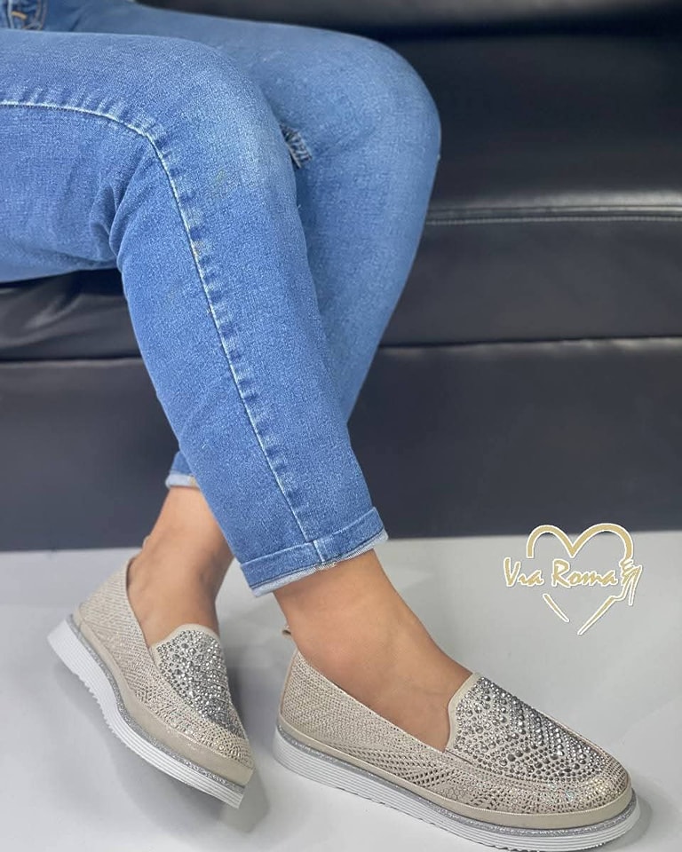 Divatos bőr slip on,extra könnyű,kövekkel díszítve. Anyaga: eredeti bőr Származási hely: Lengyelország Szín: arany-hologram Sarok magasság: 2,5 cm Talp vastagság: 1,5 cm Méret: 36- 23 cm 37- 24 cm 38- 24,5 cm 39- 25,5 cm 40- 26 cm