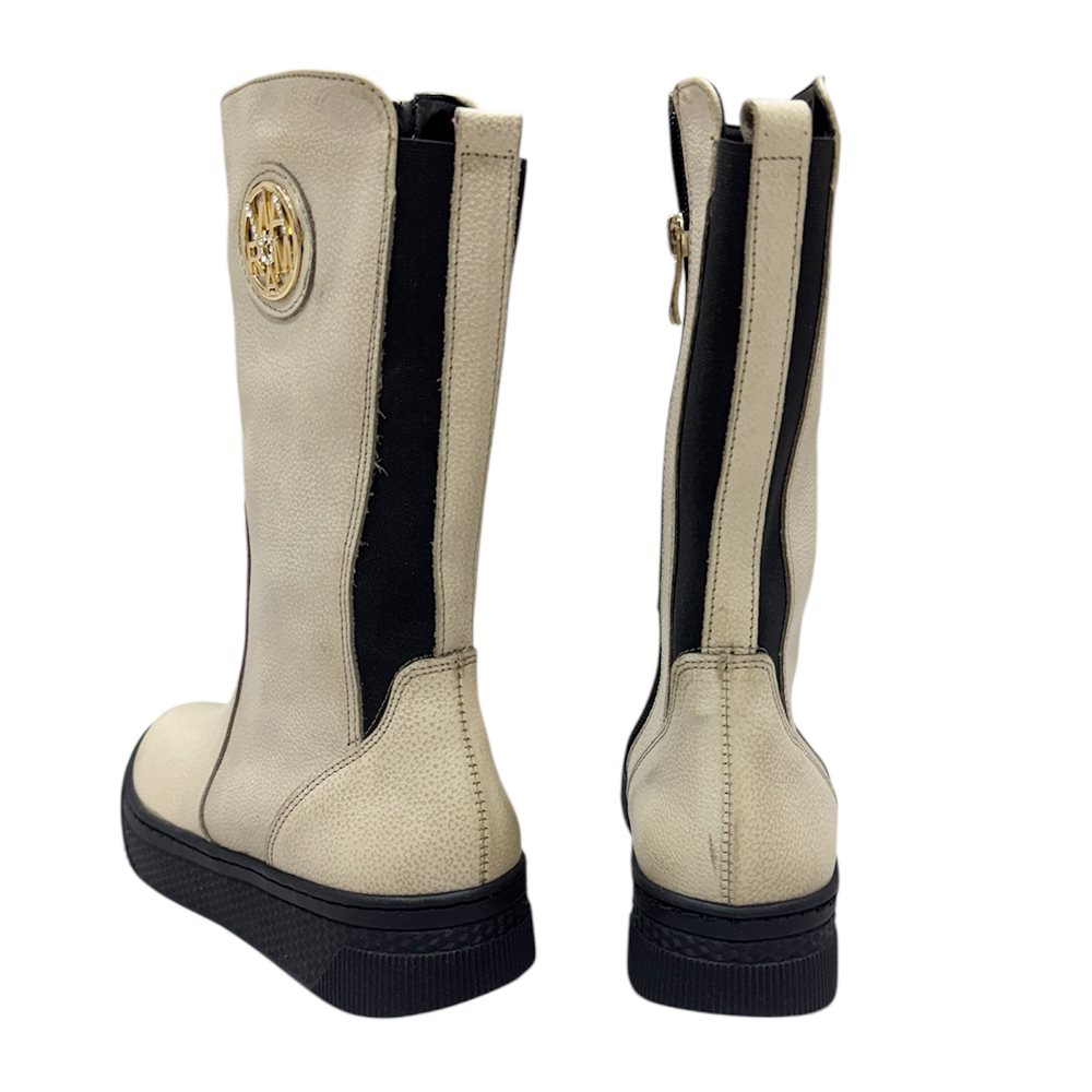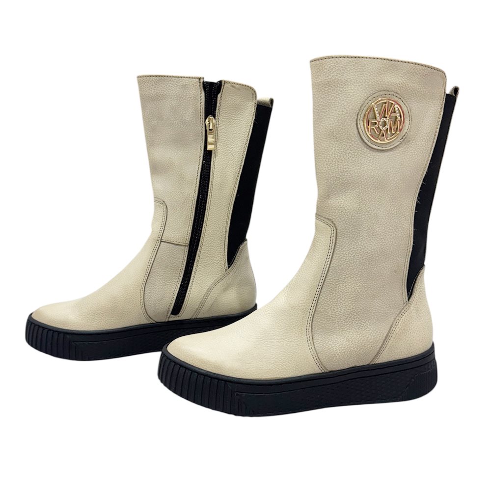 Divatos bőr 3/4-es slip on csizma,hátul gumis betét. Anyaga: eredeti bőr Származási hely: Lengyelország Szín: koptatott bézs. Bélés: filc Talp vastagság: 3 cm Sarok magasság: 4 cm Szárhossz saroktól mérve: 22,5 cm Méret: 36- 23 cm 37- 23,5 cm 38- 24 cm 39- 25 cm 40-25,5 cm