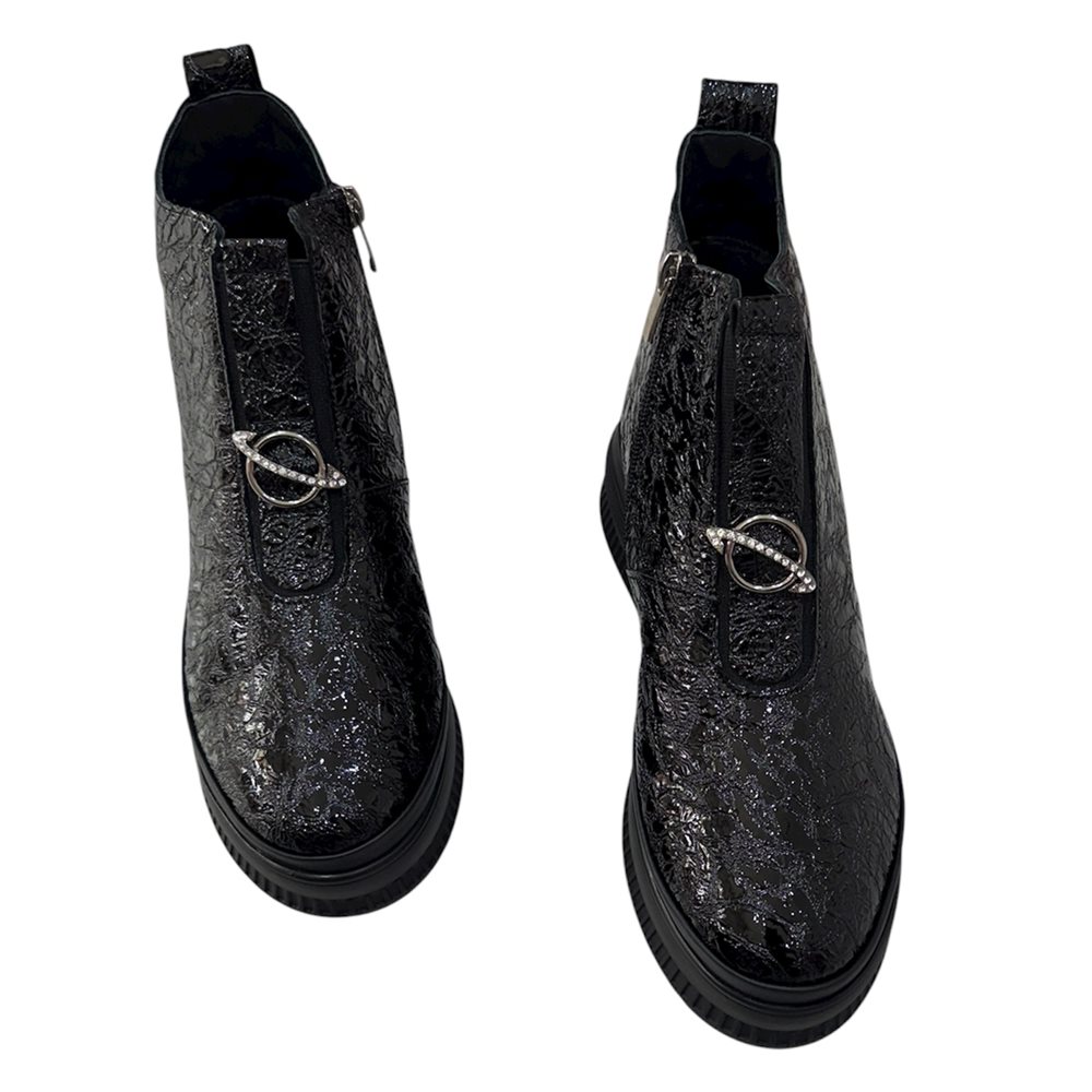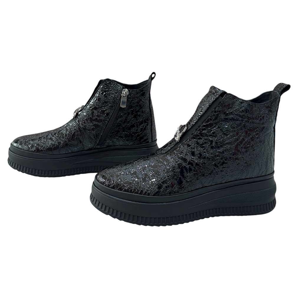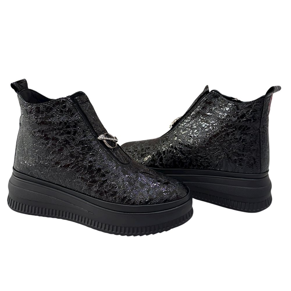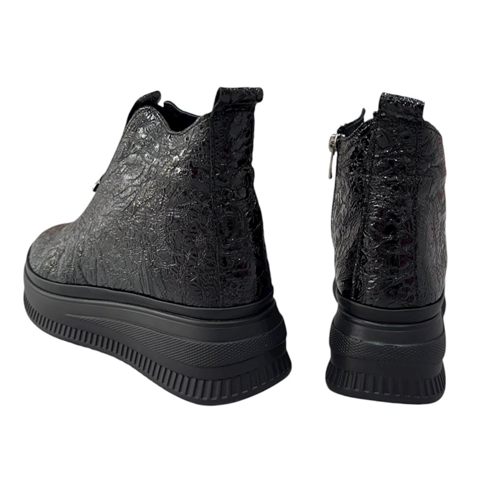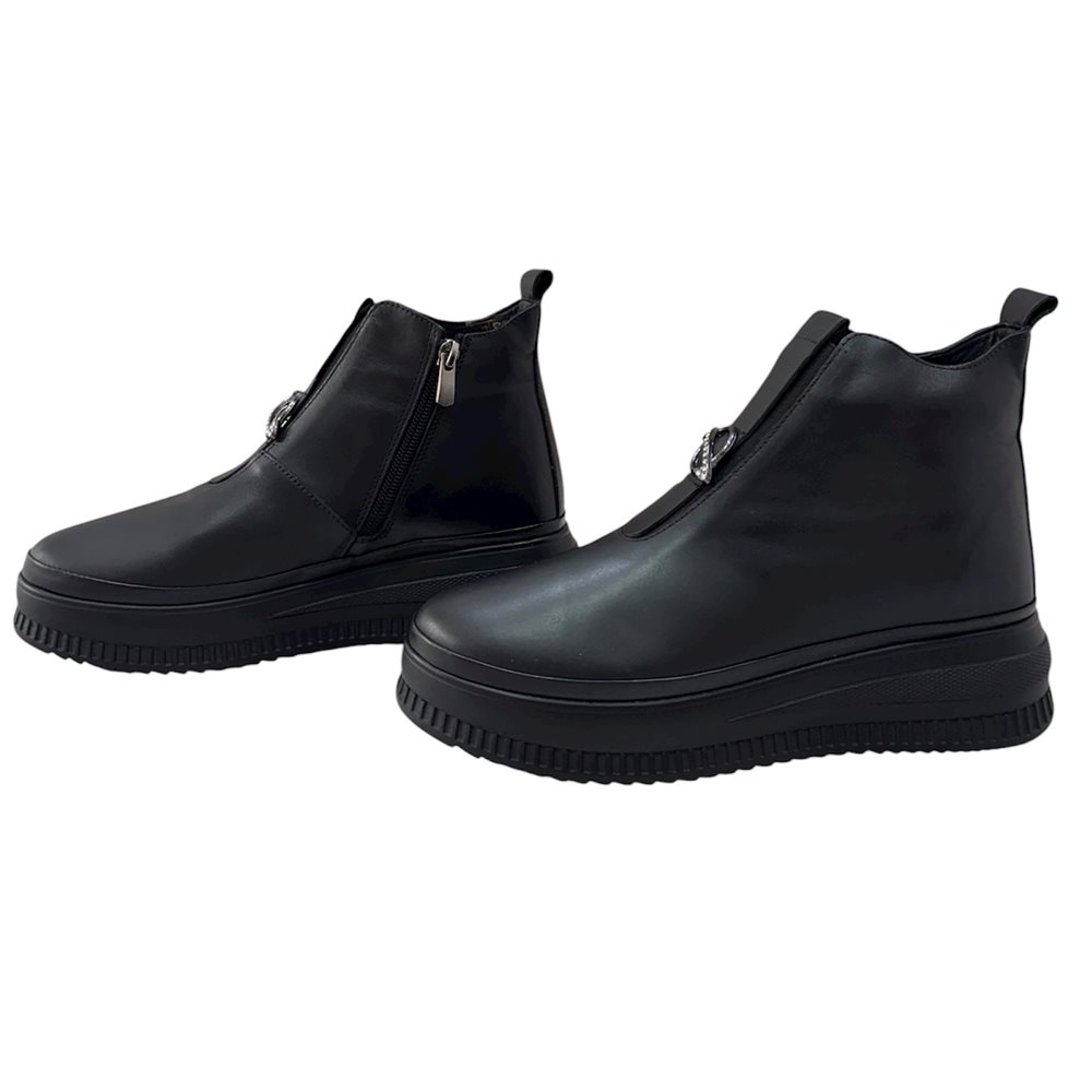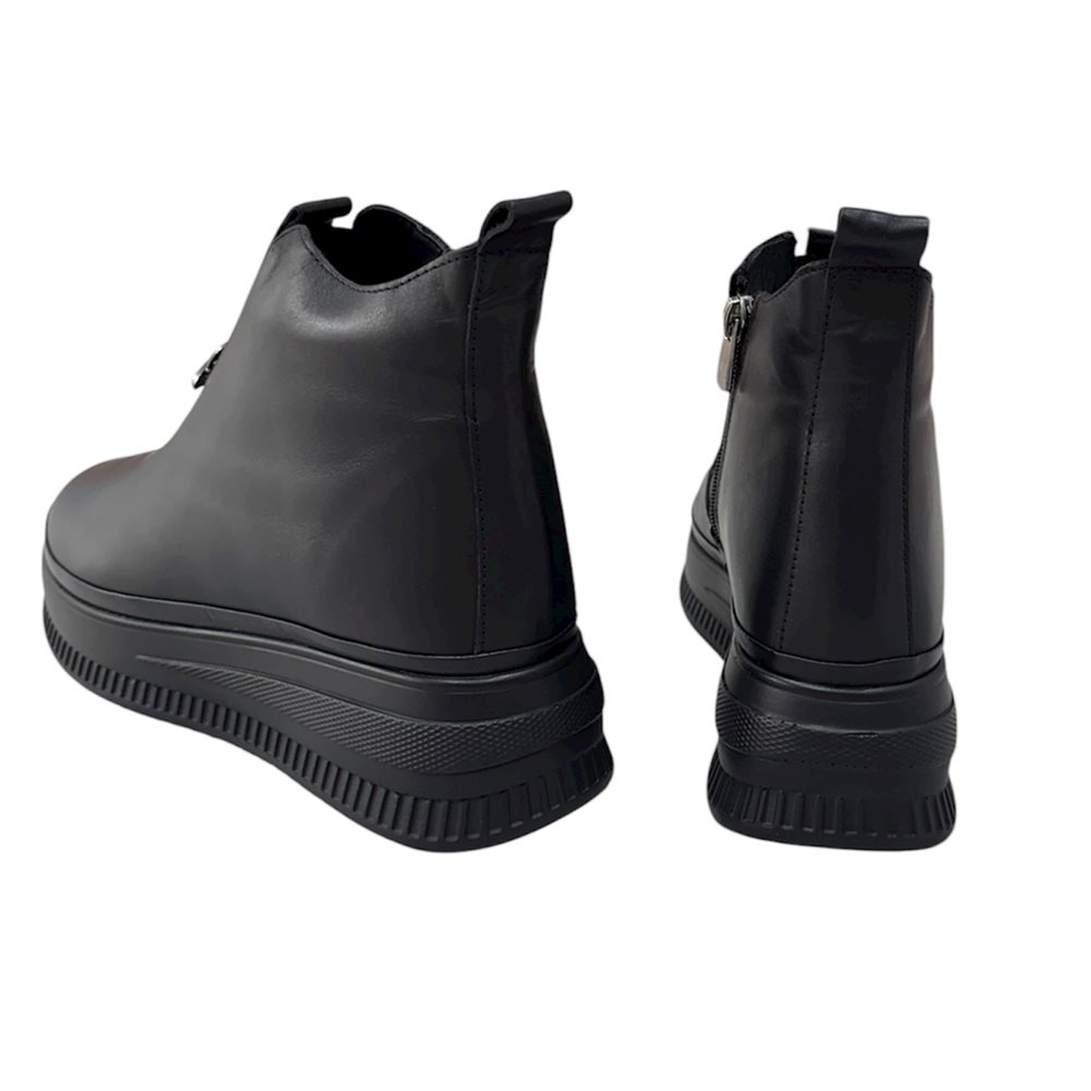 Divatos bőr boka magasított száru slip on,oldalán cipzárral Anyaga: eredeti bőr Származási hely: Lengyelország Szín: fekete-matt,fekete-fényes. Bélés: plüss Talp vastagság: 3 cm Sarok magasság: 4,5 cm Szárhossz saroktól mérve: 11 cm Méret: 36- 23 cm 37- 23,5 cm 38- 24 cm 39- 25 cm 40-25,5 cm