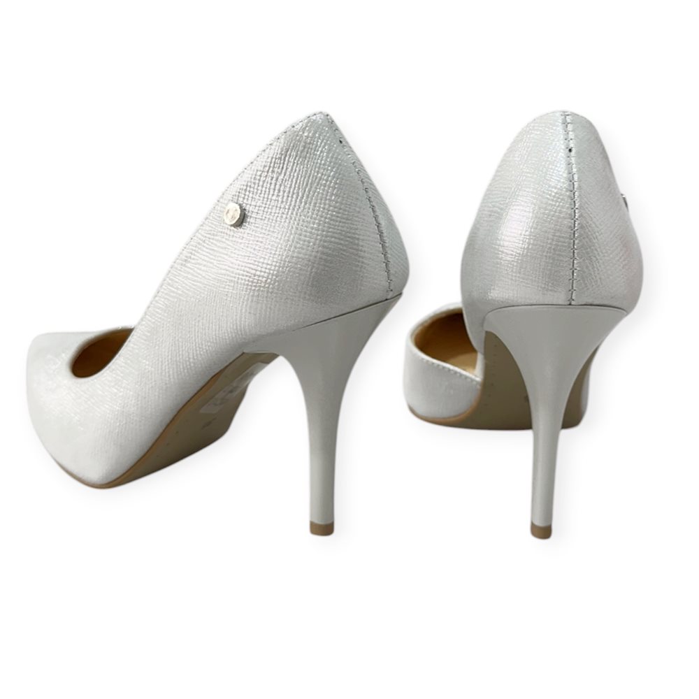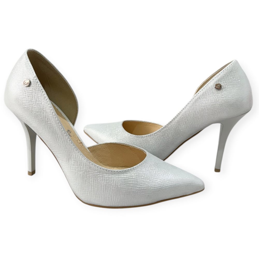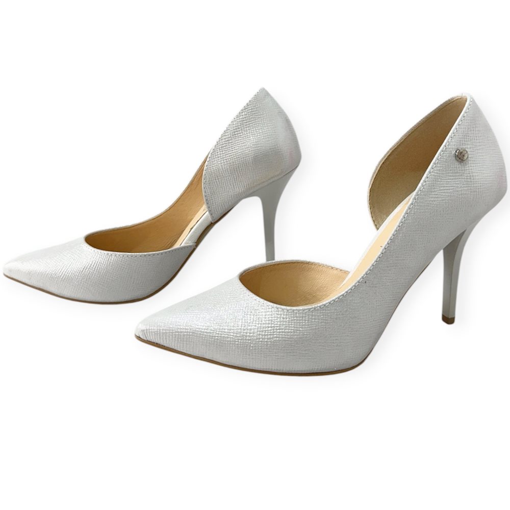 Divatos bőr magassarkú,kényelmes talpbetéttel. Anyaga: eredeti bőr Származási hely: Lengyelország Szín: ezüst Sarok: 8,5 cm Méret: 35- 23 cm 36- 23,5 cm 37- 24 cm 38- 24,5 cm 39- 25,5 cm 40- 26 cm