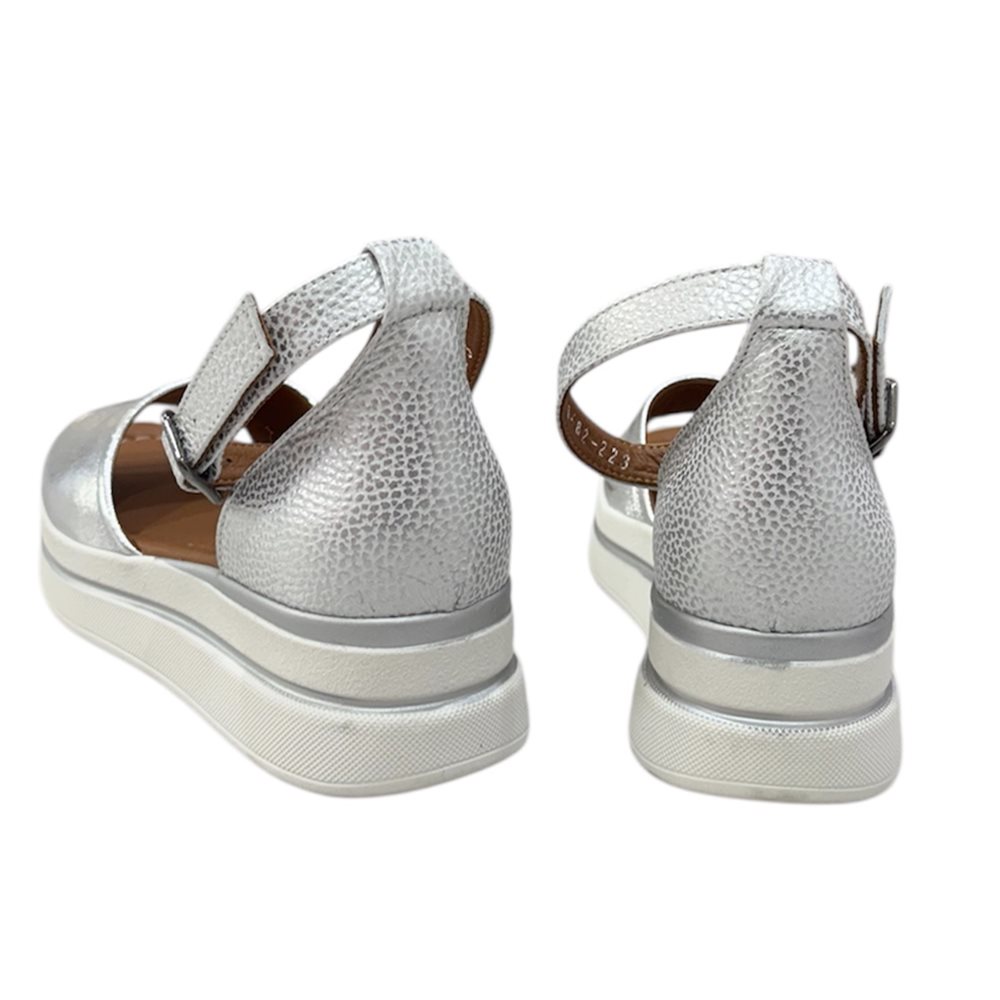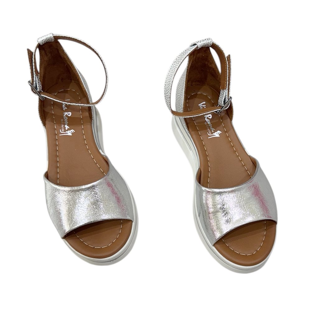Divatos,elegáns bőr szandál. Származási hely: EU Anyaga: bőr Szín: ezüst Talp vastagság: 2,5 cm Sarok magasság: 4 cm Méretek: 36- 23 cm 37- 24 cm 38- 24,5 cm 39- 25 cm 40- 26 cm