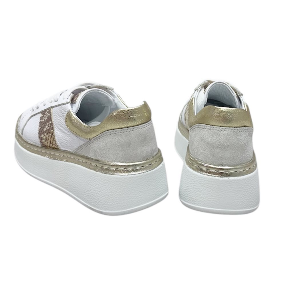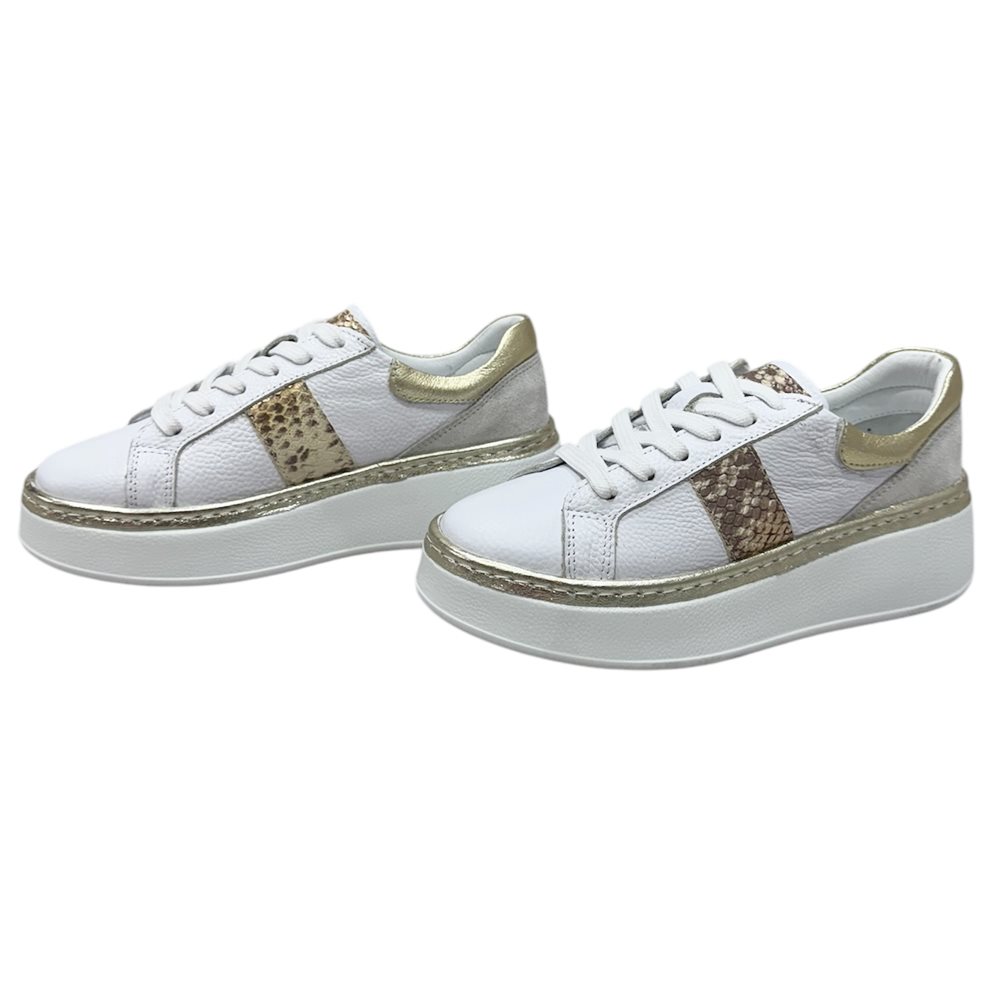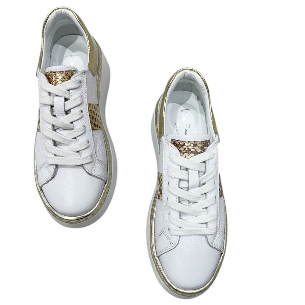 Divatos bőr sneaker sportcipő. Anyaga: eredeti bőr Származási hely: Lengyelország Szín: fehér-arany leopárd mintával. Sarok magasság: 3,5 cm Talp vastagság: 5 cm Méret: 36- 23 cm 37- 24 cm 38- 24,5 cm 39- 25 cm 40- 25,5 cm