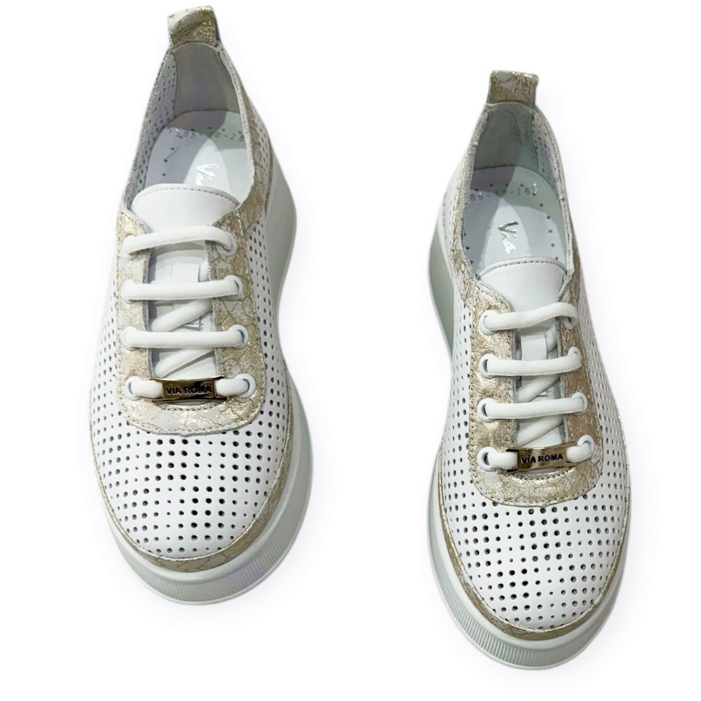 Via Roma Fehér-Arany Bőr Sneaker Sportcipő