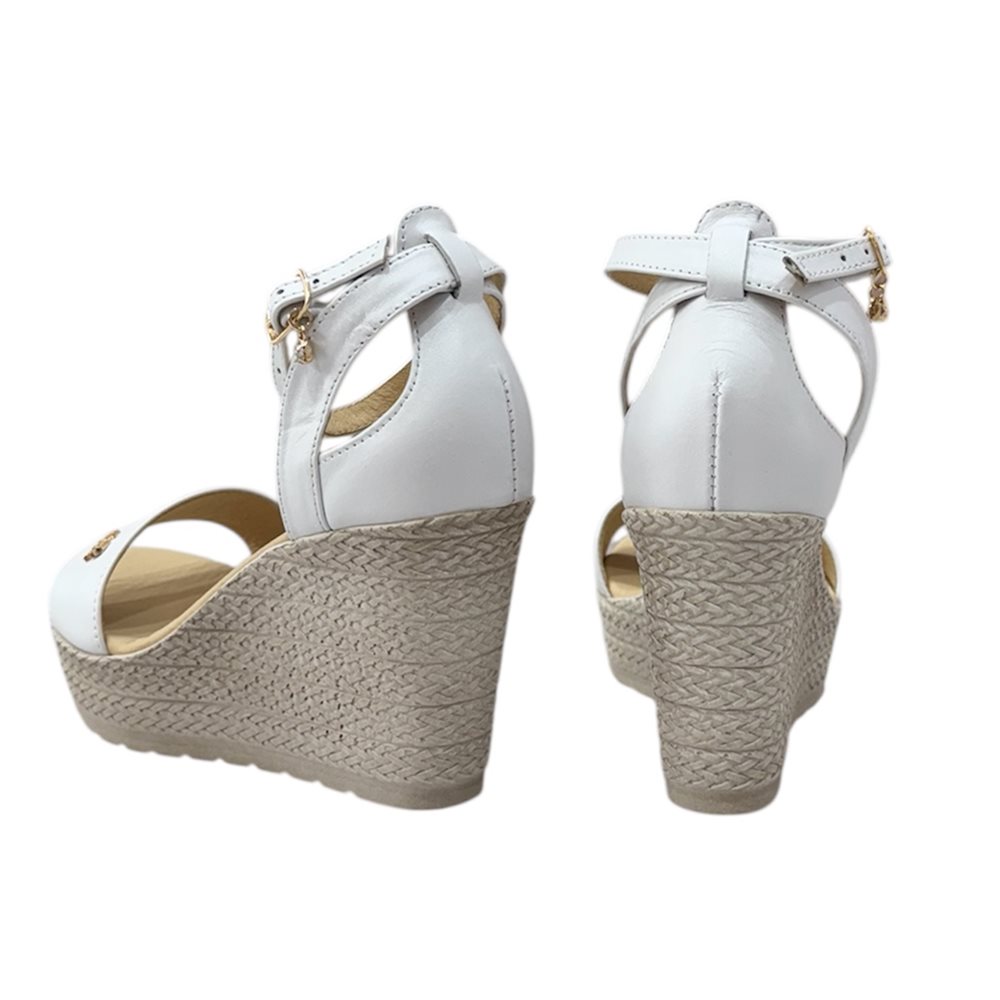 Divatos,telitalpú bőr szandál. Származási hely: EU Anyaga: bőr Szín: gyöngyház fehér Sarok rész: 9 cm Talp rész: 3,5 cm Méretek: 36- 22,7 cm 37- 23,5 cm 38- 24 cm 39- 25 cm 40- 25,5 cm