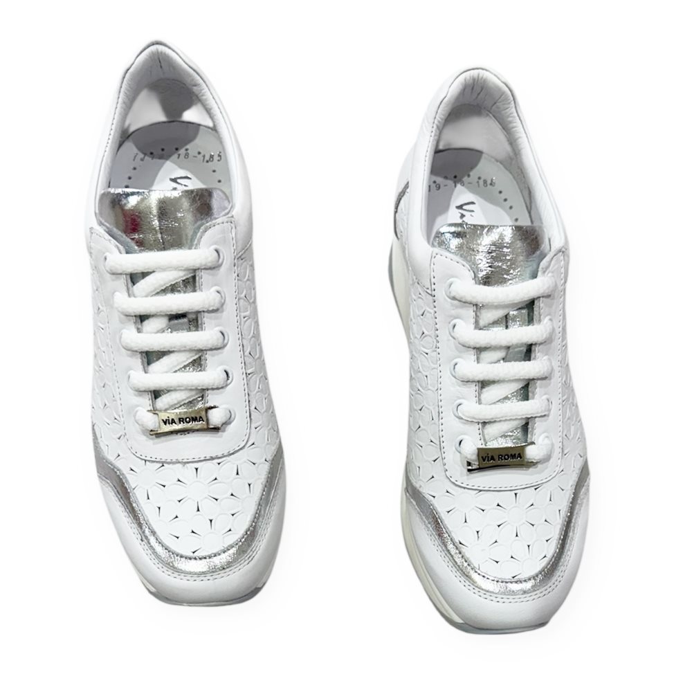Via Roma Fehér-Ezüst Bőr Sneaker Sportcipő
