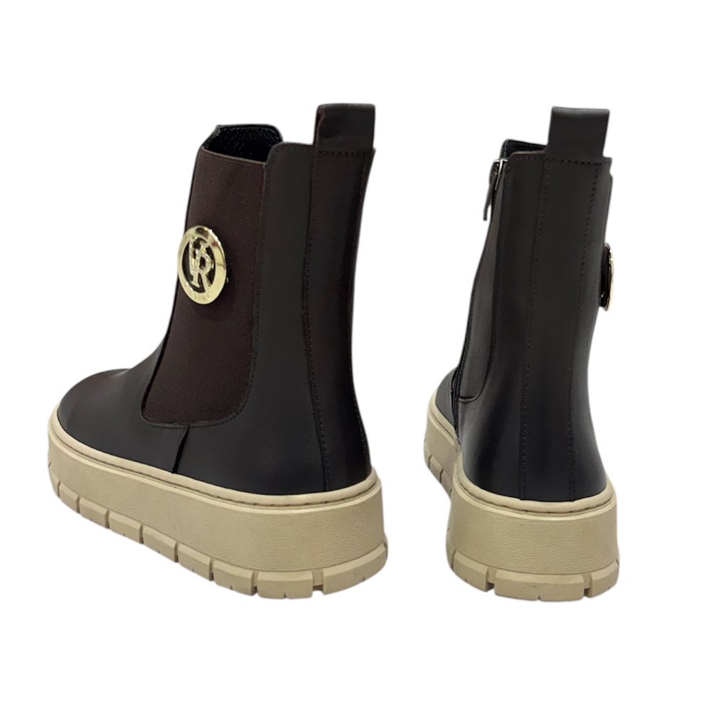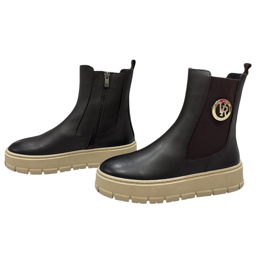 Via Roma fekete 3/4-es csokibarna bőr csizma