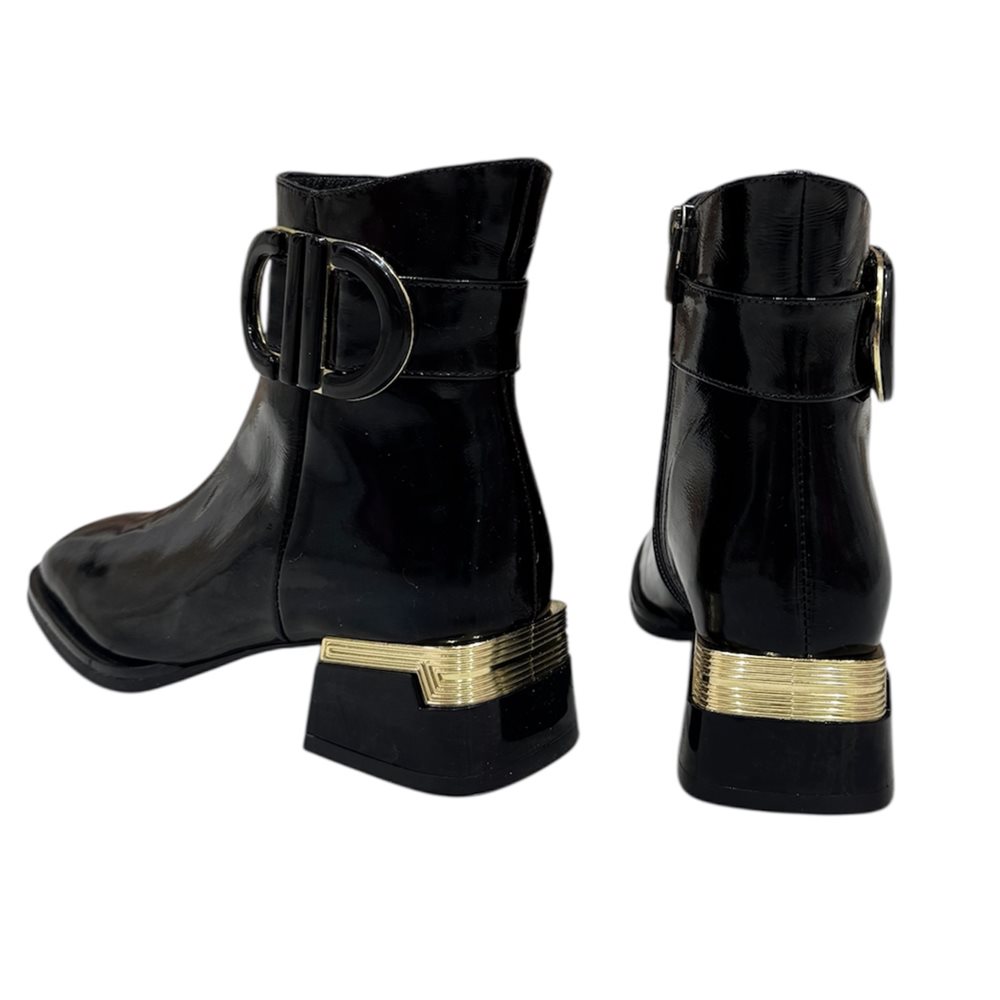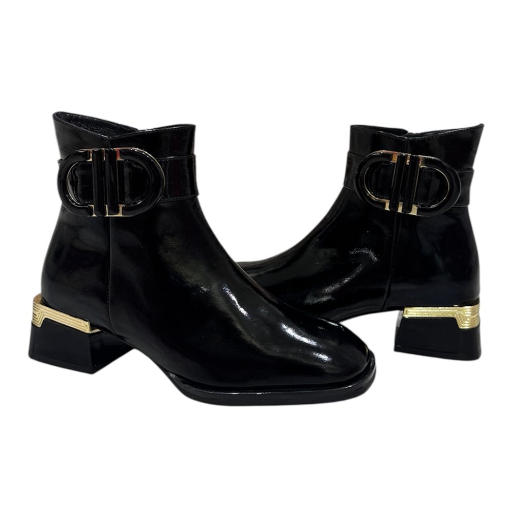Elegáns bőr bokacsizma. Anyaga: eredeti bőr Származási hely: Lengyelország Szín: fekete. Talp vastagság: 1 cm Sarok magasság: 4 cm Szárhossz saroktól mérve: 13 cm Méret: 36- 23 cm 37- 23,5 cm 38- 24 cm 39- 25 cm 40-25,5 cm