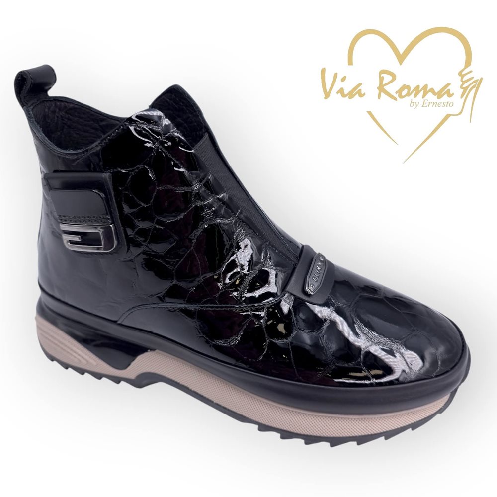 Via Roma fekete bőr bokacsizma