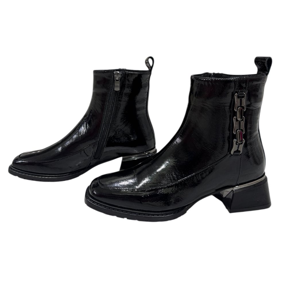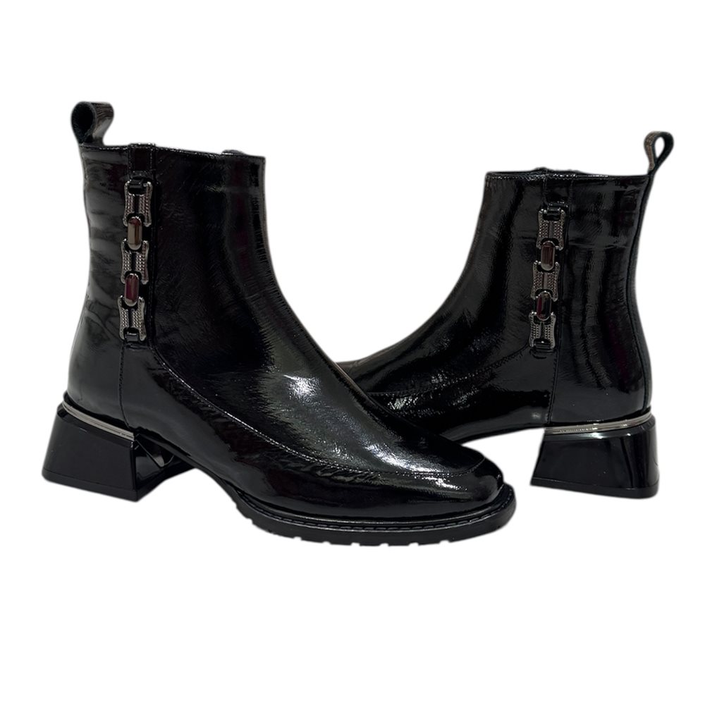 Elegáns bőr bokacsizma. Anyaga: eredeti bőr Származási hely: Lengyelország Szín: fekete. Talp vastagság: 1 cm Sarok magasság: 4 cm Szárhossz saroktól mérve: 13,5 cm Méret: 36- 23 cm 37- 23,5 cm 38- 24 cm 39- 25 cm 40-25,5 cm
