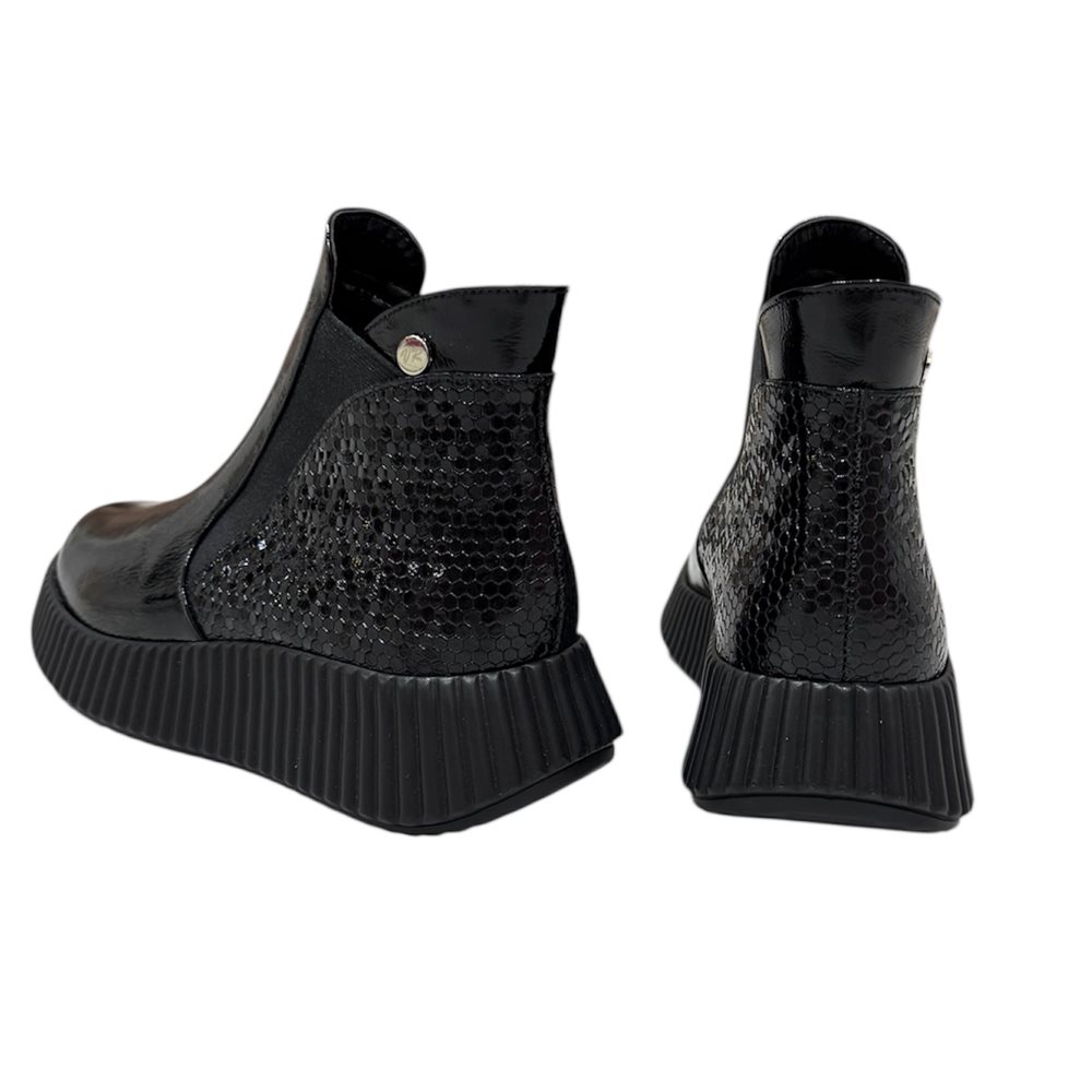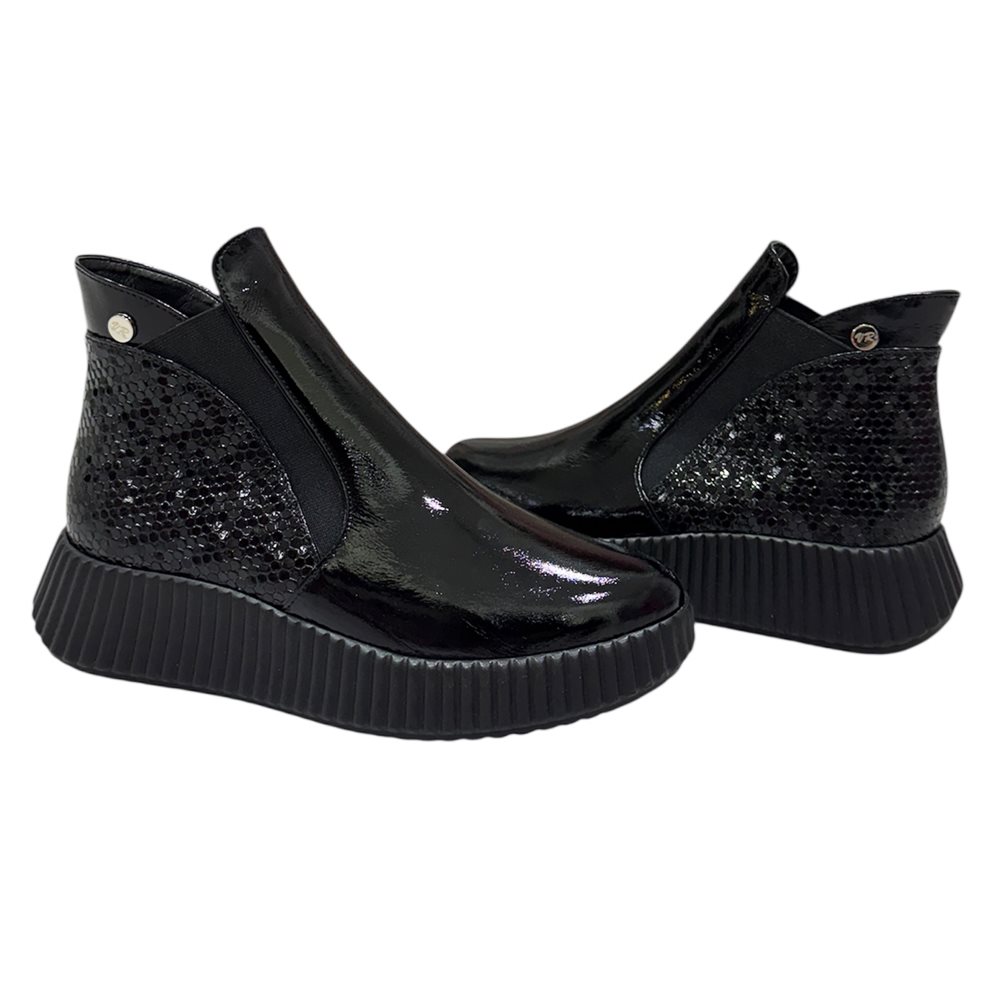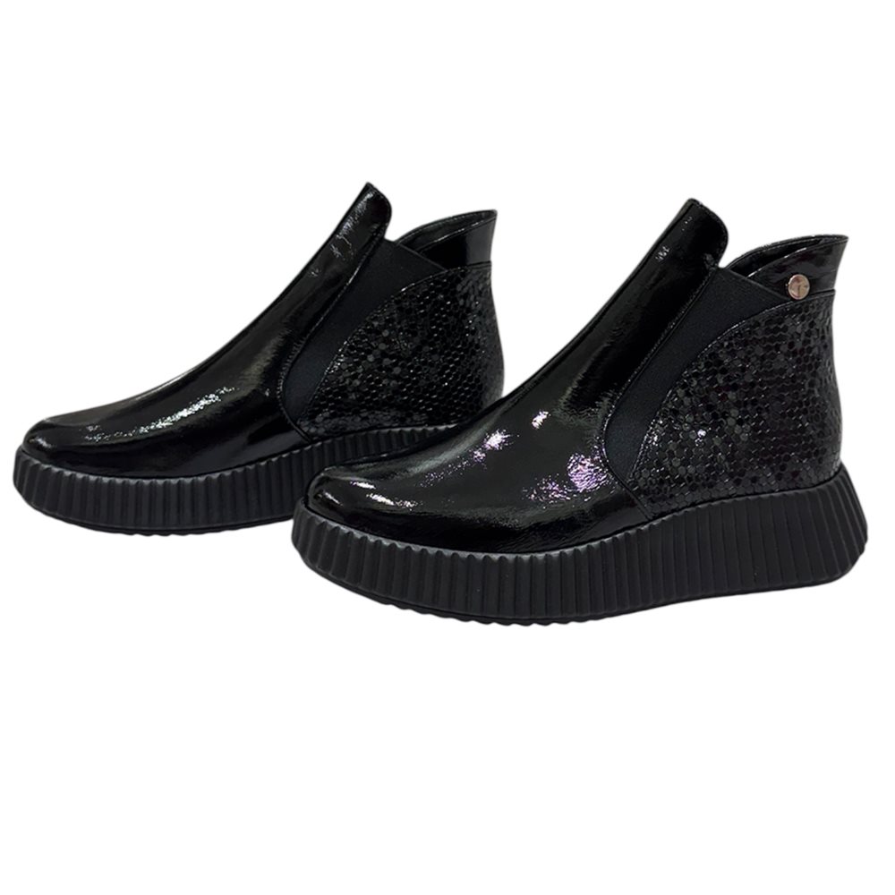 Divatos bőr boka magasított száru slip on,két oldalán gumibetéttel. Anyaga: eredeti bőr Származási hely: Lengyelország Szín: fekete. Bélés: plüss Talp vastagság: 2,5 cm Sarok magasság: 4 cm Szárhossz saroktól mérve: 11 cm Méret: 36- 23 cm 37- 23,5 cm 38- 24 cm 39- 25 cm 40-25,5 cm