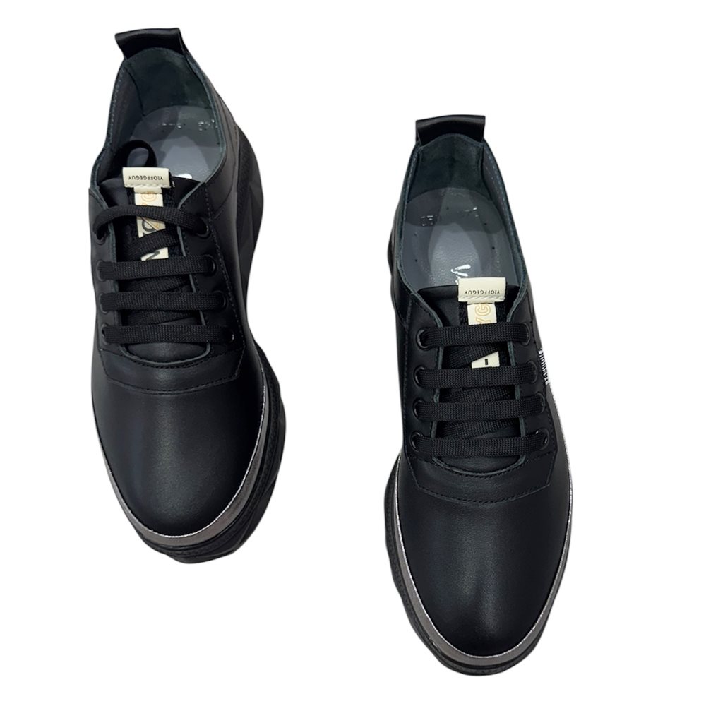 Divatos fűzős bőr sneaker/sportcipő. Anyaga: eredeti bőr Származási hely: Lengyelország Szín: fekete-grafit. Talp vastagság: 3 cm Sarok magasság: 5 cm Méret: 36- 23 cm 37- 23,5 cm 38- 24,5 cm 39- 25 cm 40-25,5 cm