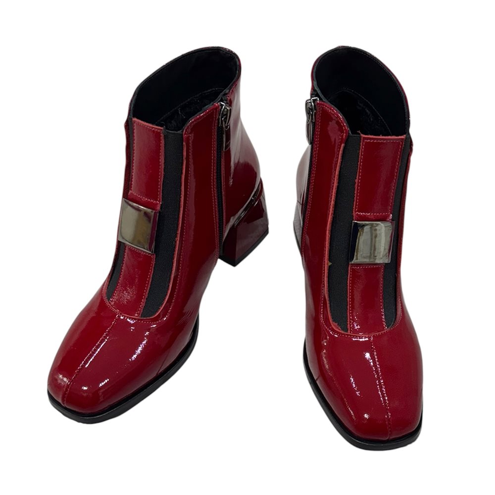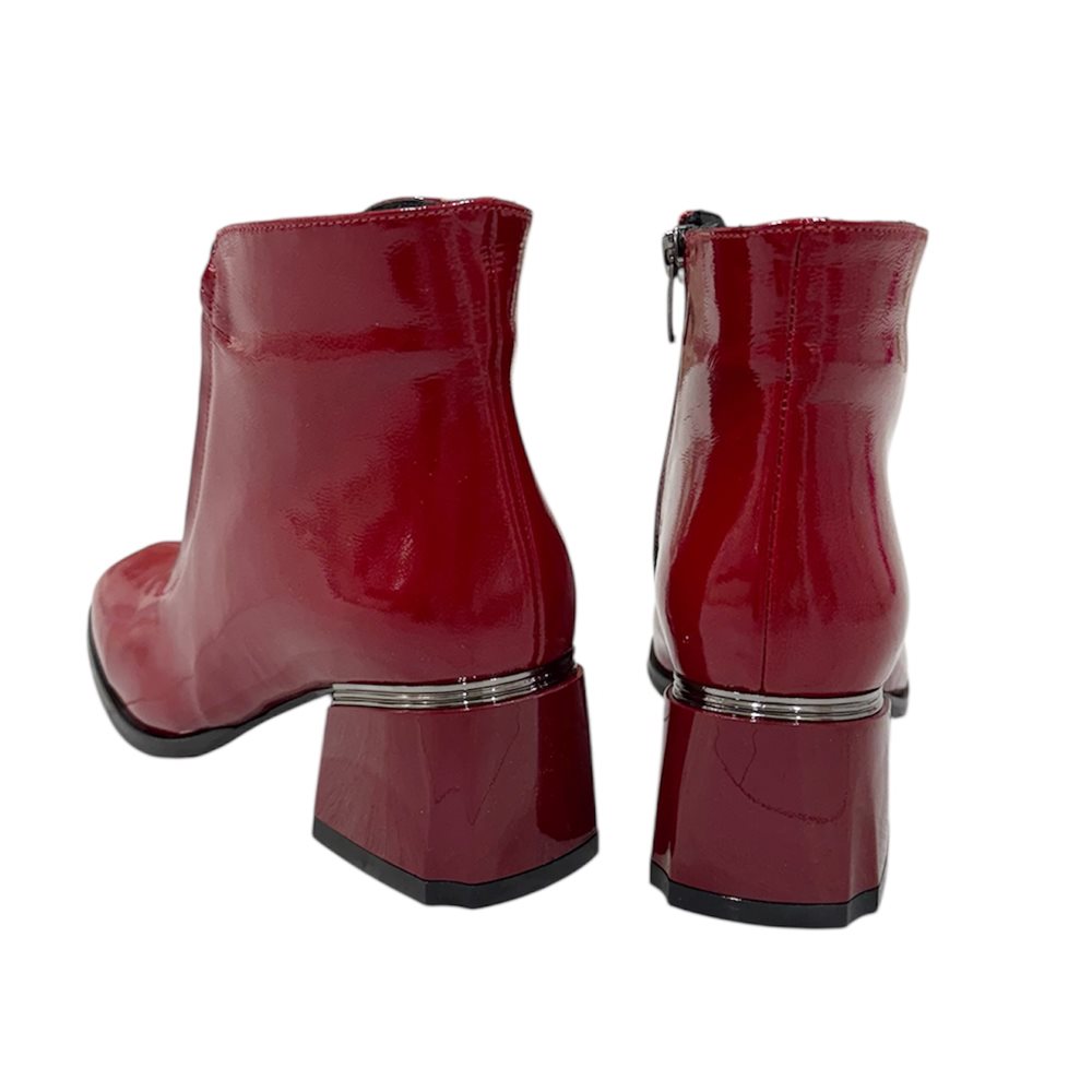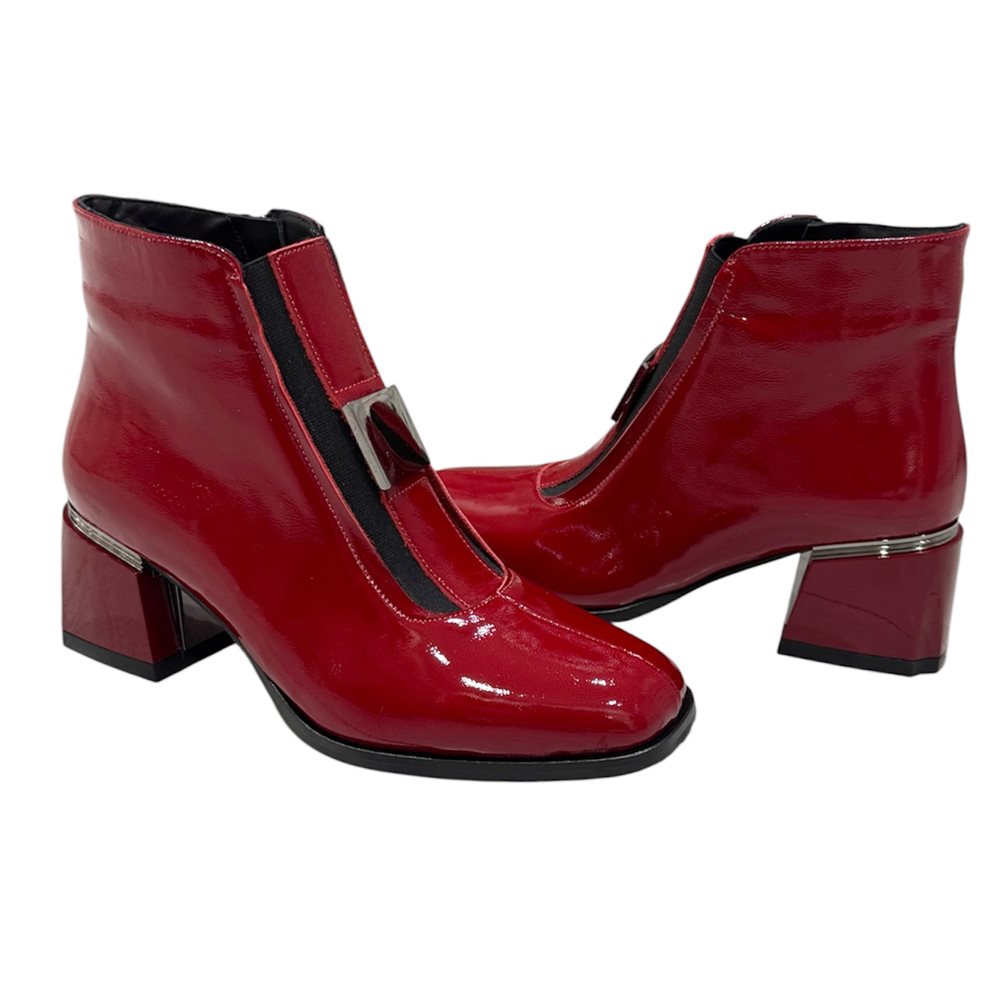 Divatos bőr kocka sarkú bokacsizma. Anyaga: eredeti bőr Származási hely: Lengyelország Szín: fekete,meggypiros. Talp vastagság: 0,5 cm Sarok magasság: 5,5 cm Szárhossz saroktól mérve: 11,5 cm Méret: 36- 23 cm 37- 23,5 cm 38- 24 cm 39- 25 cm 40-25,5 cm